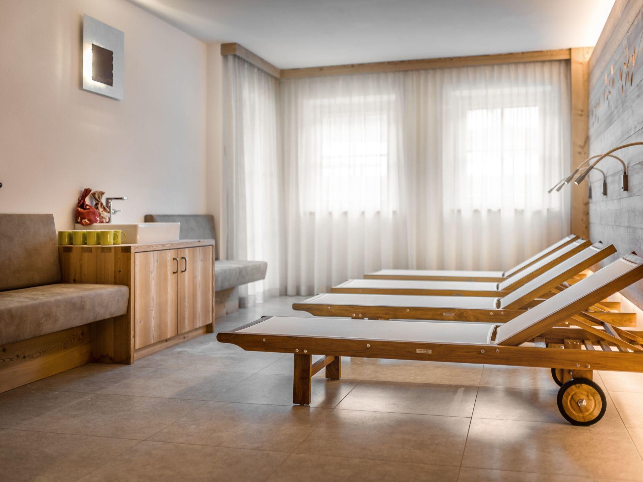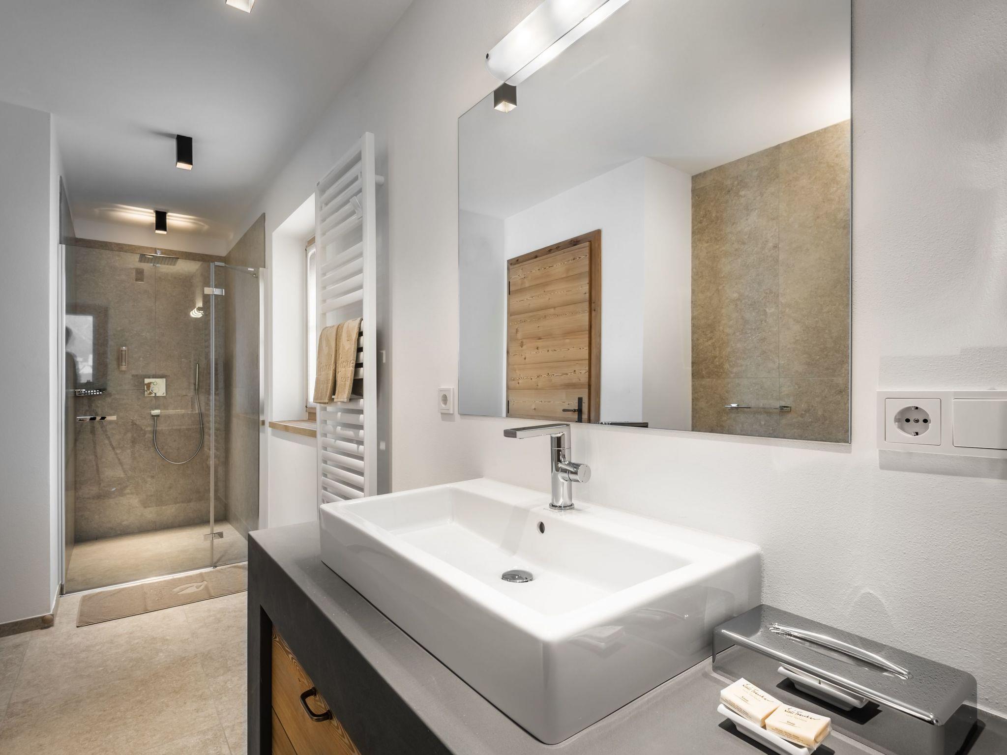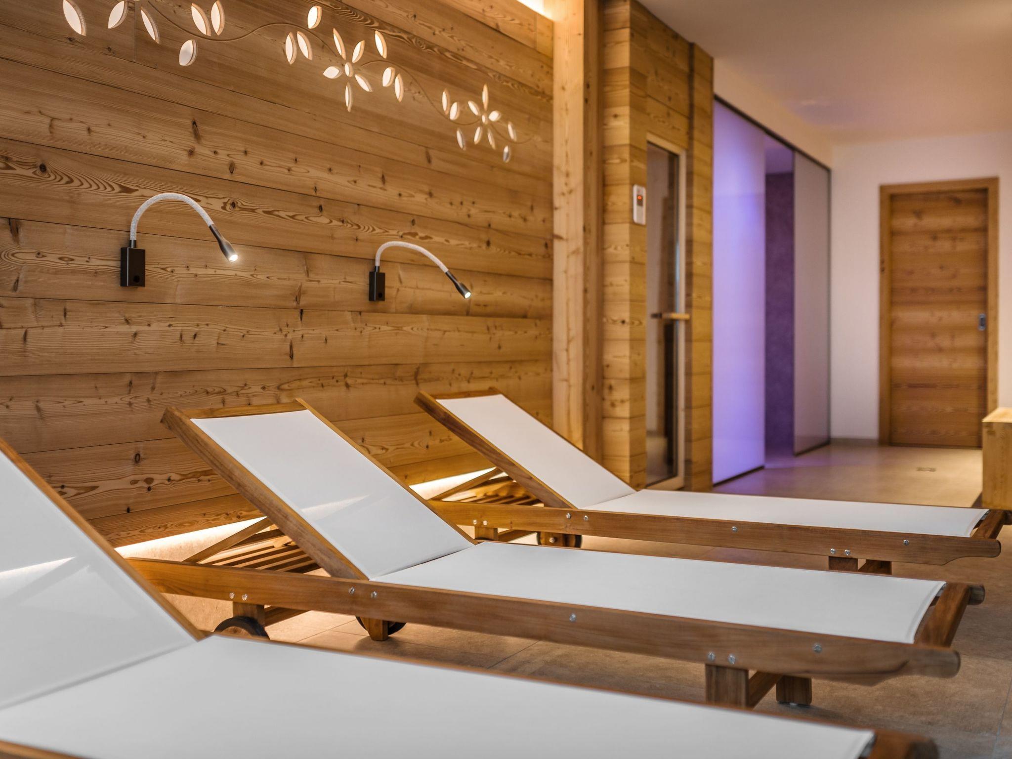 Eine Wohltat für Körper und Seele: relaxen in dem privaten Spa mit Finnischer Sauna, Infrarot Sauna, Regen- und Dampfdusche und Frischluft-Ruhebereich mit Jacuzzi. In den schneebedeckten Wintermonaten heizt die Fußbodenheizung das Chalet auf eine angenehme Raumtemperatur.
