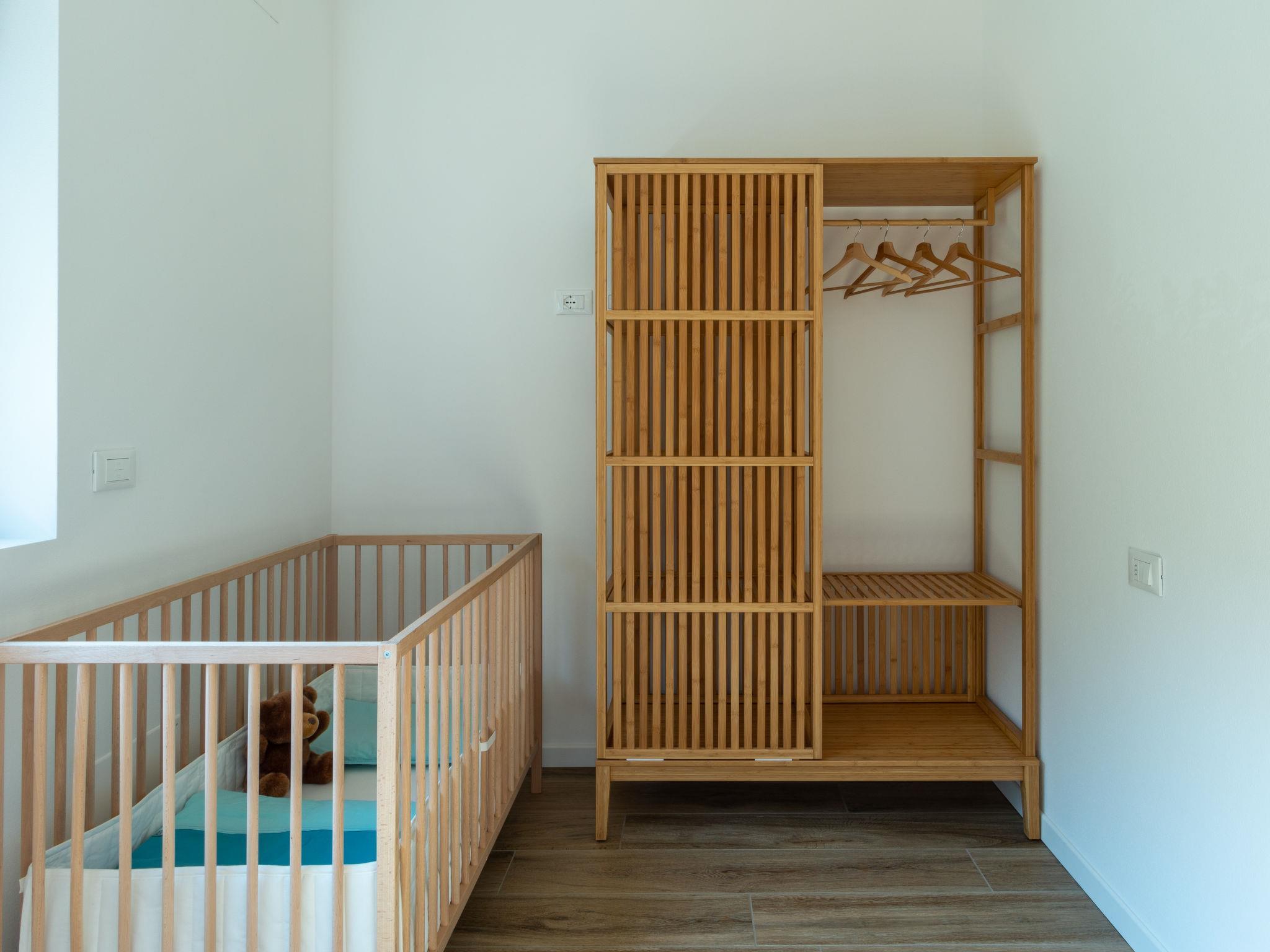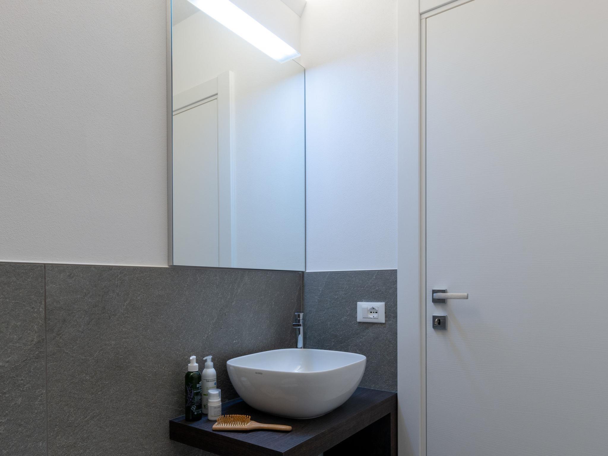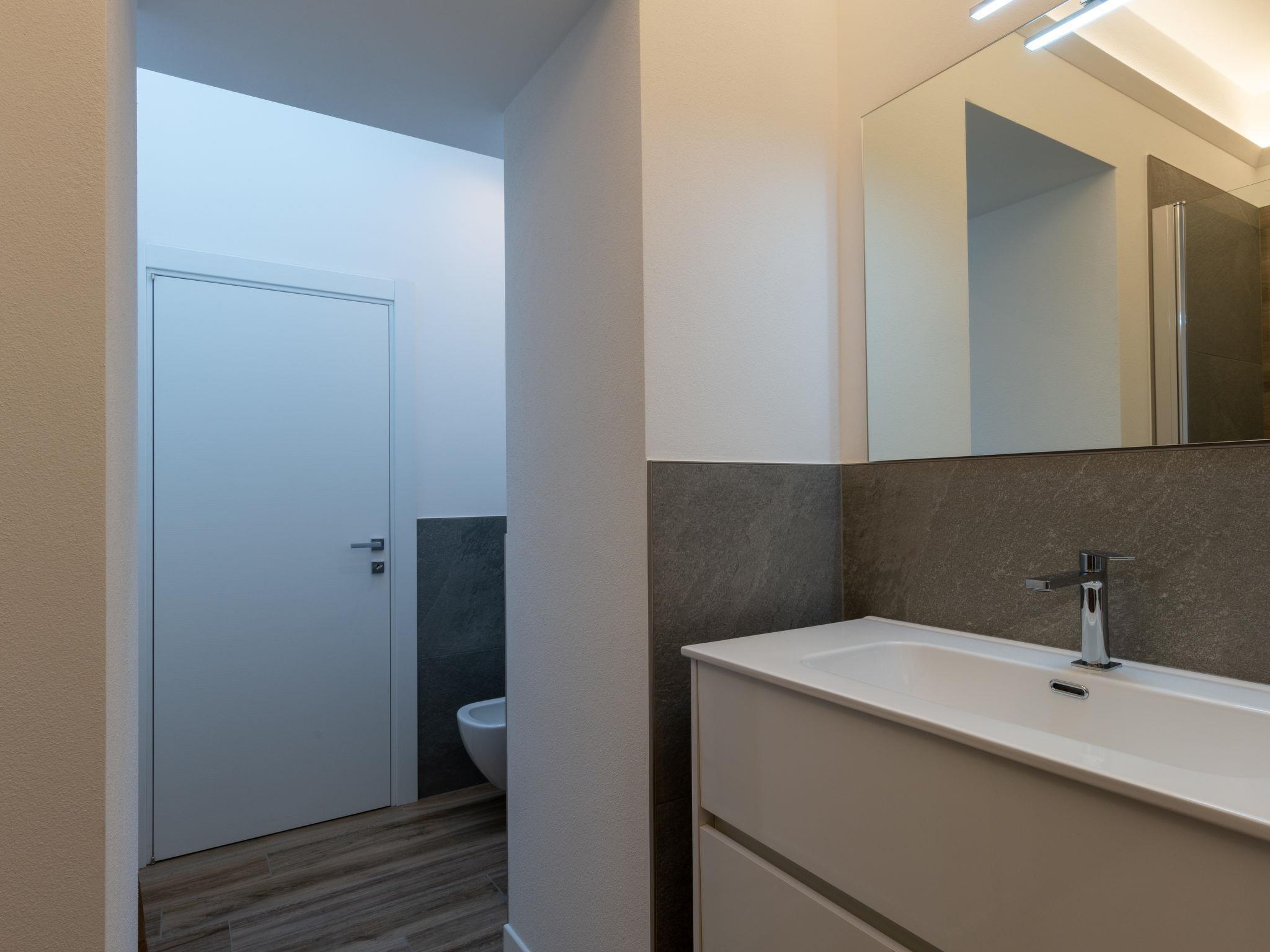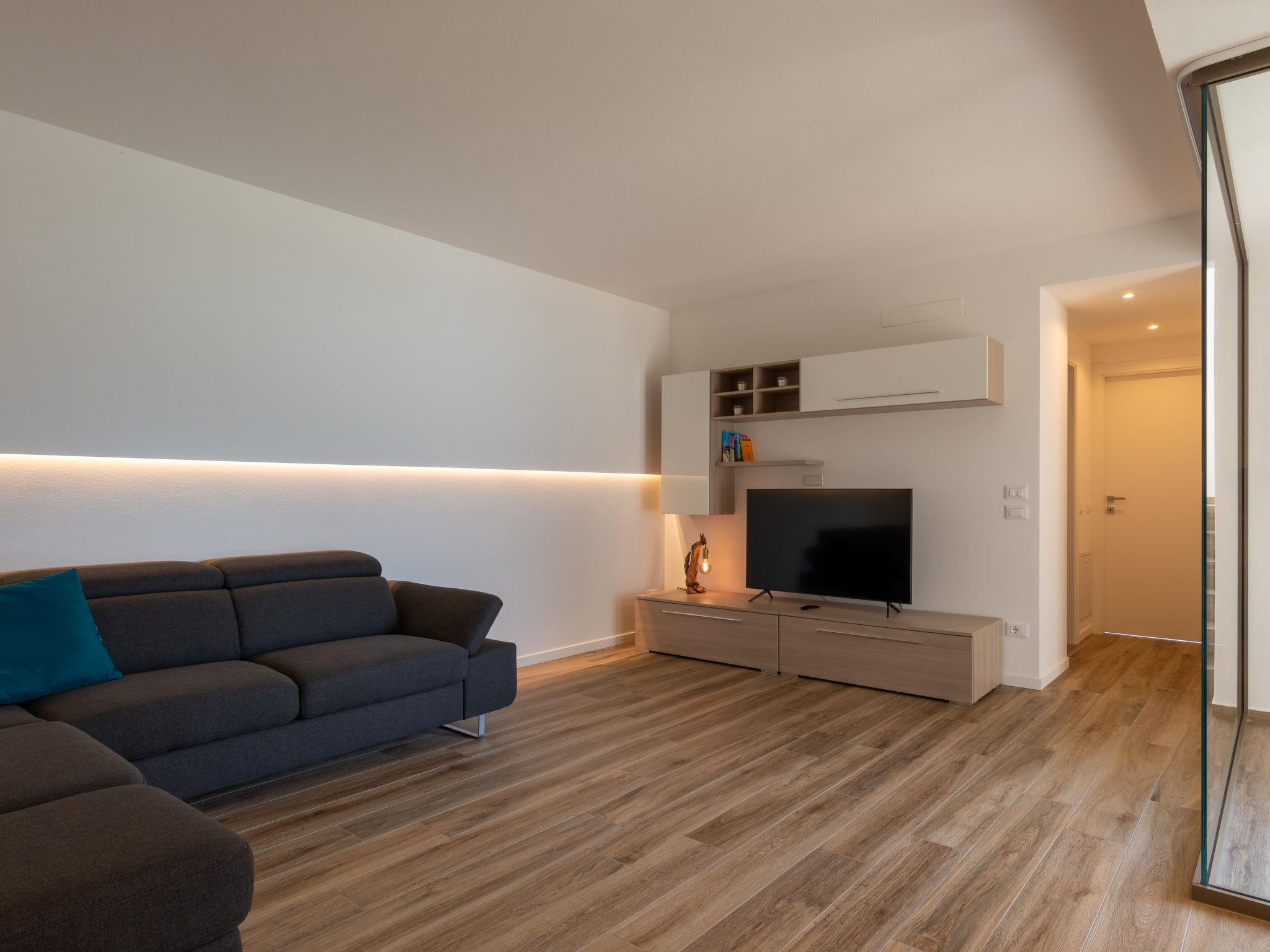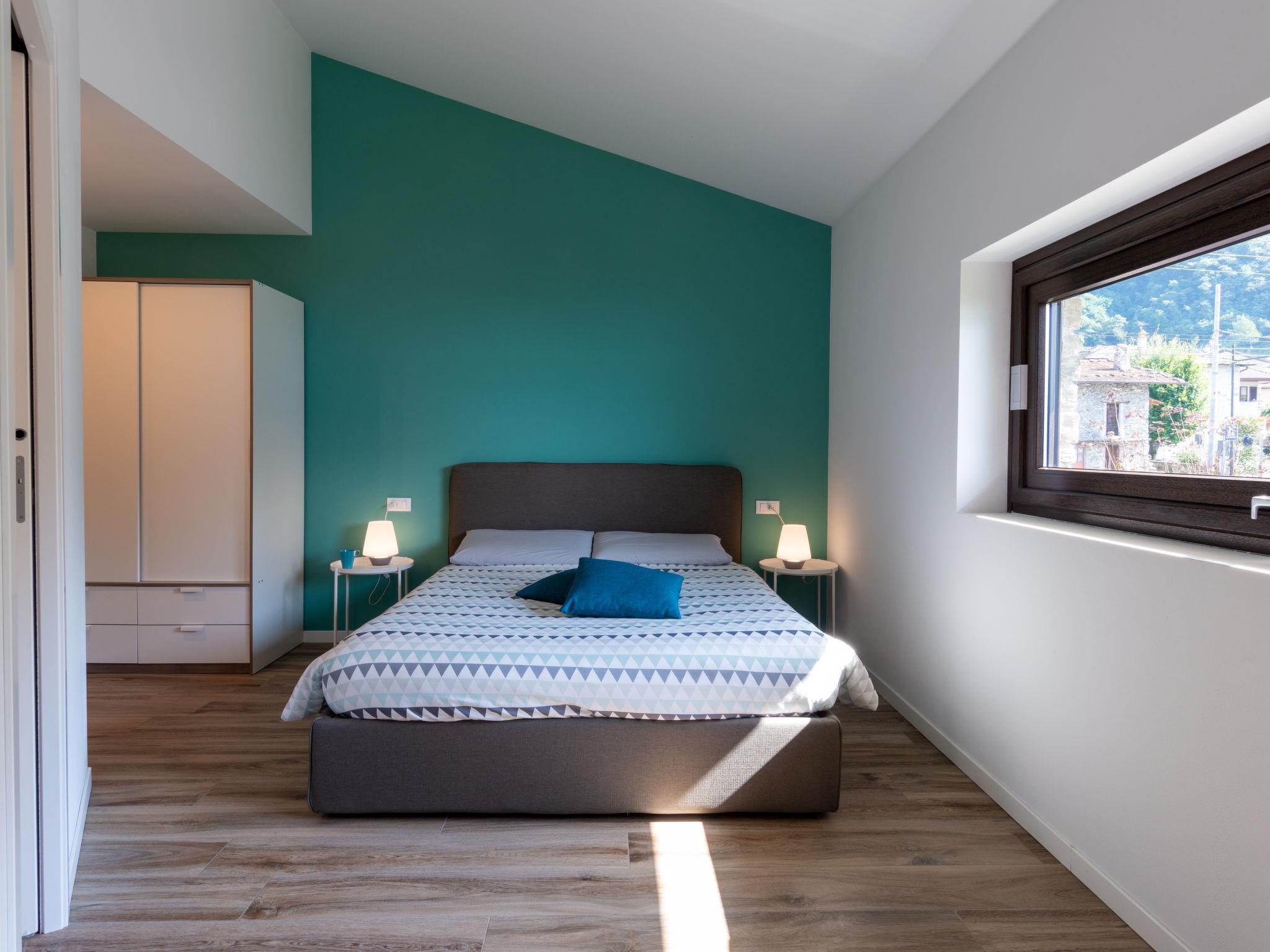 6-Zimmer-Doppelhaushälfte 190 m2 auf 3 Stockwerken. Hell, modern und geschmackvoll eingerichtet: offenes Wohn-/Schlafzimmer mit Schiebetür, Panoramafenster mit 1 Doppeldiwanbett und Sat-TV. 1 Doppelzimmer mit Bidet, sep. WC und Dusche. 1 Doppelzimmer. Grosse, offene Küche (Backofen, Geschirrspüler, 4 Induktionskochplatten, Toaster, Wasserkocher, Mikrowelle, Tiefkühler, elektrische Kaffeemaschine) mit Esstisch. Ausgang zum Garten. Dusche/Bidet/WC. Fussbodenheizung. Obergeschoss: Wohn-/Esszimmer mit Esstisch und Sat-TV. Ausgang zur Terrasse. 1 Doppelzimmer mit Dusche/WC. Offene Küche (Backofen, Geschirrspüler, 4 Induktionskochplatten, Toaster, Wasserkocher, Mikrowelle, elektrische Kaffeemaschine). Dusche/WC. Dachgeschoss: (geländerlose Treppe) 1 abgeschrägtes, offenes Zimmer mit 2 Betten, 1 Doppelbett und 1 Ausziehbett. Fussbodenheizung. Grosse Terrasse, grosser Garten, Rasen. Terrassenmöbel, Gartengrill, Liegestühle (8). Sehr schöne Panoramasicht auf den See und die Berge. Zur Verfügung: Waschmaschine, Kinderhochstuhl, Babybett bis 2 Jahre. Internet (WLAN, gratis). Parkplatz (4 Autos). Bitte beachten: Nichtraucher-Unterkunft. IT014075C23SN69WRX