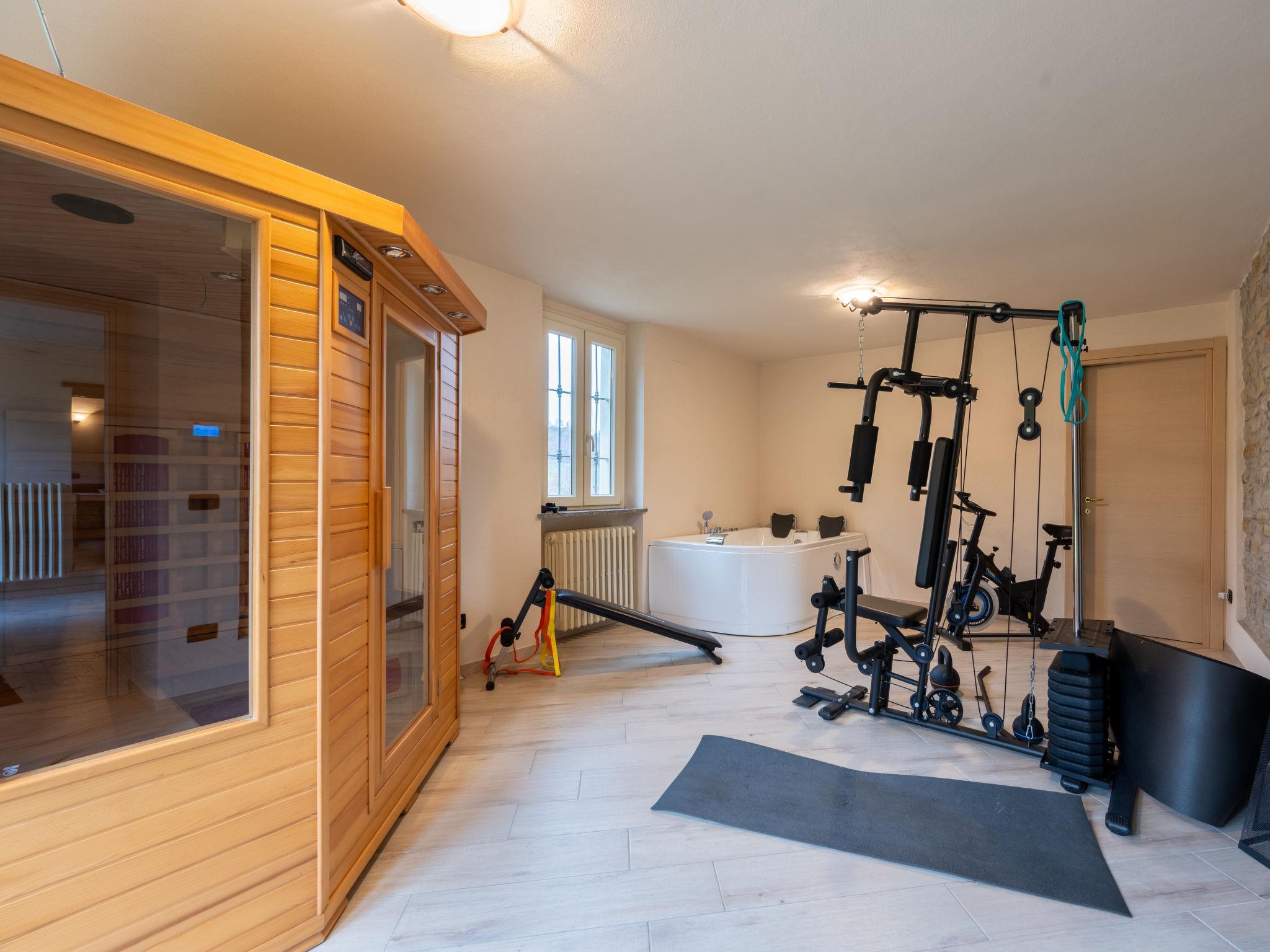 17-Zimmer-Landhaus auf 3 Stockwerken. Geschmackvoll eingerichtet: Wohn-/Esszimmer mit offenem Kamin, Esstisch und TV. Ausgang zur Terrasse. Salon mit offenem Kamin, sep. WC und TV. Ausgang zum Garten. Wohn-/Schlafzimmer mit 1 Doppeldiwanbett, Esstisch, Küchenblock und TV. Ausgang zum Garten. 1 Doppelzimmer mit Dusche/Bidet/WC. Küche (Backofen, Geschirrspüler, 5 Flammen, Pizzaofen). Dusche/Bidet/WC. Obergeschoss: Wohn-/Schlafzimmer mit 1 Doppeldiwanbett, Esstisch, Küchenblock und TV. Ausgang zum Balkon. Wohn-/Schlafzimmer mit 1 Doppeldiwanbett, Esstisch, Küchenblock und TV. Ausgang zum Balkon. Wohn-/Schlafzimmer mit 1 Doppeldiwanbett, Esstisch, Küchenblock und TV. Wohn-/Schlafzimmer mit 1 Doppeldiwanbett, Esstisch, Küchenblock und TV. 4 Doppelzimmer. Abgeschrägte, offene Galerie mit 1 Doppelbett. Abgeschrägte, offene Galerie mit 1 Doppelbett. 4 Duschen/Bidet/WC. Dachgeschoss: (Wendeltreppe) Wohn-/Esszimmer mit 2 Doppeldiwanbetten, offenem Kamin, Esstisch und TV. Ausgang zur Terrasse. 2 abgeschrägte Doppelzimmer, Deckenhöhe 160 - 270 cm. Kochnische (4 Kochplatten, Backofen, Geschirrspüler, Mikrowelle, elektrische Kaffeemaschine). Dusche/Bidet/WC. G-Heizung. Heizung nur verfügbar von 15.10. bis 15.04. Balkon, 2 Terrassen, teilweise überdacht. Zur Verfügung: Waschmaschine, Babybett bis 2 Jahre, Haartrockner. Internet (WLAN, gratis). Bitte beachten: Maximal 1 Haustier/Hund erlaubt. Rauchmelder, Feuerlöscher. IT005060B54CFBNQE4