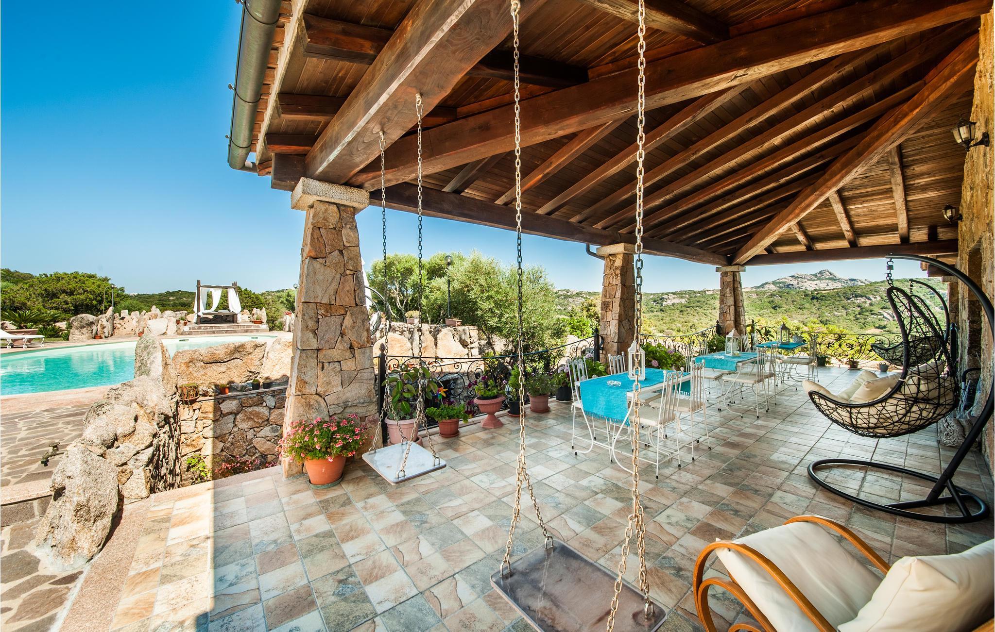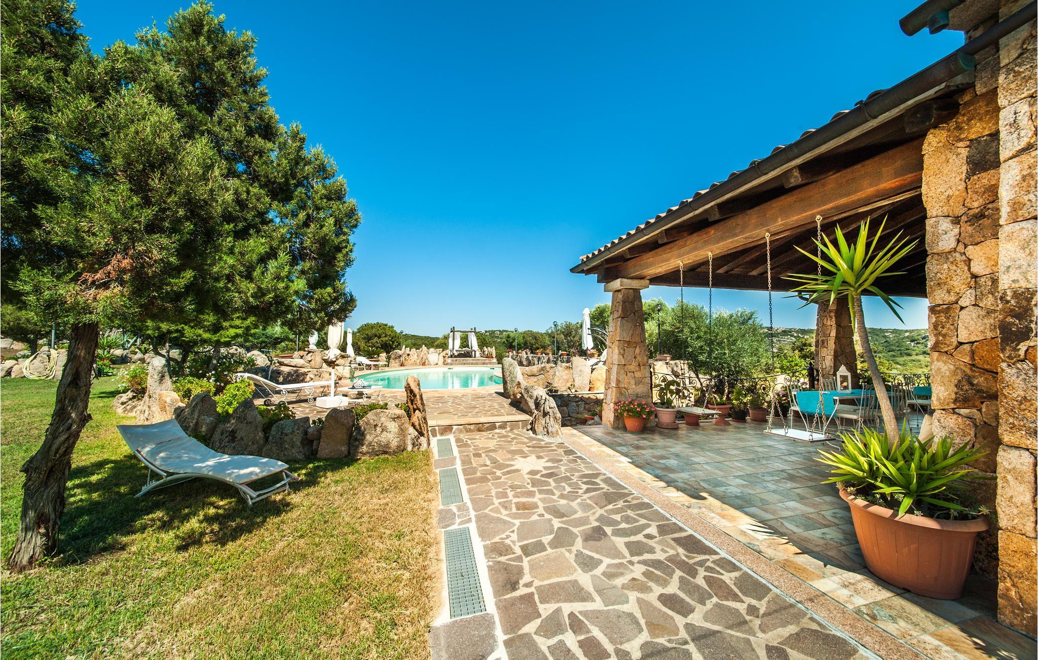 Dieses große Ferienhaus befindet sich ganz in der Nähe der beliebten Ziele in Sardinien "Porto Cervo" "Porto Rotondo" und "La Maddalena" auf einem wunderschönen Naturgrundstück. Das Haus erstreckt sich über zwei Etagen und bietet Platz in 6 Schlafzimmern, 7 Badezimmern und einer Essküche. Mit einem Kamin, Fitnessgeräten, 9 Fernsehern und Nintendo Wii bietet das Haus viele Extras, die den Urlaub angenehm gestalten.