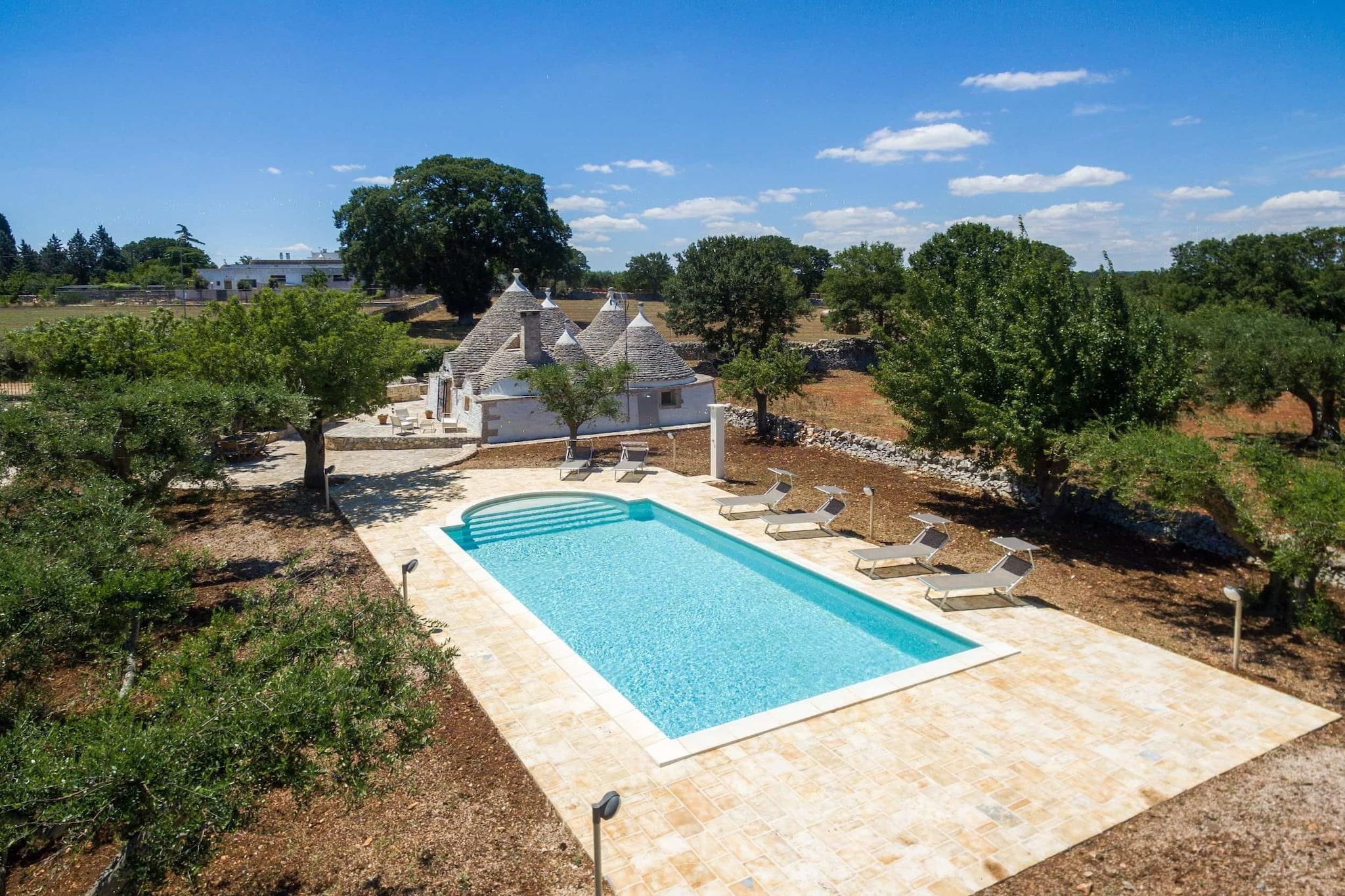Hier ist der Name Programm: prächtiges Trullo-Ferienhaus in der Nähe von Locorotondo. Eingebettet in die wunderschöne Landschaft wurde der Komplex sorgfältig renoviert, wobei alte Materialien verwendet wurden und die sechs Kegel beibehalten wurden. Ein Pool vervollständigt die Außergewöhnlichkeit des Anwesens. Das Ferienhaus bietet Platz für sechs Personen in drei Schlafzimmern mit zwei Bädern, von denen eines ensuite. Großes Wohnzimmer mit offener Küche und charakteristischen Trullo mit originalen alten Kamin. Der unterirdische Pool von 5 x 10 m mit römischer Treppe befindet sich in der Nähe des alten Hofes im Schatten der Mandel- und Olivenbäume. Der Trullo befindet sich in einer strategischen Lage nicht weit von Alberobello und Locorotondo und den wichtigsten touristischen Zentren des Itria-Tals Die Adriaküste zwischen Polignano und der Marina von Ostuni ist leicht zu erreichen.