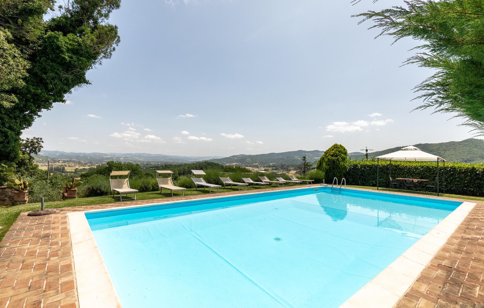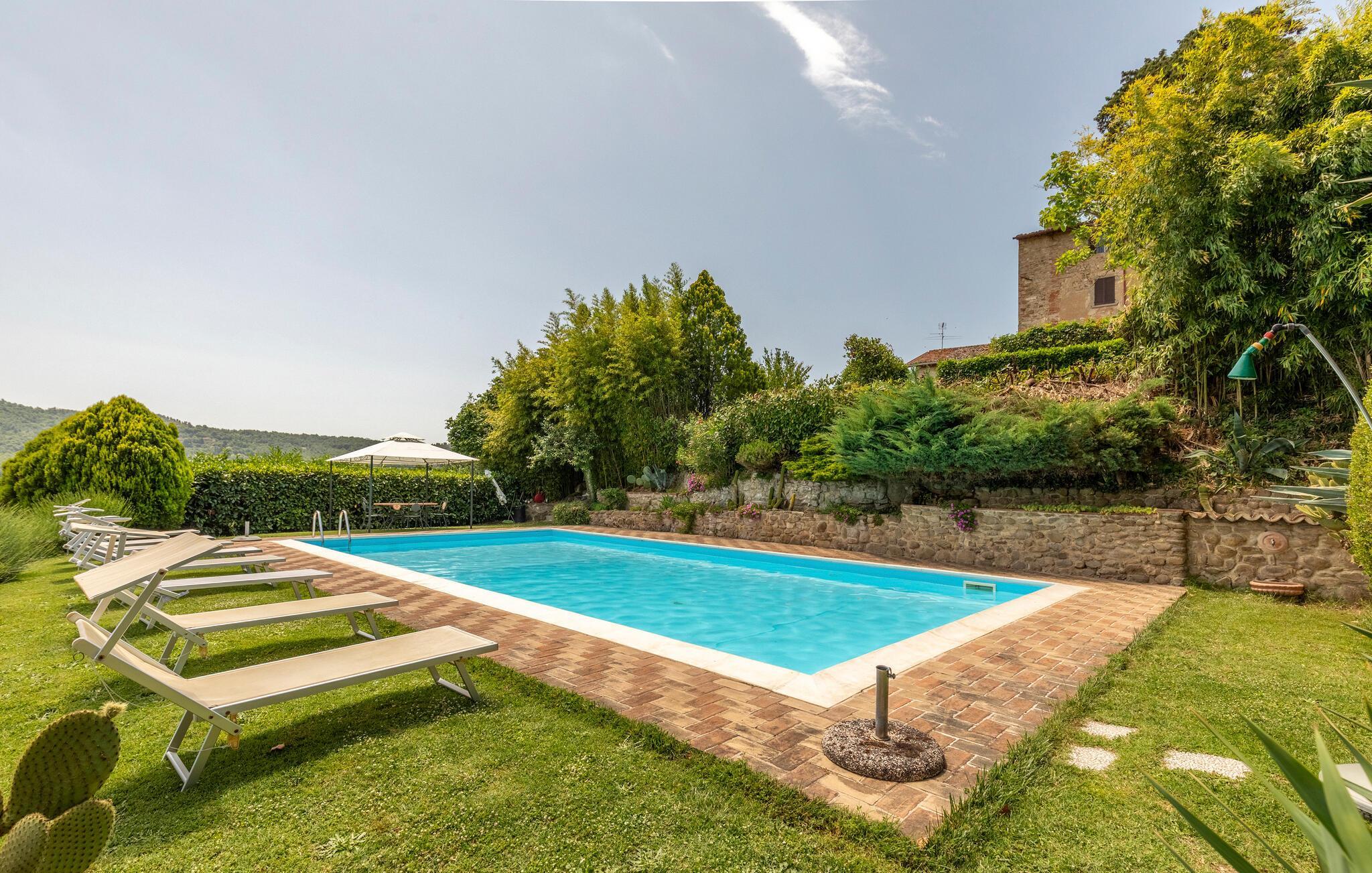 Wollten Sie immer schon einmal in einem historischen Palazzo wohnen? In schöner Lage, mit eigenem Pool? Hier sind Sie richtig: Am Rande einer mittelalterlichen Siedlung, in ruhiger Hügellage zwischen Città di Castello (20 km) und Cortona (35 km) liegt dieser ganz besondere Teil eines Zweifamilienhauses: Stilvoll restauriert, mit originaler antiker Einrichtung, steht Ihnen hier ein echtes Schmuckstück zur Verfügung. Für Liebhaber! Im Erdgeschoss öffnet sich das Portal zum hohen Eingangsbereich mit Treppe; Bad, Speiseraum und riesige Wohnküche im Gewölbe schließen sich an. Im 1. Stock sind drei Schlafzimmer, zwei Wohnzimmer, ein Bad; ein zweites Bad im 2. Stock. Vorm Haus können Sie unter der Pergola dinieren. Etwas unterhalb steht Ihnen der private Poolbereich mit Liegestühlen und überdachter Terrasse zur Verfügung, sowie ein parkähnliches Gartengrundstück mit Olivenbäumen, Feigen, Kakteen, Oleander – ein kleines Paradies!