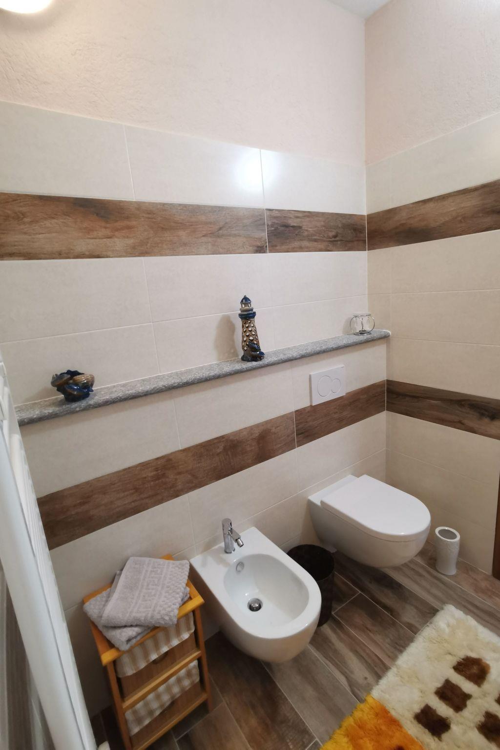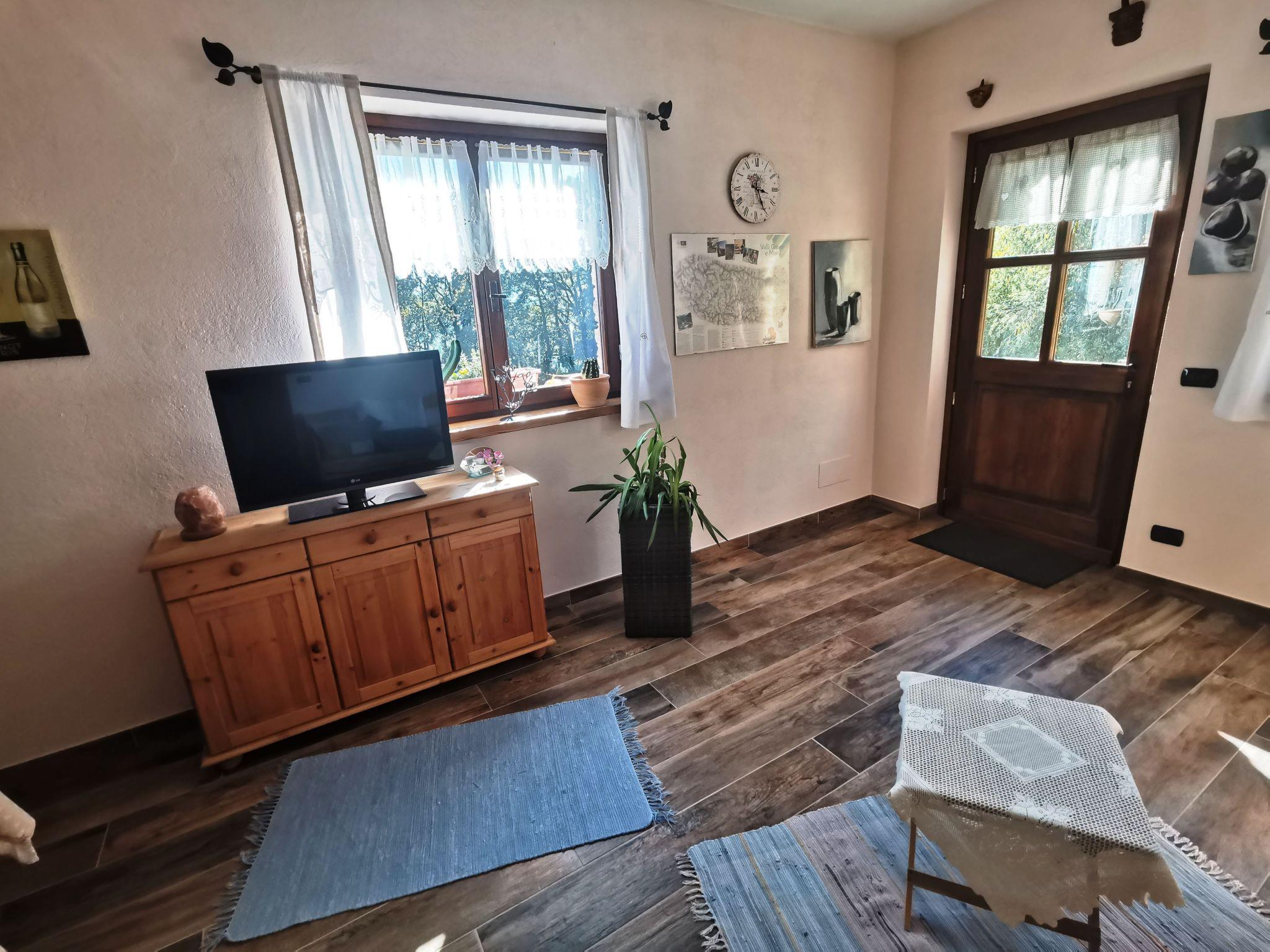 Zur Ausstattung gehört ein großer Wohnraum mit integrierter komplett eingerichteter Küche (Dunstabzug, Induktionskochfeld, Backofen, Kühlschrank mit Gefrierfach, Espressomaschine etc.) Im Wohnraum stehen ein Fernseher/Radio mit deutschen und italienischen Sendern sowie ein Schlafsofa für zwei Personen für unsere Gäste bereit. Durch einen Flur mit Garderobe gelangt man ins Badezimmer mit WC, Bidet, Waschbecken und einer großen ebenerdig gemauerten Dusche. Nebenan befindet sich das Schlafzimmer mit Kleiderschrank einem Doppelbett für zwei Personen, ein Kinderbett kann bei Bedarf gerne dazugestellt werden. Unser Haus wird durch eine umweltschonende Pellet/Solarheizung erwärmt. In der gesamten Wohnung befindet sich eine Fußbodenheizung, ebenso sind auch deutsche Elektrosteckdosen vorhanden.