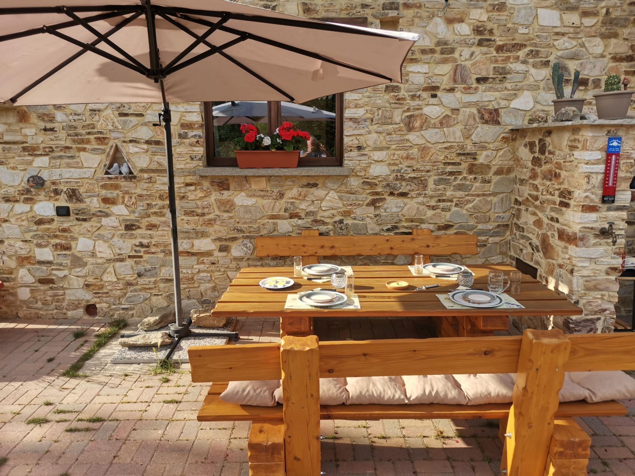 Um das Haus ist eine große Terrasse mit Grill und Pizzahaus, sowie ein ca. 5.000 qm großes naturbelassenes Grundstück mit einem alten Baumbestand der im Sommer Schatten spendet. Das gesamte Grundstück kann von unseren Feriengästen zum ausspannen benutzt werden.