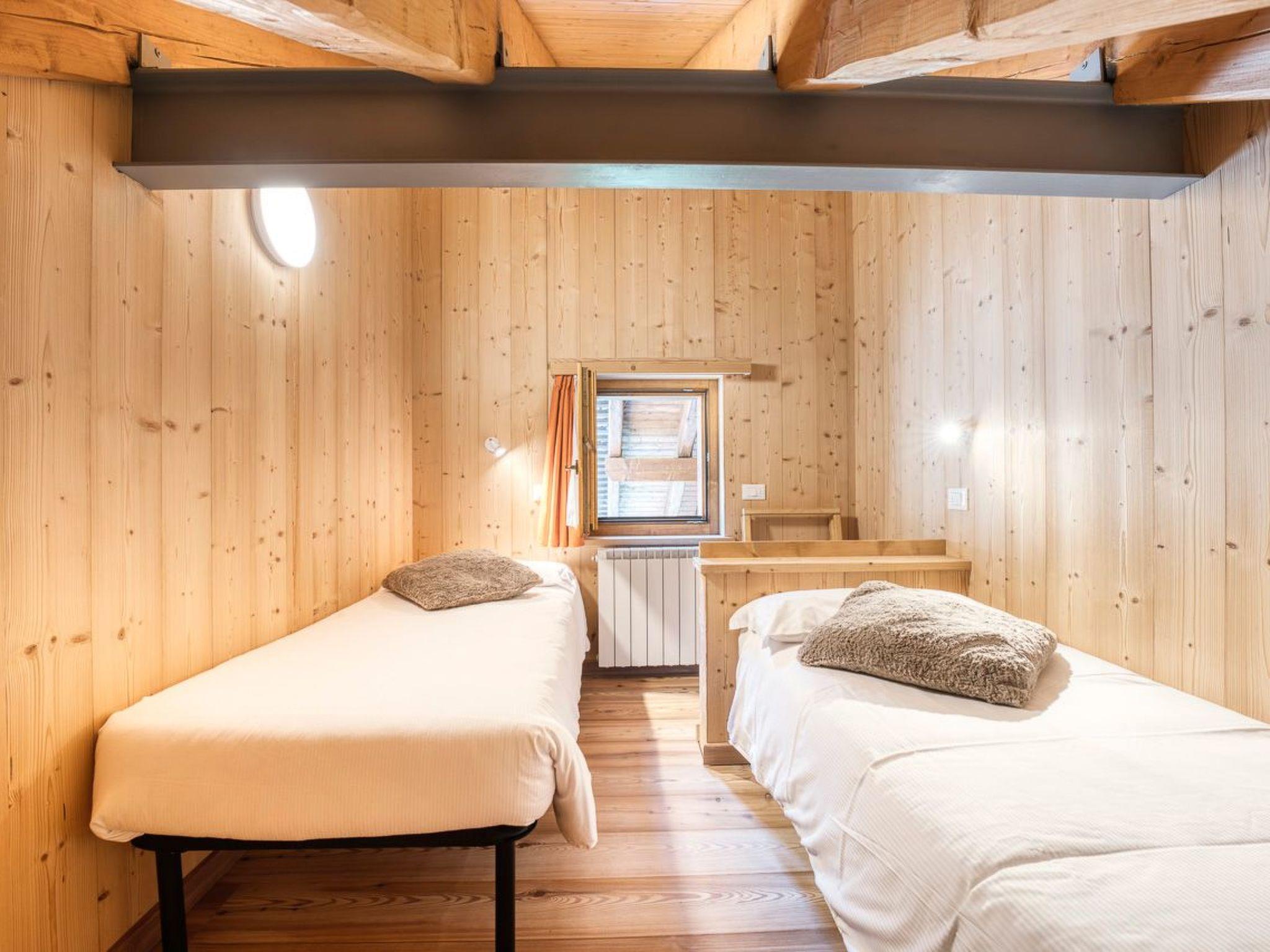 - Ein Schlafzimmer mit Doppelbett und ein Zimmer mit zwei Einzelbetten im Dachgeschoss.