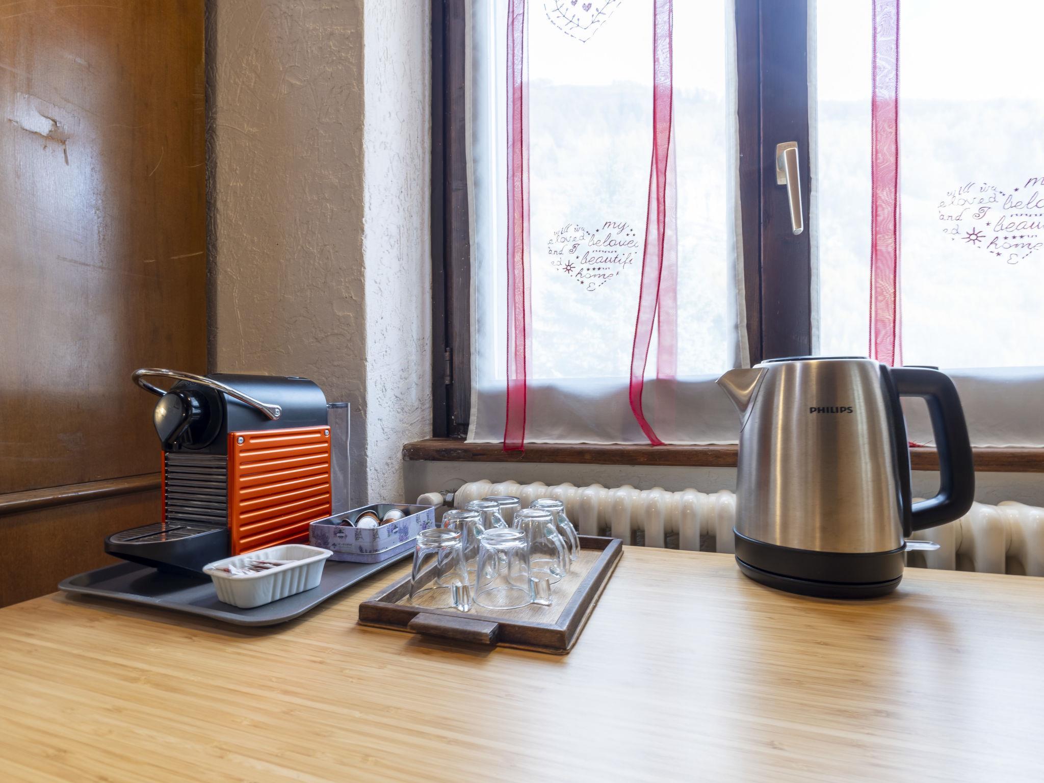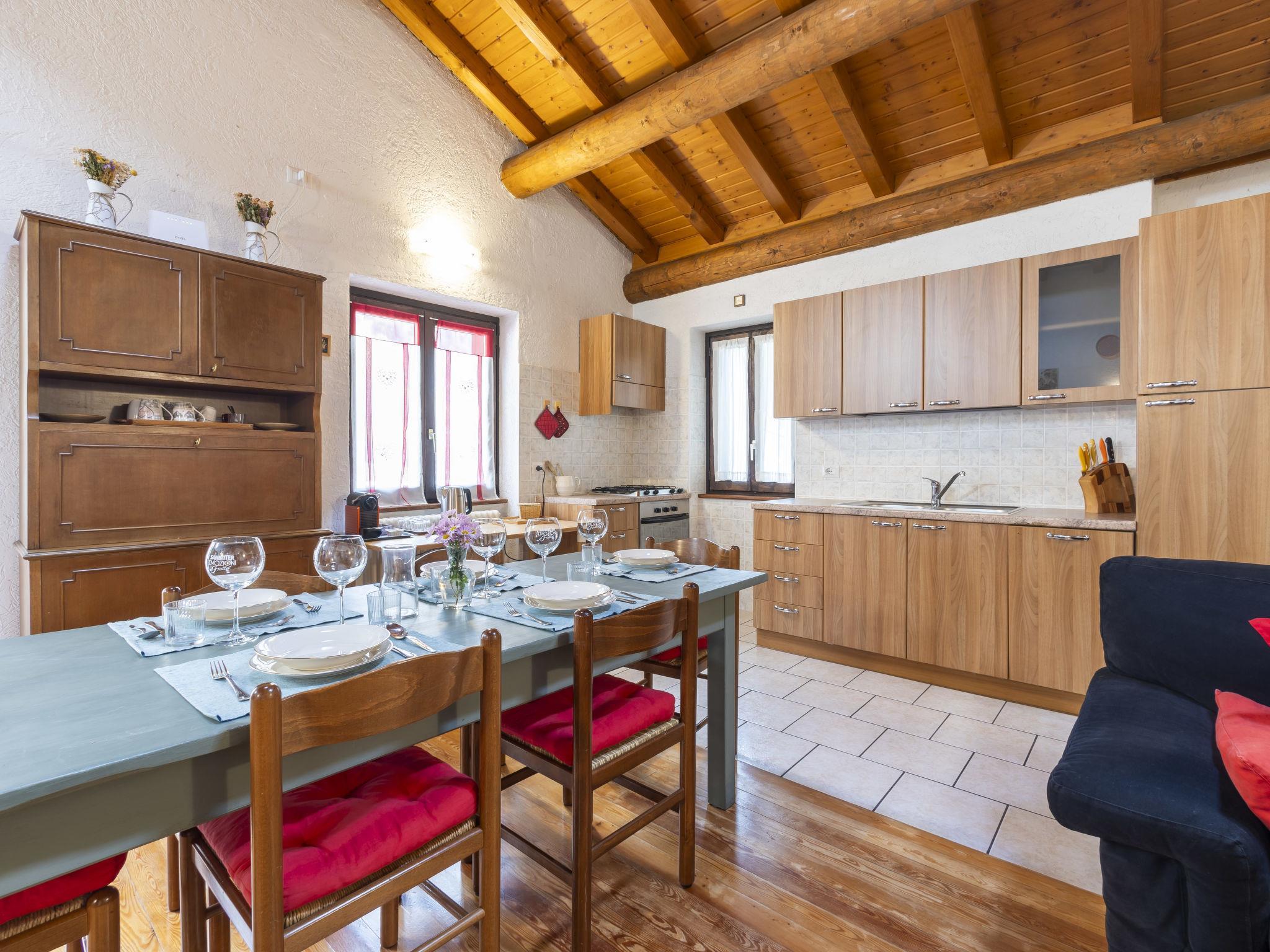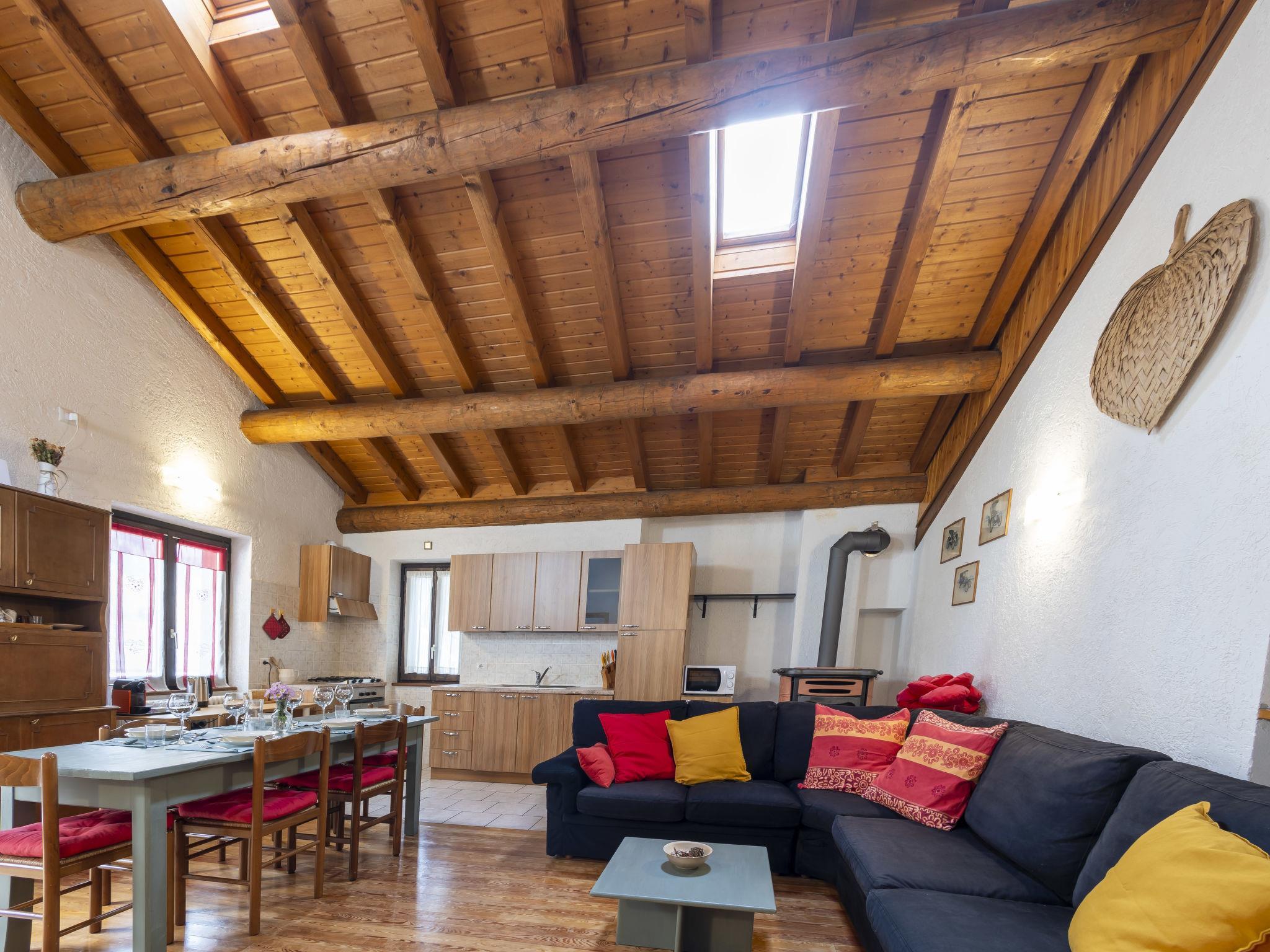 4-Zimmer-Wohnung 110 m2 im 2. Stock. Geräumig und hell, abgeschrägt, zweckmässig und komfortabel eingerichtet: grosses Wohn-/Esszimmer mit Schwedenofen, Esstisch und TV. Ausgang zur Terrasse. 1 Doppelzimmer. 1 Doppelzimmer. 1 kleines Zimmer mit 1 Bett. Grosse Kochnische (Backofen, Geschirrspüler, 4 Flammen, Toaster, Wasserkocher, Mikrowelle, elektrische Kaffeemaschine, Kapseln für die Kaffeemaschine (Nespresso)). Bad/Dusche/Bidet/WC. Heizung. Parkettboden. Grosse Terrasse. Terrassenmöbel. Panoramasicht auf die Berge und den Garten. Zur Verfügung: Waschmaschine, Kinderhochstuhl, Babybett, Haartrockner, Holz (gratis). Internet (WLAN, gratis). Bitte beachten: geeignet für Familien. Nichtraucher-Haus. Maximal 1 Haustier/Hund erlaubt. Kein Fahrstuhl. IT014035C2PCNKUQV6