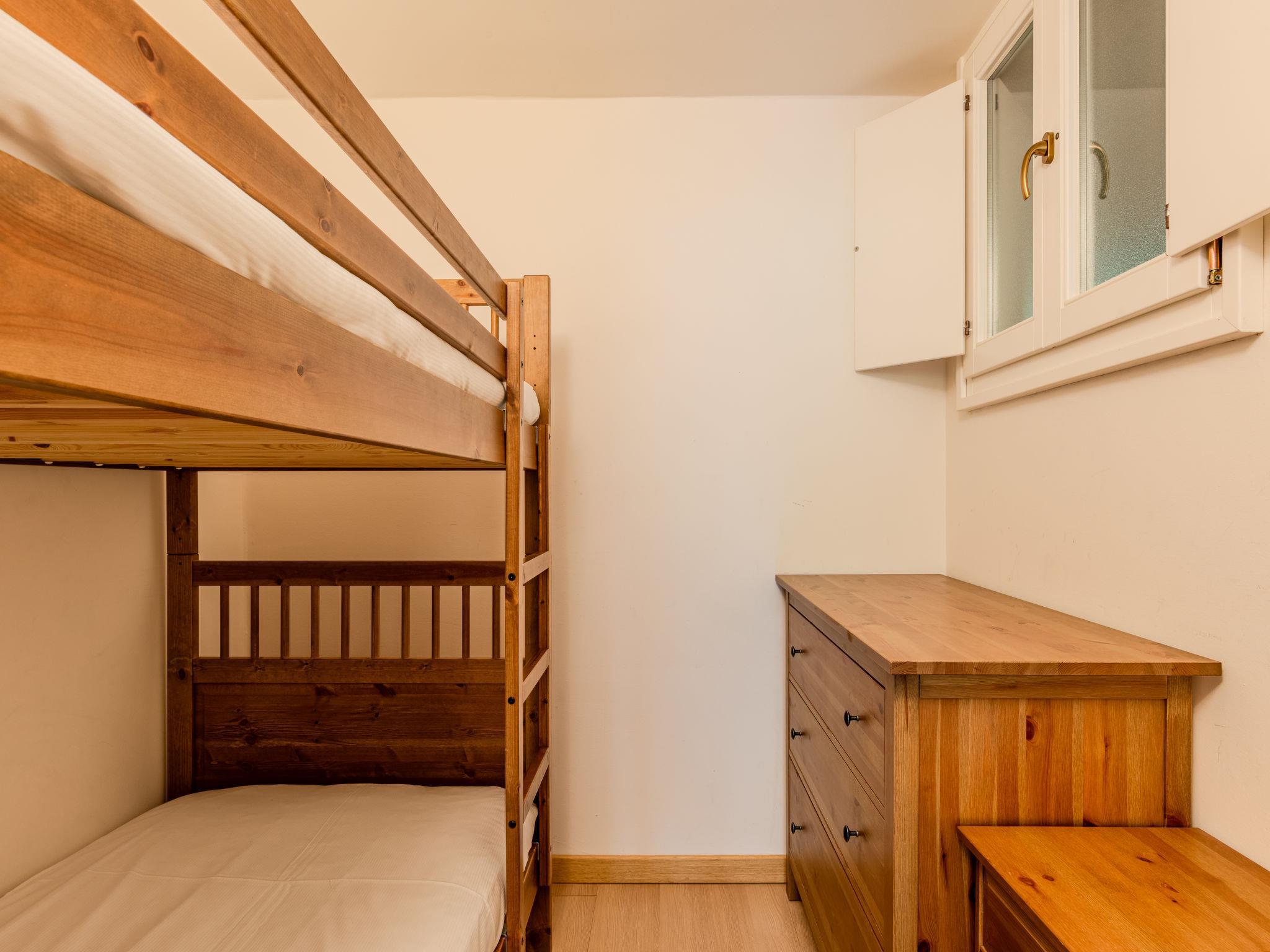 "Vallesinella", 3-Zimmer-Wohnung 60 m2 im 1. Stock. Renoviert im Jahre 2023, zweckmässig und komfortabel eingerichtet: Wohn-/Esszimmer mit Panoramafenster mit Esstisch und TV. Ausgang zum Balkon. 1 Doppelzimmer mit Schiebetür, Panoramafenster. 1 Zimmer mit 1 x 2 Etagenbetten (80 cm, Länge 190 cm). Küche (Mini-Backofen, 4 Induktionskochplatten, Tiefkühler). Dusche/Bidet/WC. Heizung. Heizung nur verfügbar von 01.11. bis 31.05. Parkettboden. Sehr schöne Panoramasicht auf die Berge und die Landschaft. Zur Verfügung: Babybett bis 2 Jahre (extra), Haartrockner. Garage Nr. 12 auf dem Grundstück (1 Auto). Bitte beachten: geeignet für Familien. Nichtraucher-Unterkunft. Feuerlöscher. IT022247C27L8JUU9N