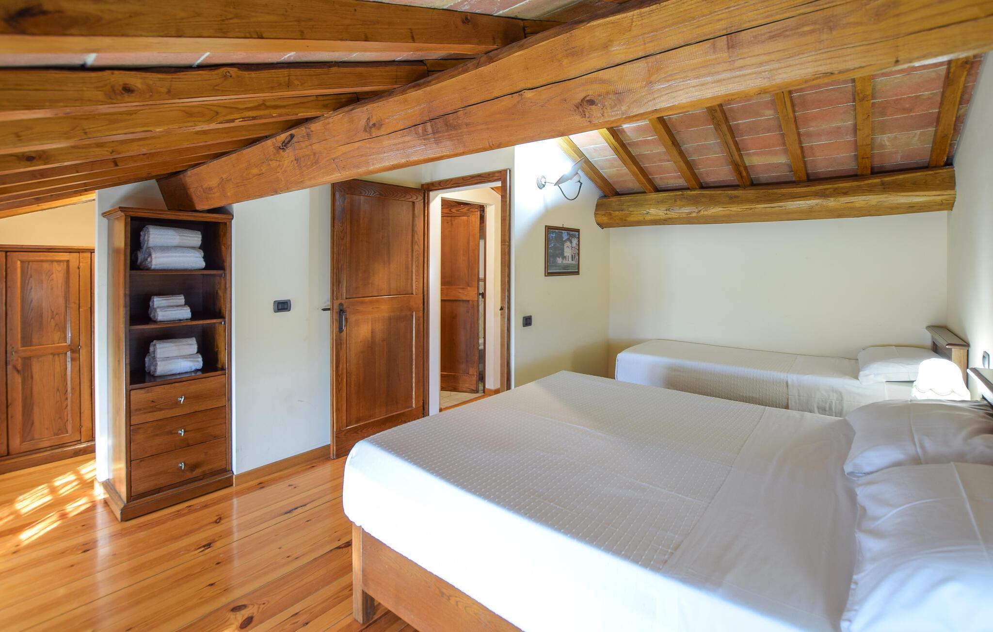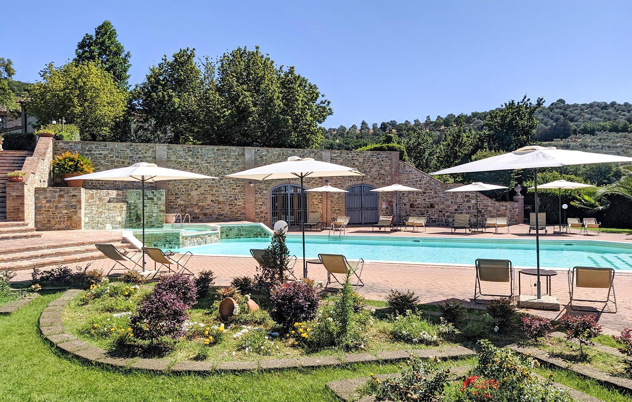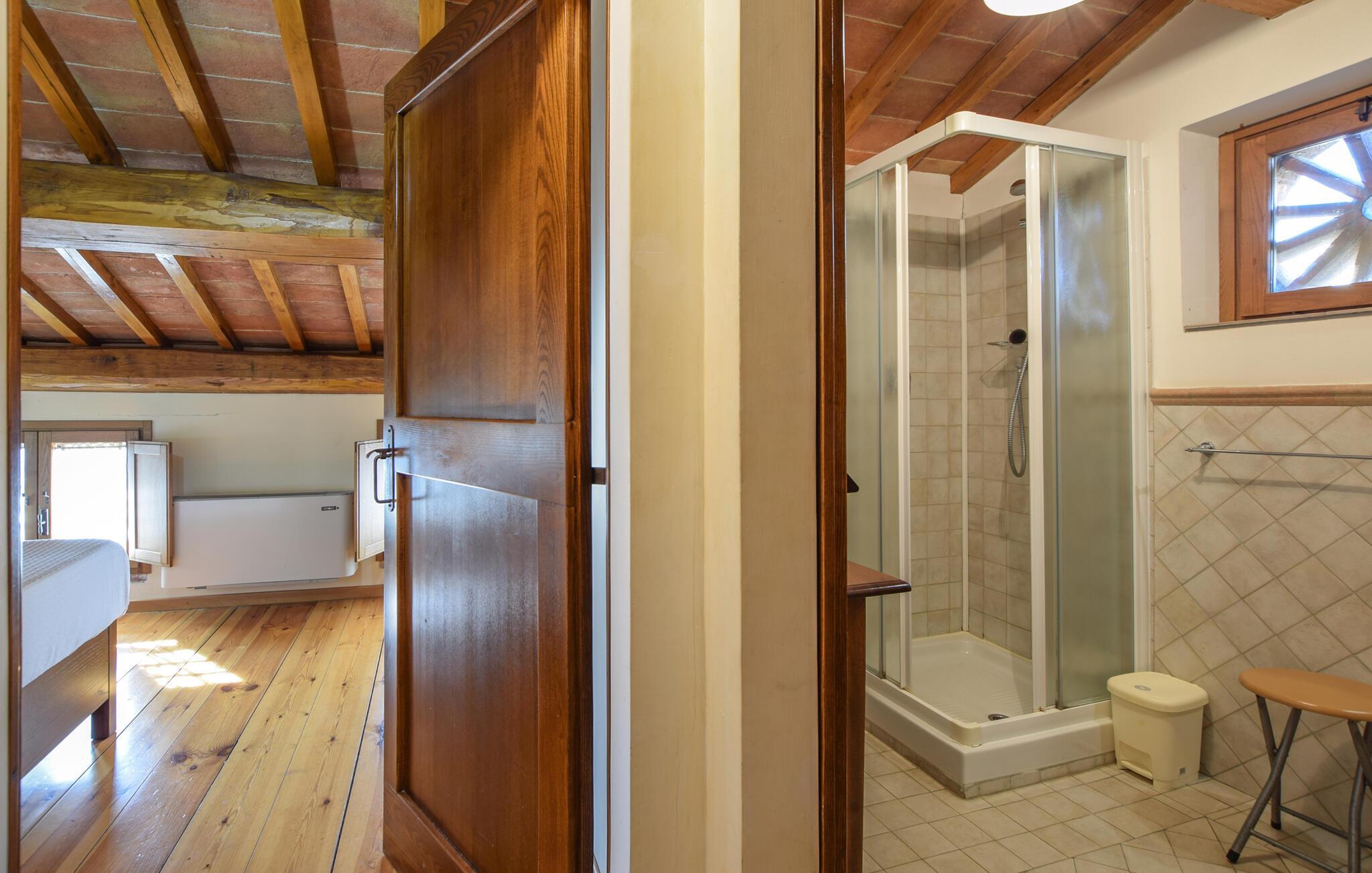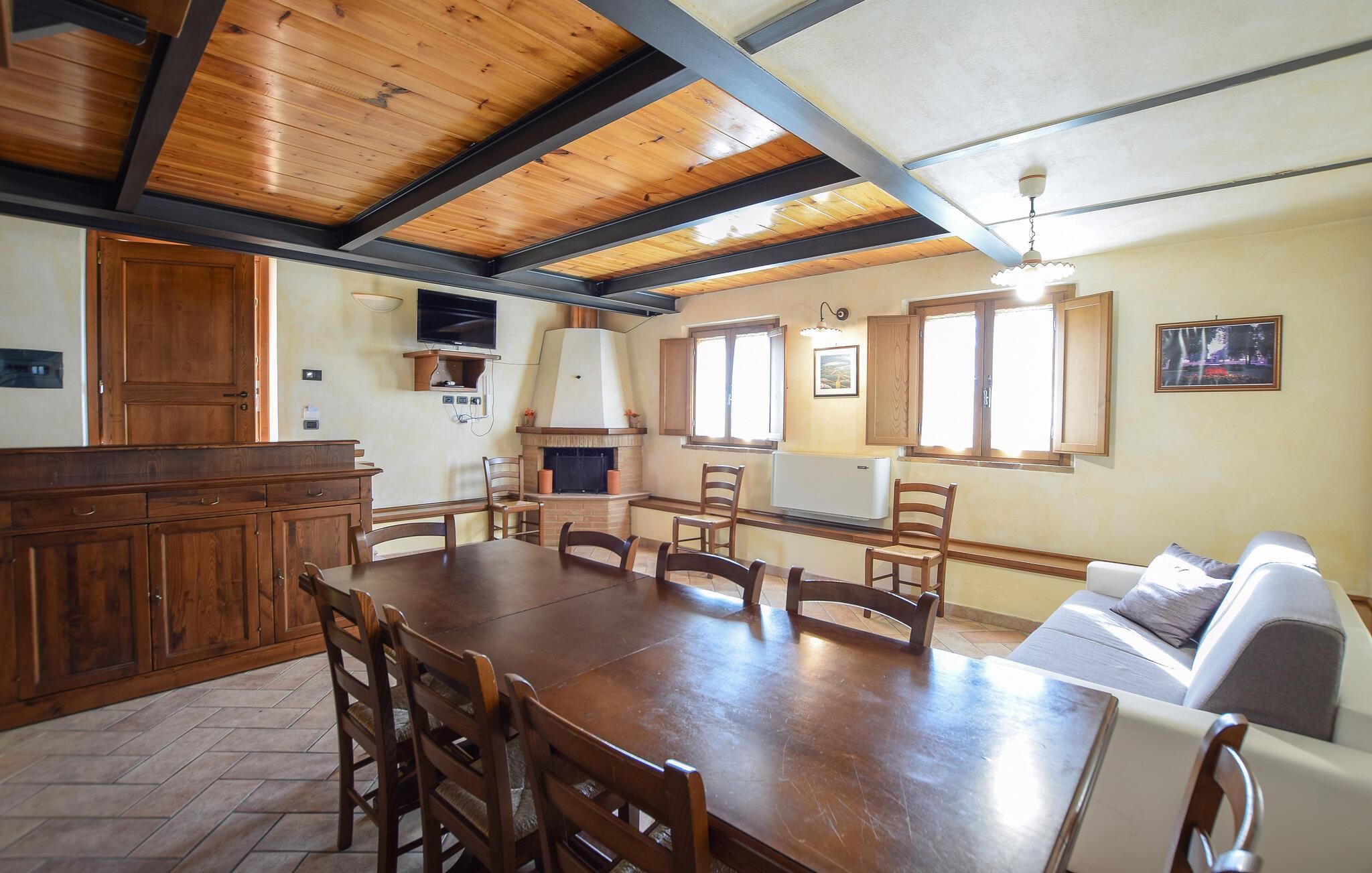 Nur wenige Kilometer vom Lago Trasimeno entfernt, im grünen Herzen Italiens, begrüßt Sie die unabhängige Villa in strategischer Lage. Die Unterkunft versprüht mit seinem rustikalen Stil eine warme Atmosphäre. Nehmen Sie das tägliche Essen im offenen Wohnraum ein und genießen Sie es, nicht zur Arbeit hetzen zu müssen. Im Freien erwarten Sie Vergnügen pur. Auch die Kleinsten werden auf dem Spielplatz gut unterhalten. Entspannen Sie sich auf den Sonnenliegen mit der wunderschönen, üppigen Landschaft von Umbrien vor sich. Ihre Kinder werden vom stundenlangen Wasserspaß im erfrischenden Pool sicher gewellte Fingerkubben bekommen.