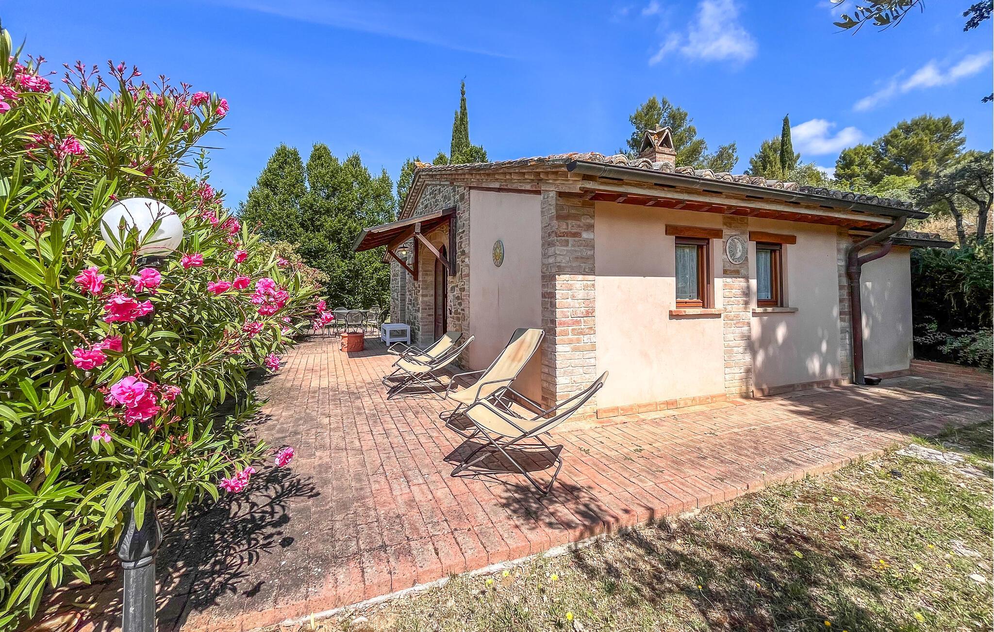 Genießen Sie einen Traumurlaub in einer ländlichen Umgebung in diesem Ferienhaus mit Pool.