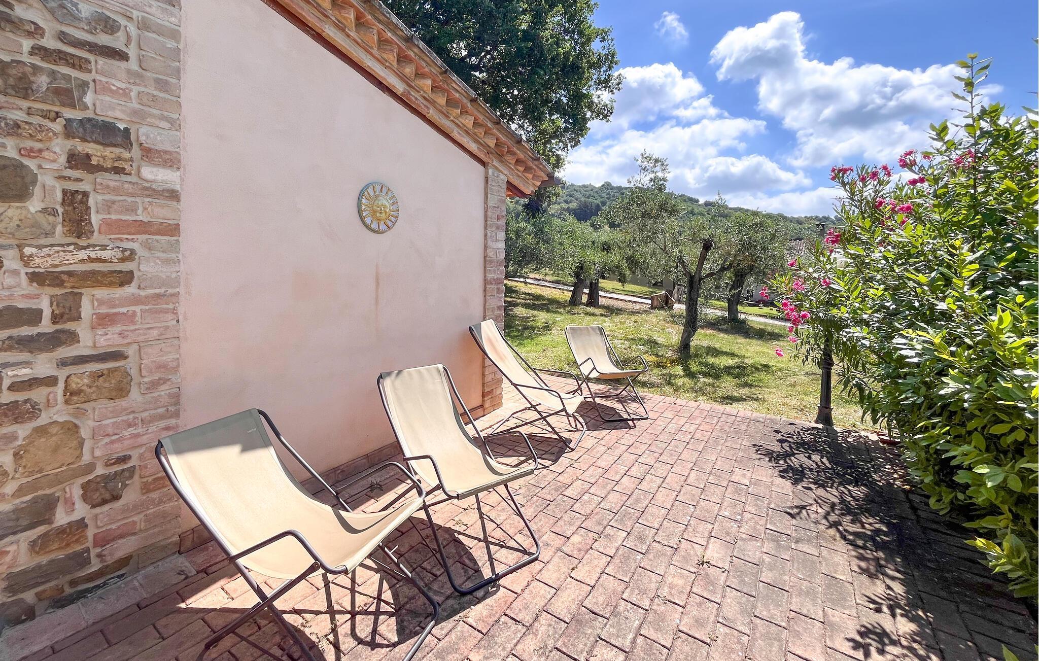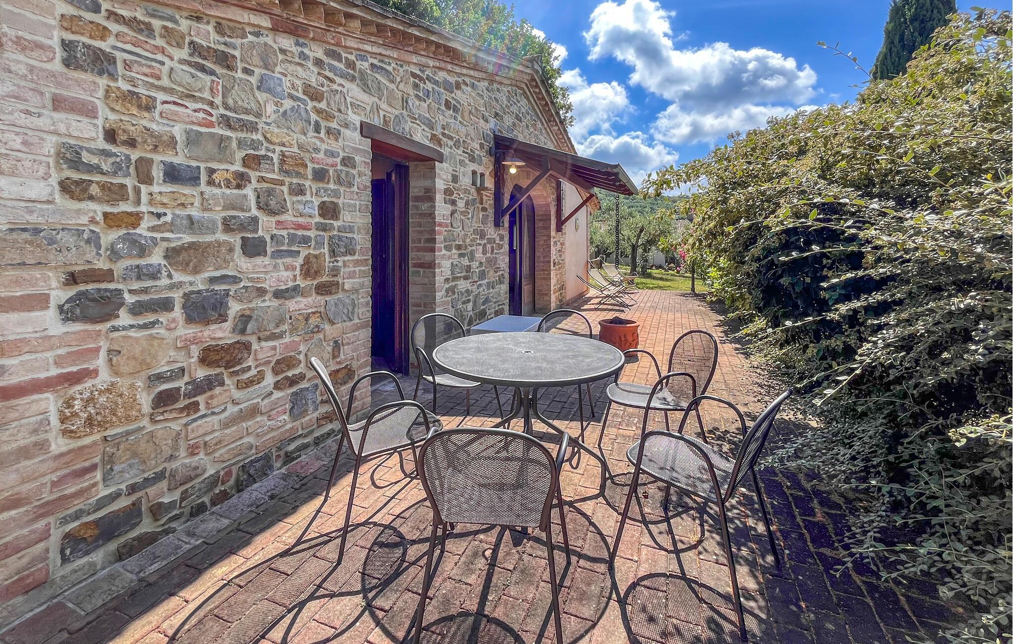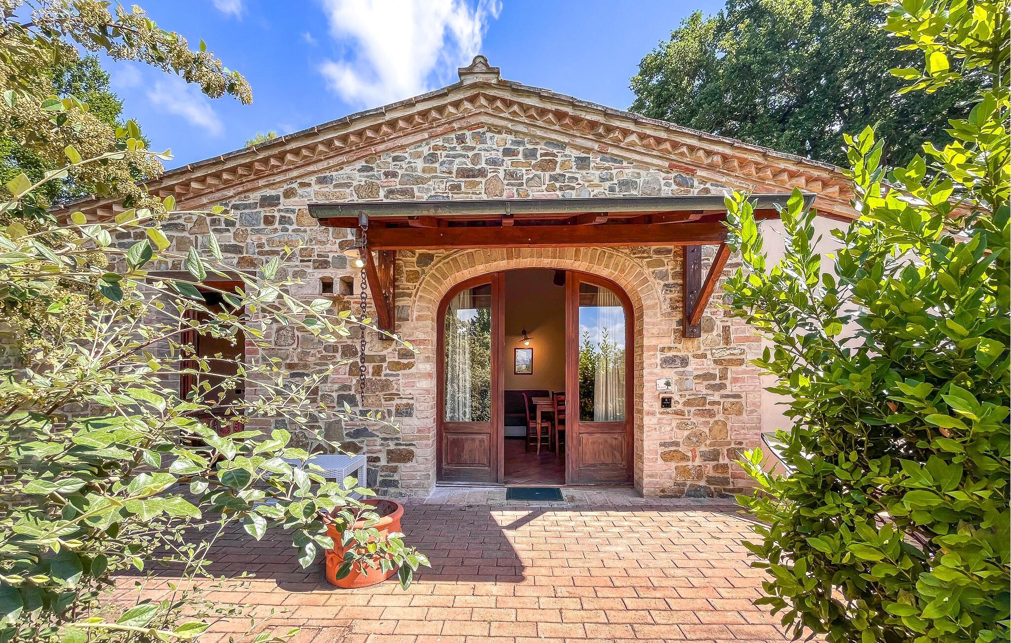Rustikaler Charme und ländliche Idylle treffen in Ihrem Umbrien-Ferienhaus aufeinander. Das freistehende Haus in einem Bauernhaus liegt nur unweit vom Trasimenischen See entfernt und ist der ideale Ort für einen ungestörten Urlaub mit allen Annehmlichkeiten. Nach dem morgendlichen Kaffee und einem leckeren Frühstück in der Küche Ihres Ferienhauses geht es gleich hinaus in den großzügigen, parkähnlichen Garten. Genießen Sie hier die Ruhe der ländlichen Umgebung und verweilen Sie auf einer der Gartenbänke, während Sie Ihren Kindern beim Spielen und Schaukeln zuschauen. Der sprudelnde Brunnen und die Schatten spendenden Bäume schaffen eine sorglose Atmosphäre, und der bezaubernde Pool lädt zu lustigen Wasserspielen und zum Relaxen auf den Sonnenliegen ein.