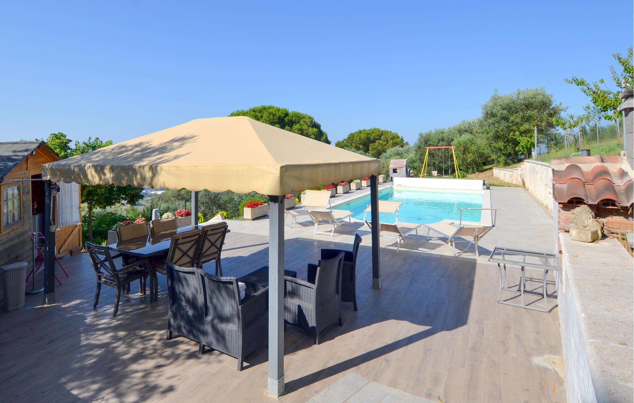 Zu jeder Tageszeit bietet Ihnen der Pool eine willkommene Erfrischung. Machen Sie es sich danach mit einem kühlen Getränk bequem und genießen Sie die angenehme Leichtigkeit des Urlaubs. Vielleicht vertiefen Sie sich auch in ein gutes Buch oder ein entspanntes Gespräch. Und wenn die Sonne langsam sinkt, lädt die Terrasse zu einem gemütlichen Grillabend ein.