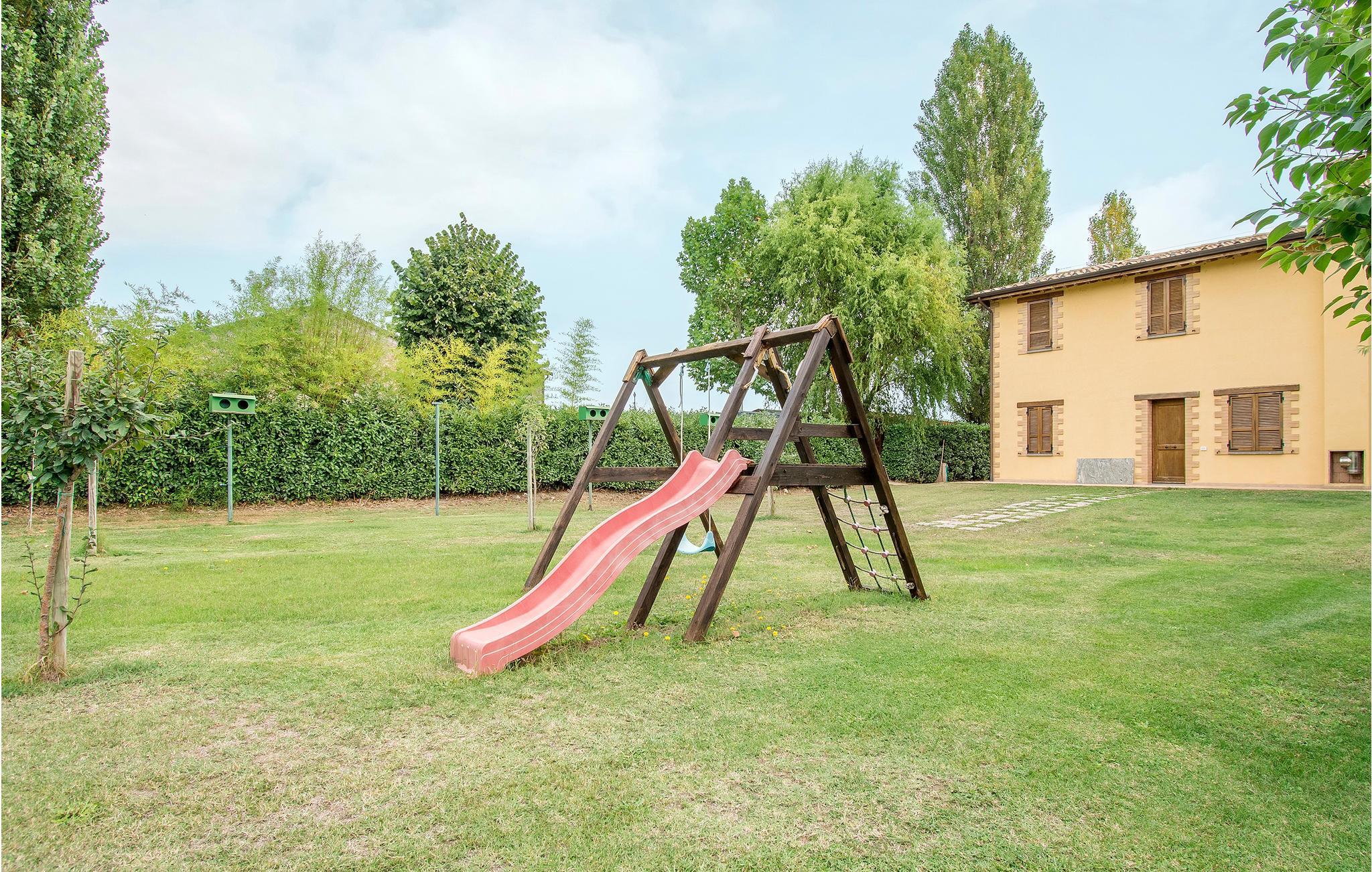 Erleben Sie Agritourismus in der wunderschönen umbrischen Landschaft. Hier ist Platz für die ganze Familie samt Haustier. Jede:r kann sich hier seinen Lieblingsplatz aussuchen. Die Kinder finden auf dem Spielplatz Beschäftigung, während die Eltern sich zwischen sportlicher Betätigung im Fitnessraum mit Lounge unter der Veranda oder Entspannung am Außenpool entscheiden können. Nutzen Sie das außergewöhnliche Angebot, Backwaren aus bauernhofeigener Produktion zu verspeisen oder setzen Sie sich abends mit Freunden und Familie vor dem Grill zusammen, um den Tag ausklingen zu lassen.