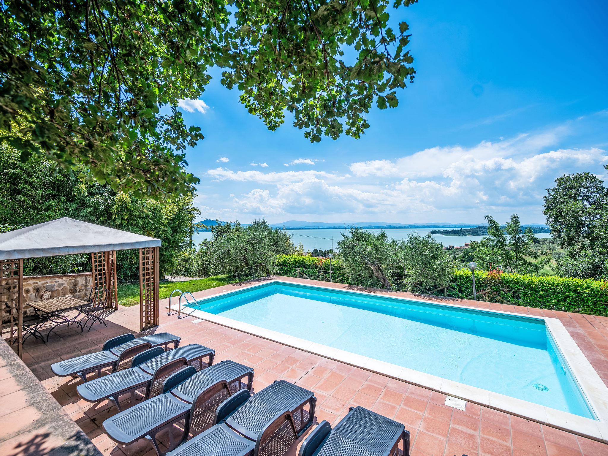 Moderner, freistehender, komfortabler Landsitz "Mariani", umgeben von Bäumen und Feldern. 900 m vom Zentrum von San Feliciano, auf einem Hügel, 1 km vom See. Zur Alleinbenutzung: Grundstück 7'000 m2, Garten 1'000 m2 (nicht eingezäunt), Schwimmbad (4 x 10 m, 140 cm tief, saisonale Verfügbarkeit: 01.Apr. - 31.Okt.). Aussendusche, Sitzplatz, Grill. Holprige, steile Zufahrt (500 m Naturweg). Parkplatz auf dem Grundstück. Supermarkt, Restaurant, Bar 900 m, Bushaltestelle 150 m, Fähre 1 km, Grasstrand 2 km, Badesee "Trasimeno" 1 km. Jacht-Hafen 1 km. Nahe gelegene Sehenswürdigkeiten: Passignano Sul Trasimeno 14 km, Castiglione Del Lago 22 km, Perugia 24 km, Cortona 33 km, Città Della Pieve 33 km, Assisi 44 km. Bitte beachten: Fahrzeug empfohlen. Der Besitzer akzeptiert keine Jugendgruppen.
