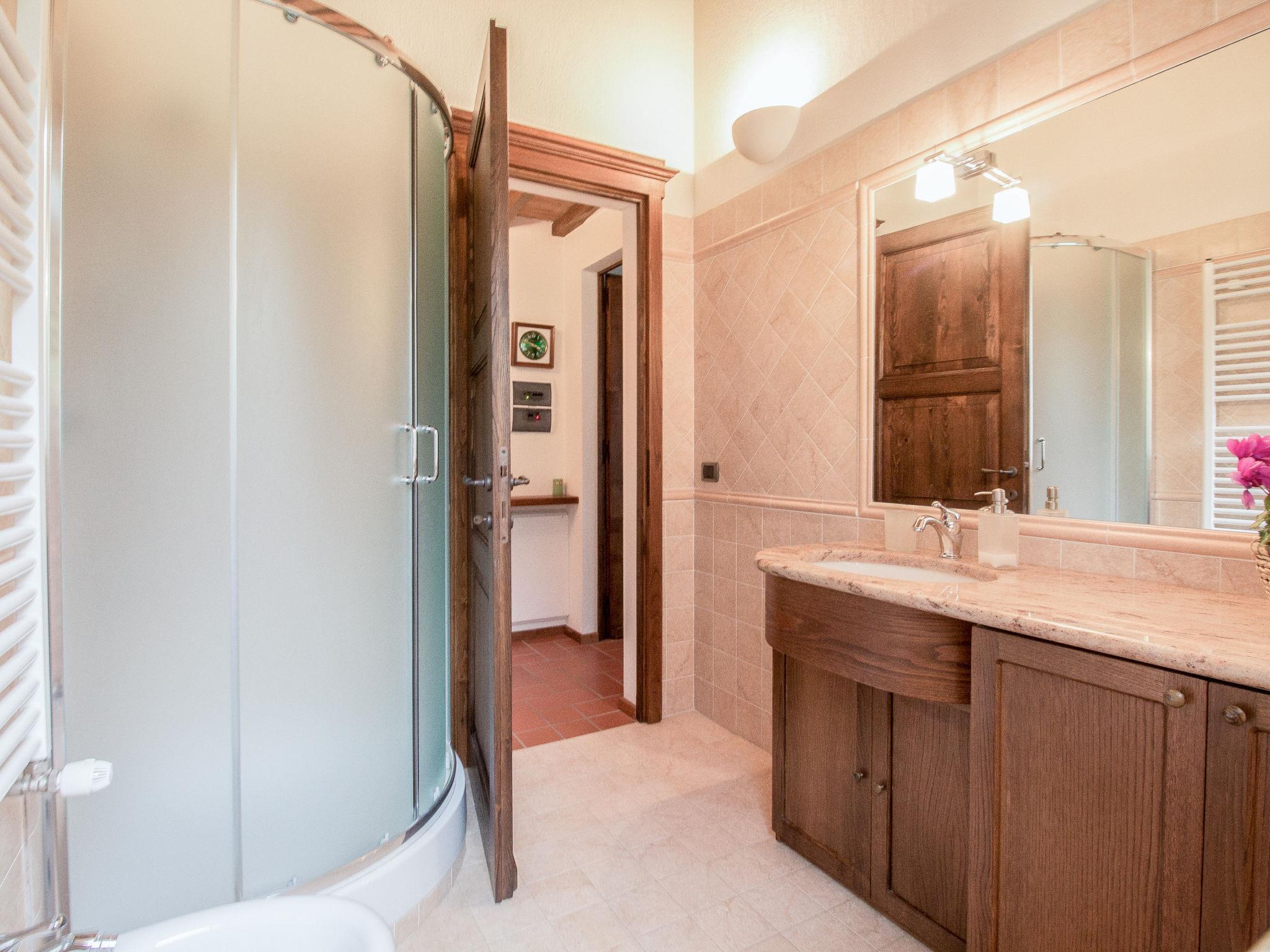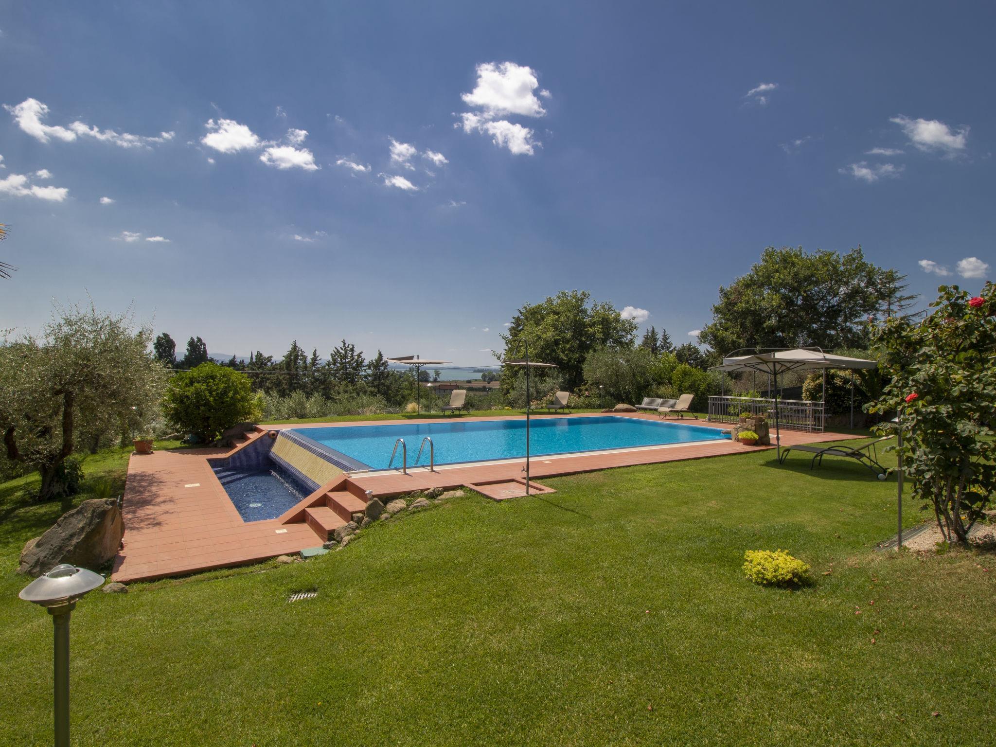 Villa "Olindia", einseitig angebaut. Ruhige, sonnige Lage im Villenviertel, 300 m vom See. Zur Mitbenutzung: terrassierter Garten, 3'000 m2 (eingezäunt). Zur Alleinbenutzung: Schwimmbad (12 x 6 m, 150 cm tief, saisonale Verfügbarkeit: 01.Mar. - 31.Okt.). Dusche/WC im Poolbereich, Aussendusche, Sprudelbad, Pergola, Gartenmöbel, Grillhaus. Im Hause: Internetzugang, Klimaanlage, Alarmanlage, Heizung vor Ort zu zahlen (01.Nov. - 31.Mar.), Heizung nur verfügbar von 01.Nov. - 31.Mar.. Wohnungsreinigung möglich (extra). Parkplatz auf dem Grundstück. Lebensmittelgeschäft 1.5 km, Supermarkt 3 km, Restaurant 200 m, Bushaltestelle 550 m, Fähre "Isola Polvese" 2 km, Grasstrand 3 km, Thermalbad "Rapolano" 60 km, Badesee "Trasimeno" 300 m. Nahe gelegene Sehenswürdigkeiten: Passignano sul Trasimeno 15 km, Castiglion Del Lago 20 km, Perugia 25 km, Cortona 35 km, Assisi 40 km, Montepulciano 43 km. Bitte beachten: Der Besitzer wohnt auf dem gleichen Grundstück. Der Eigentümer benutzt das Schwimmbecken nur gelegentlich.