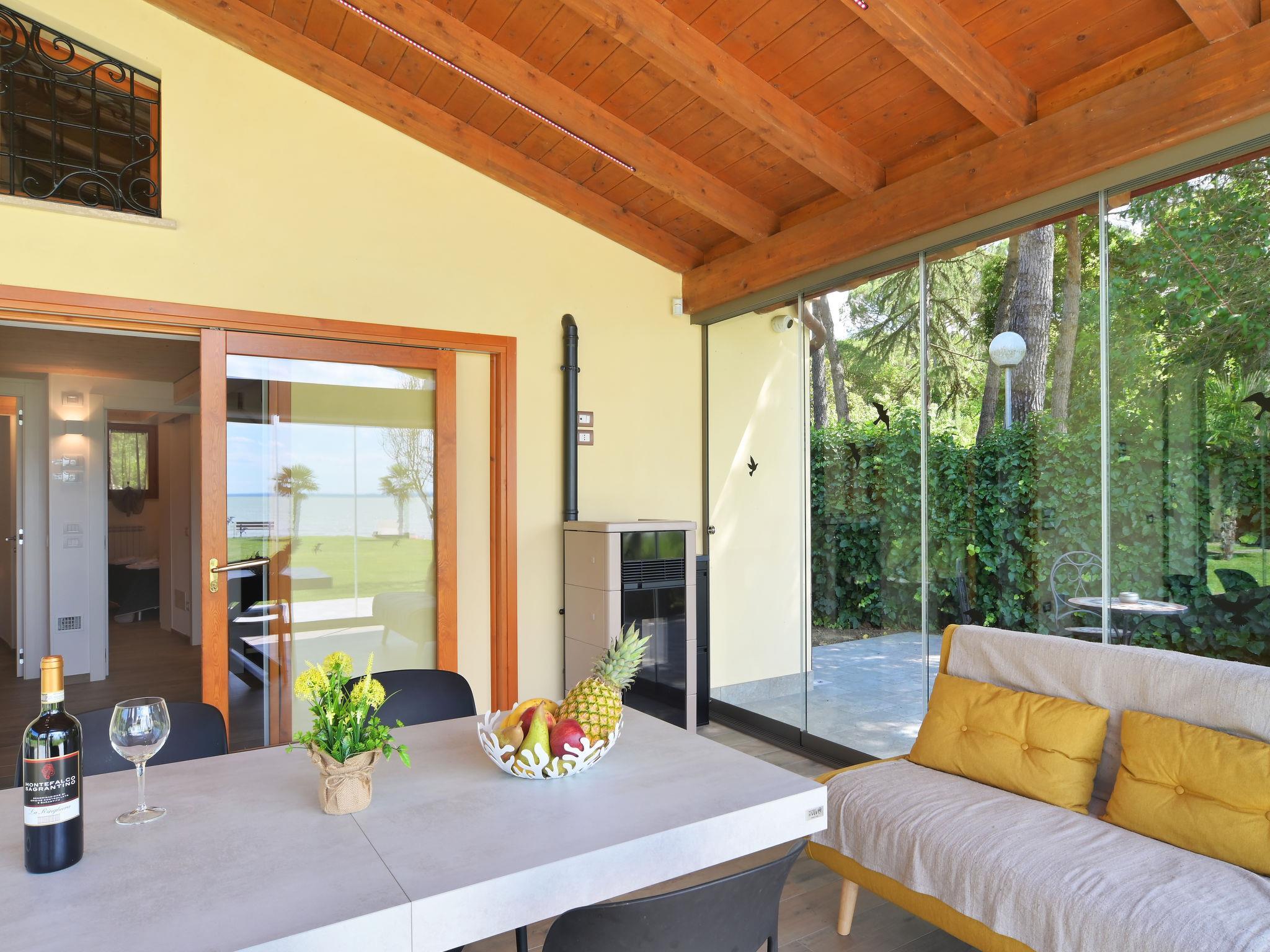 5-Zimmer-Chalet 110 m2 auf 2 Stockwerken. Komfortabel und modern eingerichtet: Wohn-/Esszimmer mit Küchenblock und TV (Flachbildschirm). Wohnzimmer mit Veranda. Ausgang zum Garten. 1 Zimmer mit 1 Bett, 1 Doppelbett und Dusche/Bidet/WC. 1 Doppelzimmer mit Dusche/Bidet/WC. Kochnische (Backofen, Geschirrspüler, Toaster, Wasserkocher, Mikrowelle, elektrische Kaffeemaschine, Kapseln für die Kaffeemaschine (nespresso)). G-Heizung, Klimaanlage. Heizung nur verfügbar von 08.11. bis 07.04. Obergeschoss: Galerie mit TV (Flachbildschirm). Herrliche Sicht auf den See. Zur Verfügung: Waschmaschine, Fliegengitter, Haartrockner. Internet (Wireless LAN). Bitte beachten: Nichtraucher-Haus. 1 kleines Haustier/Hund erlaubt. IT054026C202033118
