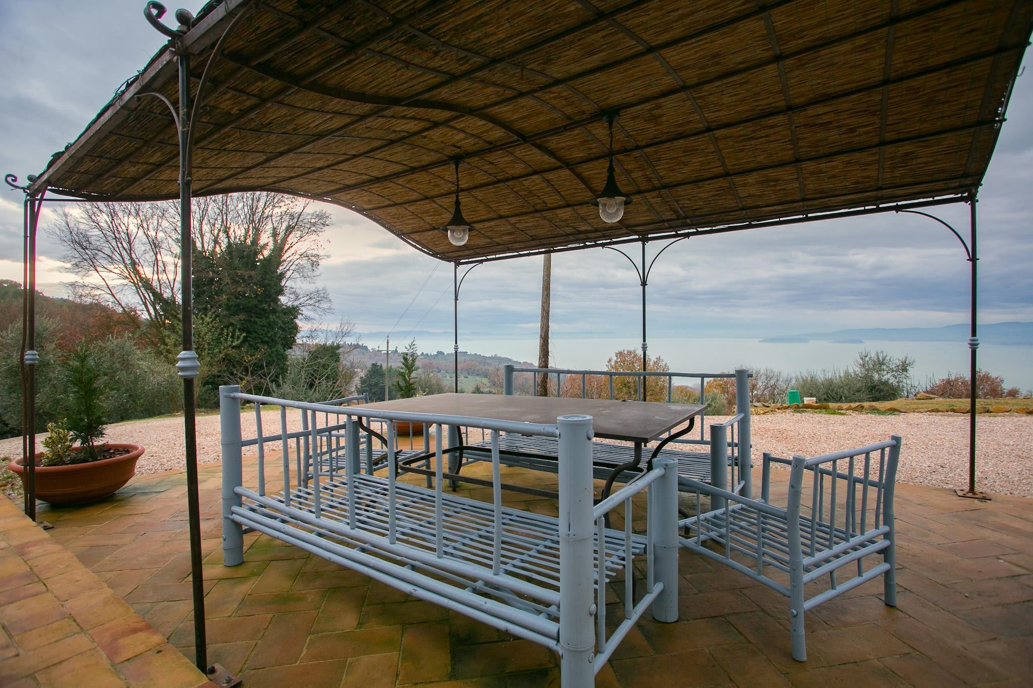 Inmitten der sanften Hügel der Toskana gelegen, bietet diese historische Villa mit 9 Schlafzimmern in Cortona einen unvergesslichen Aufenthalt für bis zu 8 Gäste und ist somit ideal für große Familien oder Gruppen von Freunden. Das freistehende Anwesen verbindet antiken Charme mit modernem Komfort und verfügt über einen privaten Swimmingpool (geöffnet von Mai bis Oktober) und einen Tennisplatz vor Ort. Nur 500 Meter vom bezaubernden Städtchen Cortona entfernt, können Gäste durch die gepflasterten Straßen mit ihren Cafés, Boutiquen und historischer Architektur schlendern. Restaurants erreichen Sie nach 1 km. Tagesausflüge in die berühmten Städte Florenz, Siena und Perugia bieten kulturelles Eintauchen und künstlerische Wunder. Der Trasimenische See, ideal zum Schwimmen, Bootfahren oder für Picknicks am See, liegt ebenfalls in der Nähe. In der Villa können Gäste am Kamin entspannen, Sat-TV genießen und in den geräumigen Essbereichen gemeinsame Mahlzeiten zubereiten. Der ruhige Garten bietet Platz zum Entspannen und eine malerische Aussicht. Ein Haustier ist auf Ihrem toskanischen Ausflug willkommen. Egal, ob Sie im Perugia Golf Club (17,4 km) Golf spielen, am Zocco Beach (3,2 km) entspannen oder die Landschaft mit dem Boot von Passignano (10 km) aus erkunden, diese Villa ist der perfekte Ort für Ruhe und Erholung.