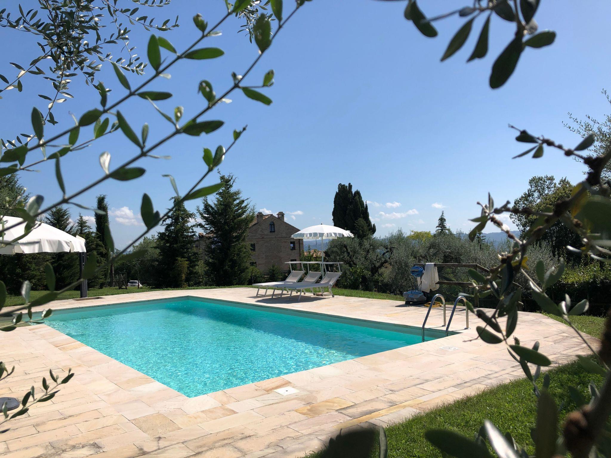 Im Außenbereich können sich die Gäste am schönen Swimmingpool entspannen, der von einer großen Sonnenterrasse umgeben ist, die Momente der puren Entspannung unter der Sonne der Marken verspricht. Der Bauernhof liegt in einer bezaubernden Landschaft im Herzen der Region und ist umgeben von der atemberaubenden Natur der Marken.
