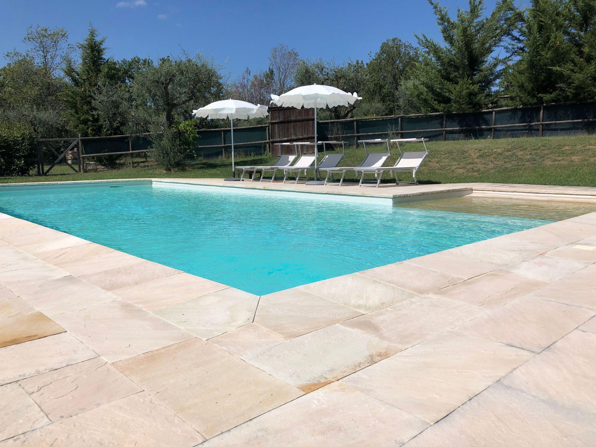 Im Außenbereich steht den Gästen ein herrlicher Swimmingpool zur Verfügung, der von einer großen Sonnenterrasse umgeben ist, die zum Entspannen in der Sonne einlädt. In diesem ruhigen und belebten Raum können die Gäste die Schönheit der umliegenden Landschaft genießen und angenehme Stunden in völliger Gelassenheit verbringen, inmitten einer Atmosphäre der Ruhe und des Wohlbefindens.