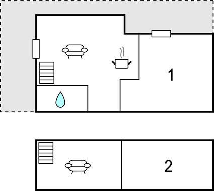 Badezimmer 4m2 (nr. 1) - WC. Warmes und kaltes Wasser. Dusche