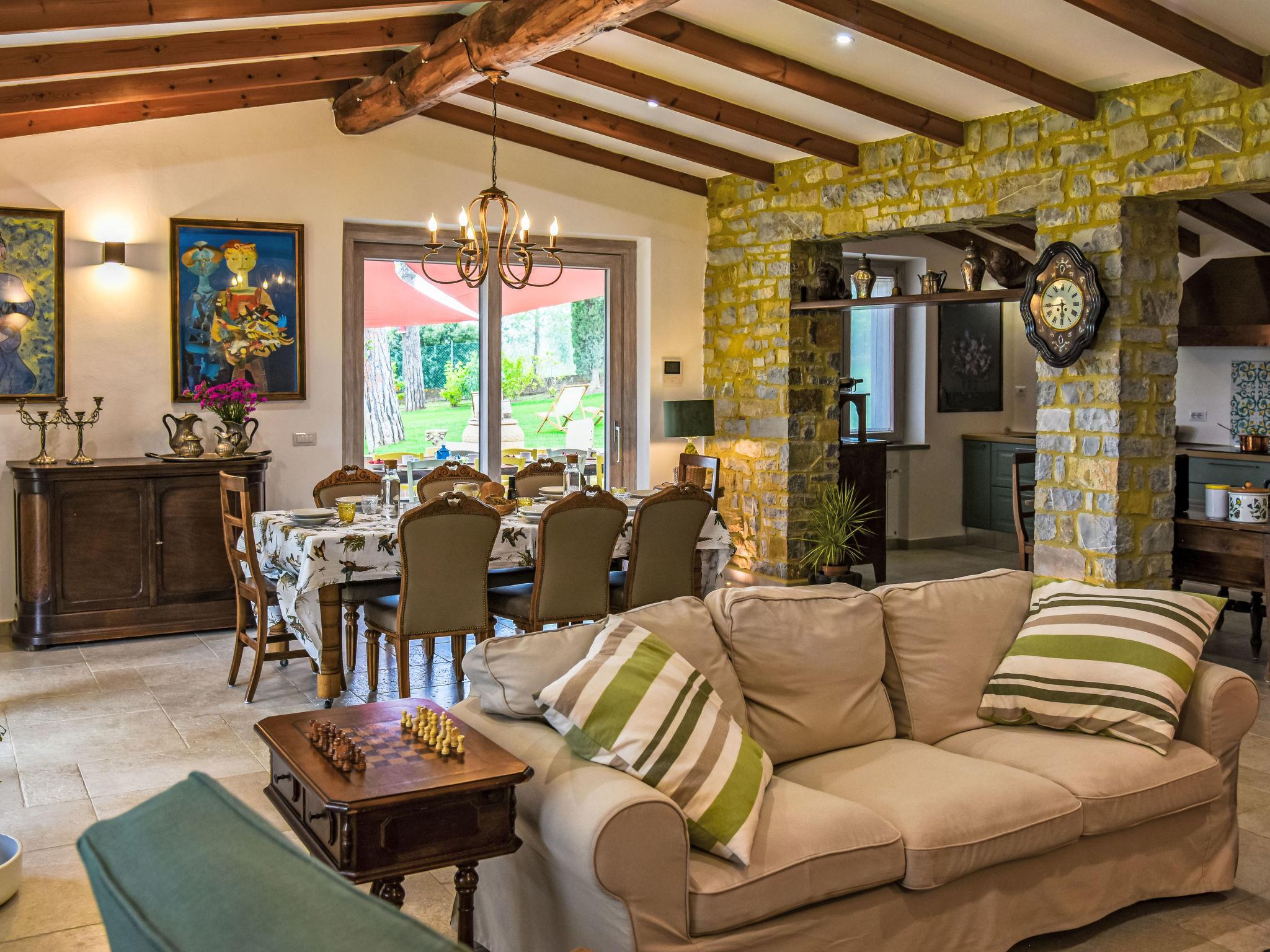 7-Zimmer-Villa 280 m2, im Erdgeschoss. Geräumig und hell, modern und geschmackvoll eingerichtet: grosses Wohn-/Esszimmer mit Schiebetür mit Esstisch und TV. Ausgang zum Garten, zur Terrasse. 1 grosses Doppelzimmer mit Dusche/Bidet/WC, Sprudelbad und TV. Ausgang zum Garten. 3 Doppelzimmer, jedes Zimmer mit Dusche/Bidet/WC und TV. 1 Zimmer mit 2 Betten. Ausgang zum Garten. Küche (Backofen, Geschirrspüler, 4 Induktionskochplatten, Toaster, Wasserkocher, Mikrowelle, Tiefkühler, elektrische Kaffeemaschine). Ausgang zum Garten, zur Terrasse. Bad/Bidet/WC. Grosse Terrasse teilweise überdacht. Terrassenmöbel, Gartengrill, Liegestühle. Schöne Panoramasicht auf die Landschaft. Zur Verfügung: Waschmaschine, Fliegengitter, Kinderhochstuhl, Babybett bis 2 Jahre, Haartrockner. Internet (WLAN, gratis). Parkplatz (überdacht, eingezäunt). E-Ladestation. Bitte beachten: Nichtraucher-Unterkunft. Maximal 2 Haustiere/Hunde erlaubt. Eigener Eingang, Rauchmelder, Feuerlöscher. IT053013C2ZMPQAV6R