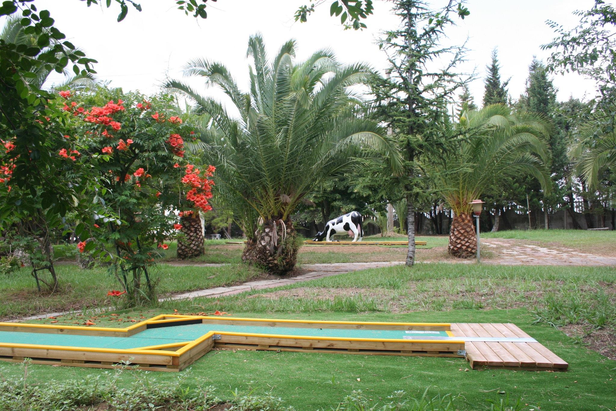 Parterre: (offene Küche(Kochherd, Kühl-/Gefrierkombination), Wohn-/Schlafzimmer(Doppelbett oder 2 Einzelbetten, TV), Badezimmer(Dusche, Waschbecken, Toilette), Heizung, Klimaanlage) 2x Garten(alleinige Nutzung, Gemeinschaftliche Nutzung mit anderen Gästen), Gartenmöbel, Parkplatz, Liegestühle, Sonnenschirm, Pool(Gemeinschaftliche Nutzung mit anderen Gästen, gegen Gebühr, 16 x 8 m., geöffnet von Jun bis einschließlich Sep), Spielgeräte(Gemeinschaftliche Nutzung mit anderen Gästen), Tischtennisplatte(Gemeinschaftliche Nutzung mit anderen Gästen), Tischfußball(Gemeinschaftliche Nutzung mit anderen Gästen), Dart, Fahrräder verfügbar(auf Anfrage), Gartenlounge
