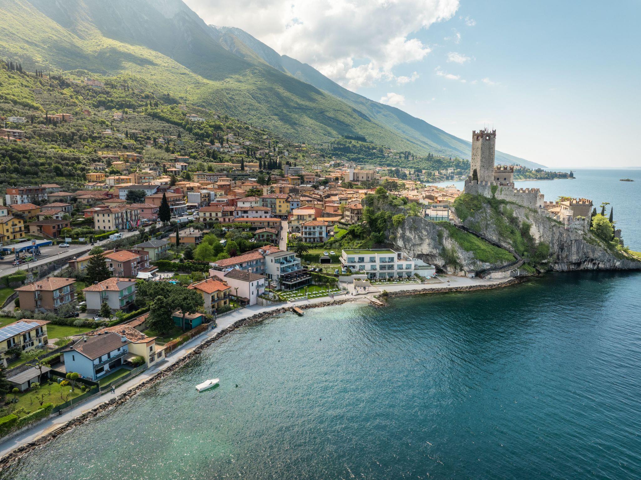 Die Wohnung befindet sich in einem kleinen touristischen Dorf, in der Nähe des historischen Zentrums, nur wenige Meter von der Burg und 50 Meter vom Strand entfernt, der über eine Straße mit eingeschränktem Verkehr erreicht wird. . Die Seilbahn zum Monte Baldo ist 100 m entfernt und die Abfahrt der Schiffe - Fähren ist 300 m entfernt. In unmittelbarer Nähe gibt es Geschäfte, Restaurants, Bars, eine Apotheke und eine Bank. Vom Haus aus gibt es einen direkten Zugang zum Radweg, der am See entlang führt. Die Autobahn ist 35 km, der Flughafen 70 km und die Bushaltestelle 250 m entfernt.