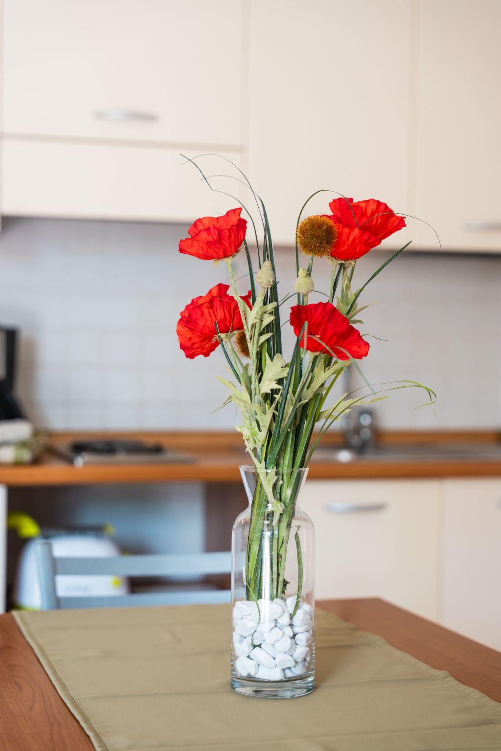 Ein Ein-Zimmer-Appartement von 38 qm im Erdgeschoss mit einer Terrasse. Die Wohnung verfügt über ein Wohnzimmer mit Kochnische, ausgestattet mit Geschirr und Kochzubehör, 2 elektrischen Kochplatten, Kühlschrank, Gefrierschrank, elektrischer Kaffeemaschine, Toaster, Satellitenfernsehen und Internet im Preis inbegriffen. Im Wohnzimmer befindet sich ein bequemes Schlafsofa mit 2 Einzelbetten. Getrennt durch einen Kleiderschrank steht ein Doppelbett. Das Badezimmer hat ein Waschbecken, Bidet, WC, Dusche.