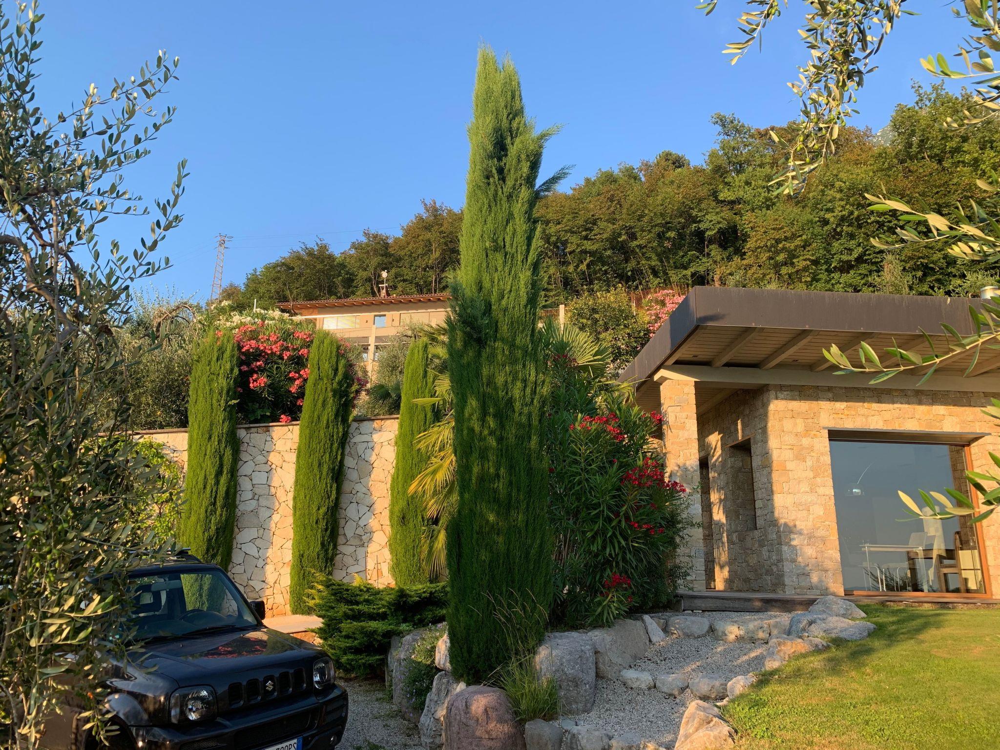 Im Außenbereich der Villa befindet sich das Highlight: eine Dachterrasse, die sich zusammen mit der Bio-Sauna und einer Warmwasser Dusche in eine atemberaubende SPA Oase mit fantastischem Blick auf den See verwandelt. Das 5.000 qm große, umzäunte Grundstück bietet zudem viel Auslaufmöglichkeiten für Vierbeiner. Ein kostenloser Geländewagen (Suzuki Jimny) wird für die enge-steile Zufahrtsstraße zur Verfügung gestellt, und für Ihr E-Auto gibt es eine Ladestation am Fuß des Anstiegs sowie die Möglichkeit, in einer abgeschlossenen Garage zu parken.