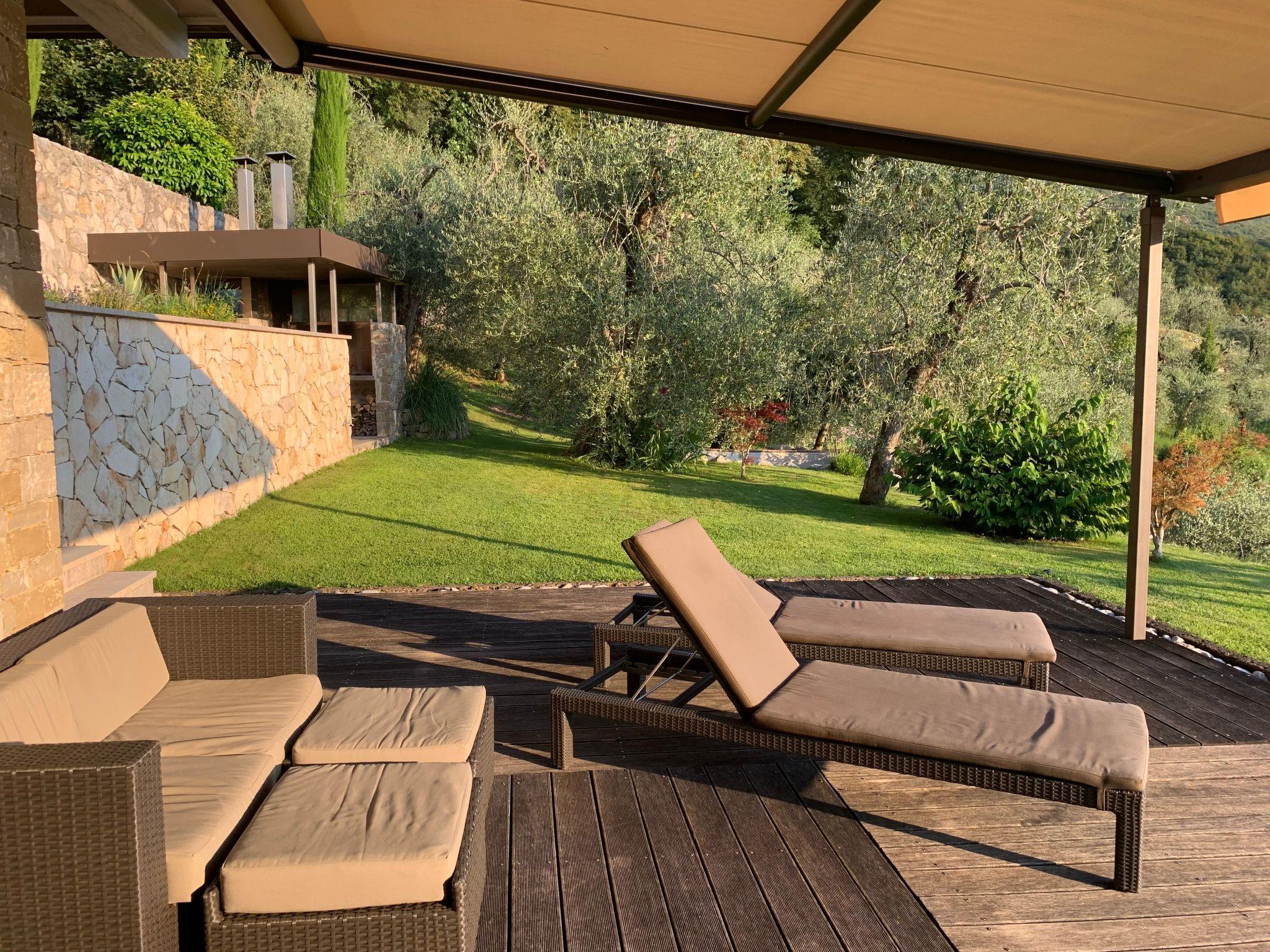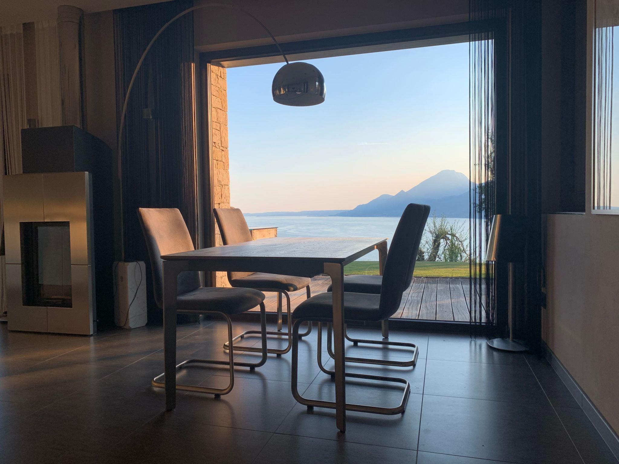 Das Innere der Villa Miralago besticht durch eine luxuriöse, moderne High-Tech Einrichtung. Ausgestattet mit Fußbodenheizung, klimatisierten Räumen für die heißen Tage und einem Kamin für stimmungsvolle Abende, bietet das Ferienhaus jeden Komfort, den man sich wünschen kann. Eine überdachte Terrasse mit Sonnen- und Regenschutz sowie eine Feuerstelle und ein Pizzaofen ermöglichen ein optimales Grillen mit Olivenholz und gemütliche Stunden mit Blick auf den Gardasee.