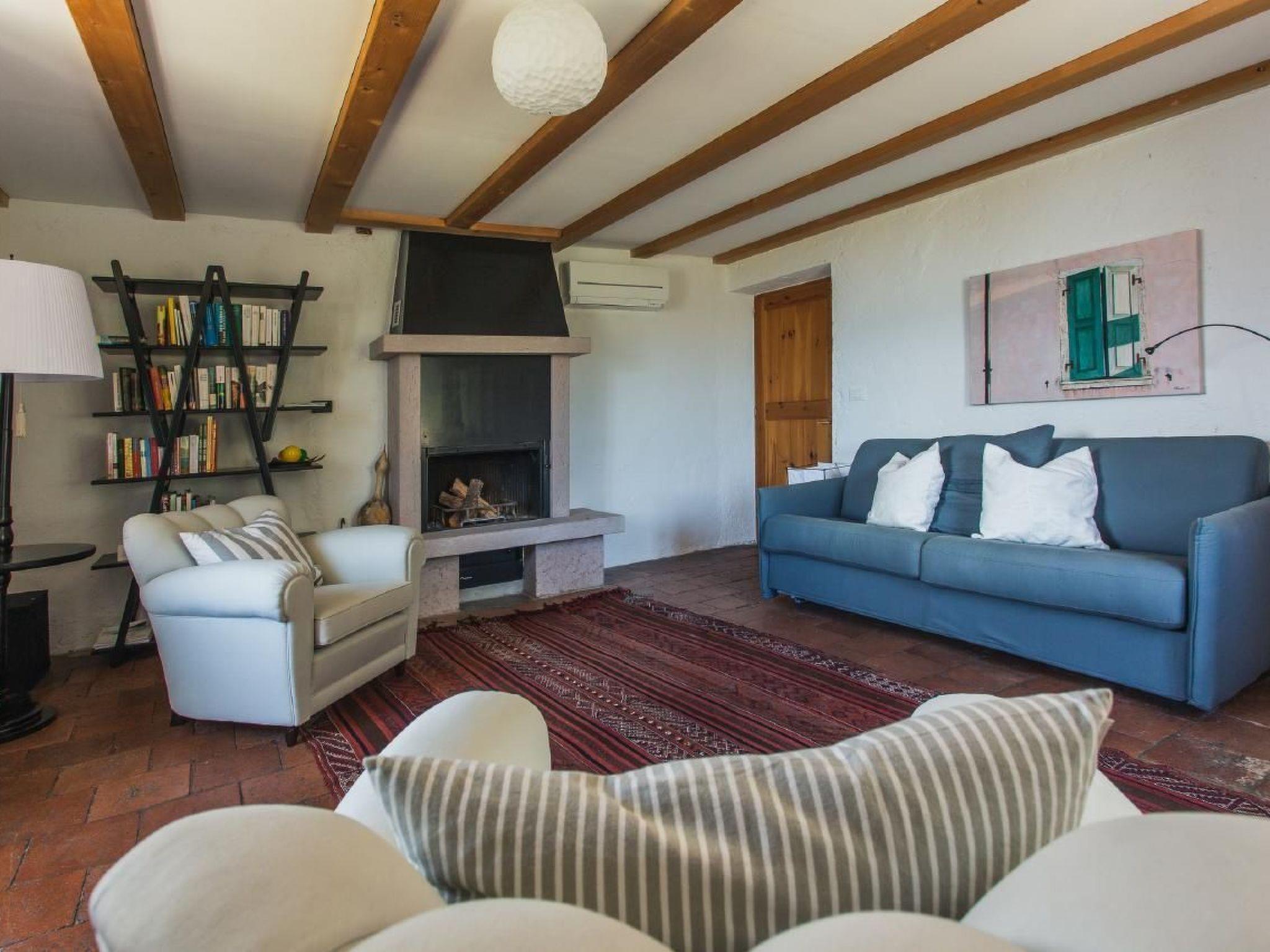 Eine Steintreppe führt von außen in das Kaminzimmer, das mit einem bequemen Schlafsofa ausgestattet ist. Der Boden mit den alten Terracotta-Fliesen vermittelt Gemütlichkeit.
