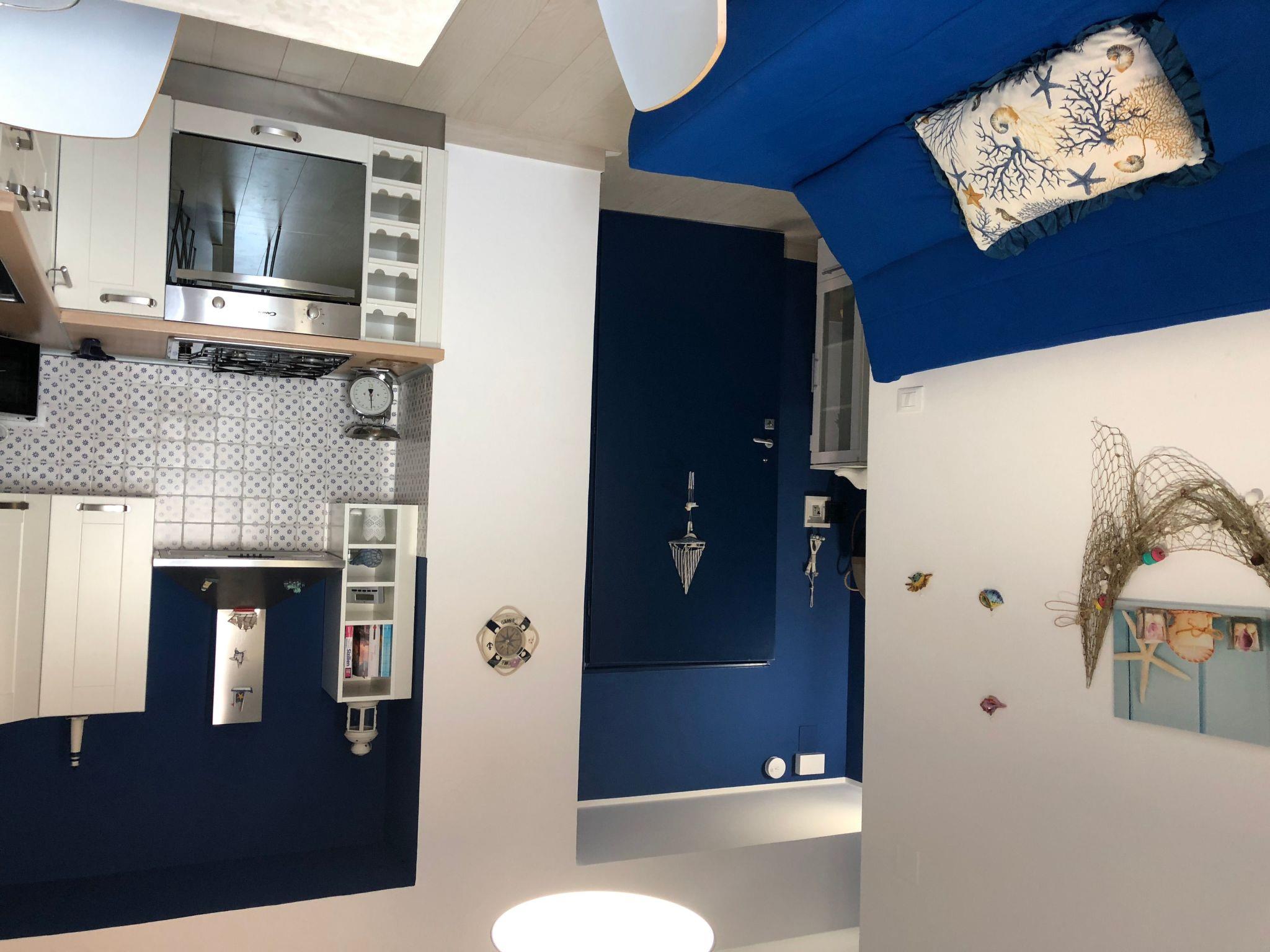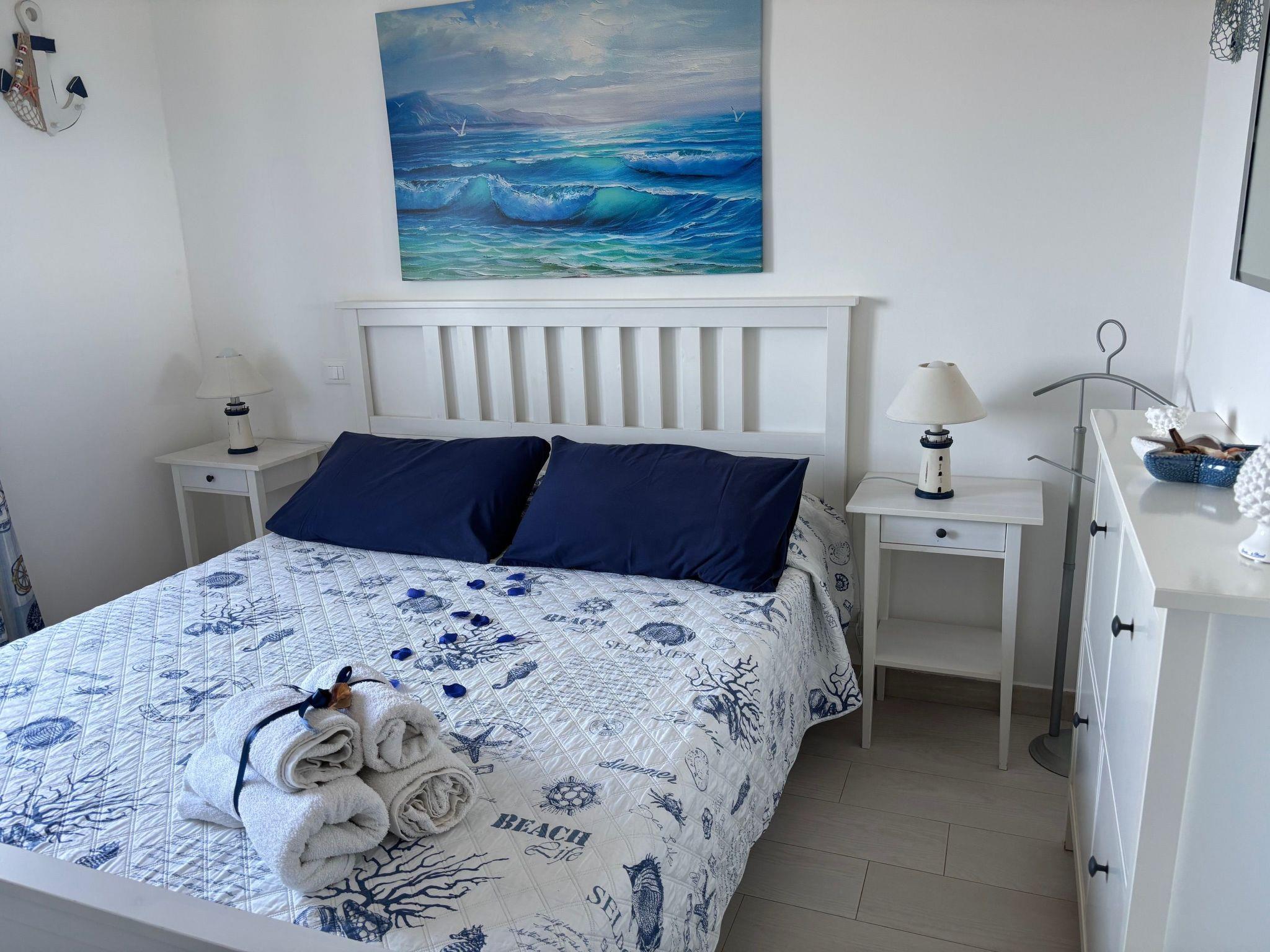 Das Innere ist so gestaltet, dass es maximalen Komfort und eine gemütliche Atmosphäre bietet: ein Schlafzimmer mit Doppelbett und allen Annehmlichkeiten, einschließlich eines großen Kleiderschranks und Schuhregals, und ein Wohnzimmer mit einem Schlafsofa für zwei Personen. Die voll ausgestattete Küche bietet einen spektakulären Blick auf das Meer. Das funktionelle und moderne Badezimmer ist mit Dusche, WC, Bidet, Waschbecken und Waschmaschine ausgestattet, um einen komfortablen Aufenthalt zu gewährleisten. Die Wohnung ist mit Klimaanlage, Satellitenfernsehen, einem Ventilator und allen notwendigen Haushaltsgeräten ausgestattet.