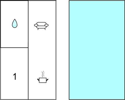 Badezimmer (nr. 1) - WC. Warmes und kaltes Wasser. Dusche