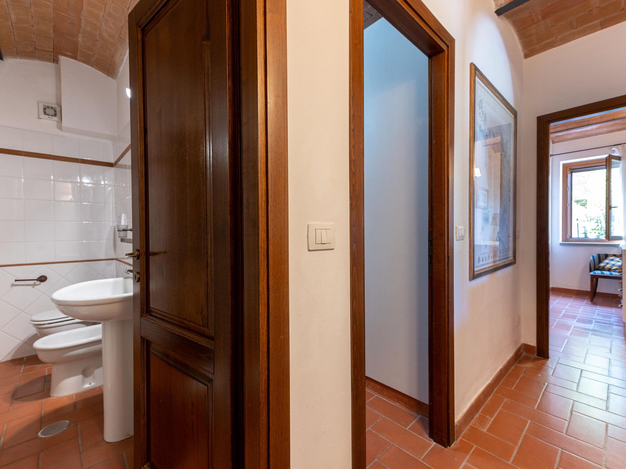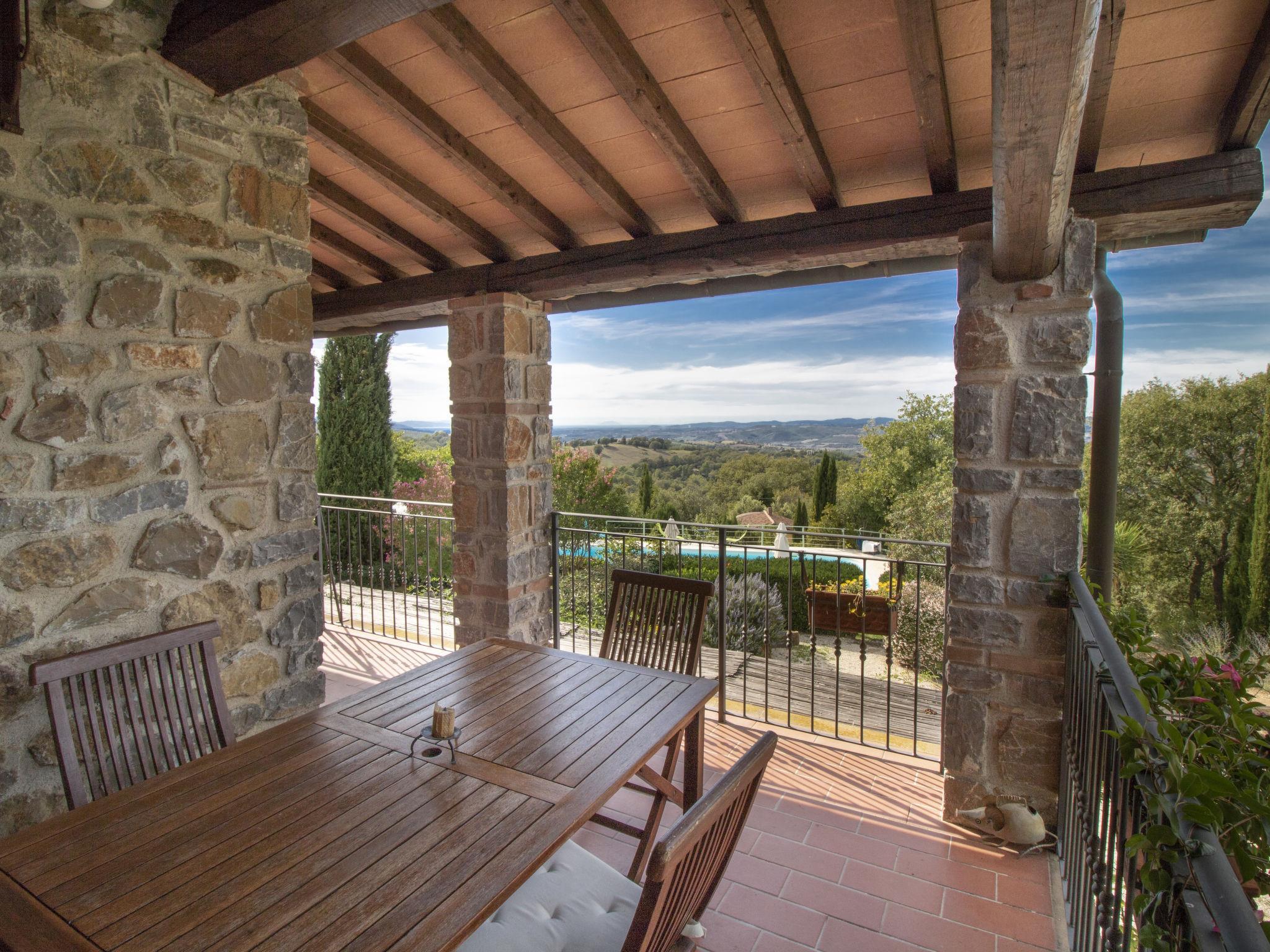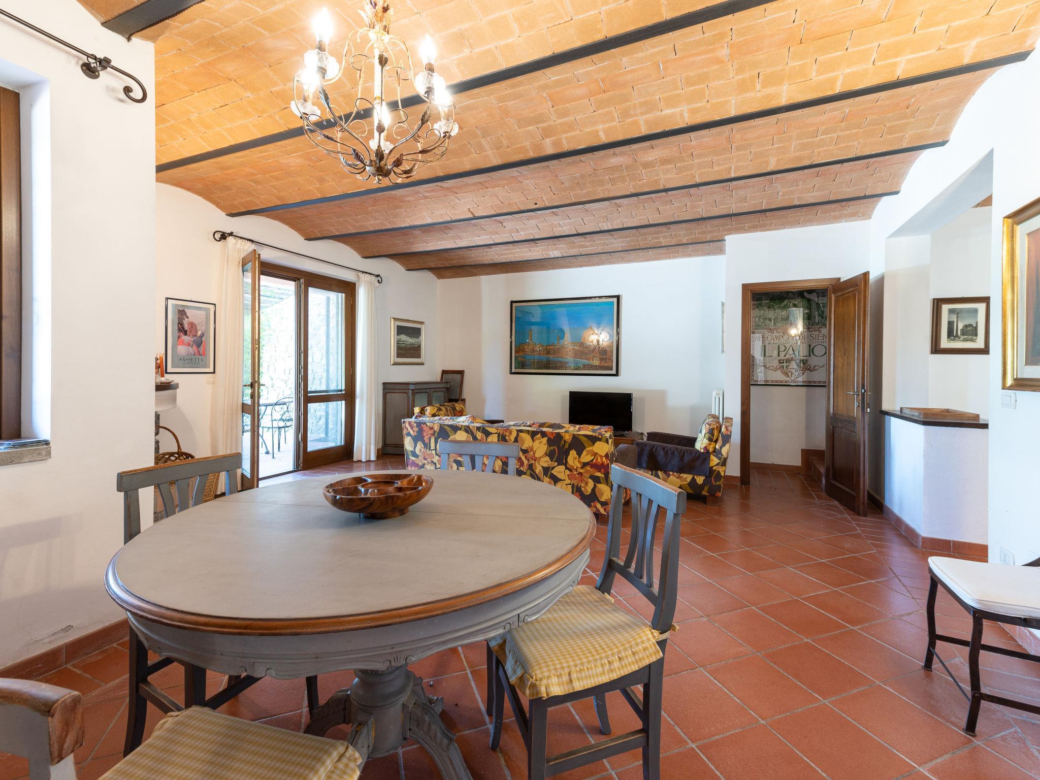 Das Anwesen liegt auf einem Hügel mit fantastischer Panoramasicht bis zum Meer und den Inseln Giglio und Montecristo (480 m.ü.M). Oberhalb der kleinen mittelalterlichen Dörfer Montemerano und Saturnia gelegen, bekannt für die warmen, natürlichen Wasserfälle und die Thermalbäder. Schöne, freistehende Villa 480 m.ü.M., auf 2 Stockwerken. Im Weiler Poderi, 7 km vom Zentrum von Saturnia, 3 km vom Zentrum von Montemerano, 3 km vom Zentrum von Manciano, ruhige, sonnige Lage auf einem Hügel, 50 m vom Waldrand, 3500 km vom Meer, 35 km vom Strand, im Grünen. Zur Alleinbenutzung: Grundstück 2'000 m2 (eingezäunt), wunderschöner Garten zum Entspannen, Schwimmbad (7 x 14 m, 110 - 170 cm tief, saisonale Verfügbarkeit: 01.Jun. - 30.Sep.) mit Innentreppe und Salzelektrolyse-Reinigungssystem. Aussendusche, Terrasse, Gartenmöbel, Grill, Poolpflege durch den Besitzer/Gärtner. Im Hause: Waschmaschine. Wohnungsreinigung möglich (extra). Parkplatz. Einkaufsgeschäft 2 km, Supermarkt 3 km, Restaurant 2 km, Bäckerei 2 km, Café 2 km, Fahrradverleih 4 km, Bushaltestelle 200 m, Bahnstation "Orbetello" 35 km, Sandstrand "Giannella - Feniglia" 37 km, Thermalbad "Saturnia" 8 km, Badesee "Bolsena" 46 km. Golfplatz (18 Loch) 8 km, Tennis 6 km, Reitstall 6 km, Wanderwege ab Haus 50 m. Nahe gelegene Sehenswürdigkeiten: Pitigliano 20 km, Scansano 25 km, Capalbio 30 km, Monte Argentario 35 km, Grosseto 55 km. Bekannte Seen in der Umgebung sind gut erreichbar: Bolsena 45 km. Bitte beachten: Fahrzeug empfohlen. Ein Teil des Hauses ist geschlossen und nicht bewohnt. Strände beim Monte Argentario und des Naturschutzparkes Parco d'Urcellina, 35 km. Mitten in der Maremma und nahe bei Etruskerausgrabungen gelegen. Siena und die übrige Toskana sind leicht erreichbar. Ausgestattete Terrasse mit Sicht auf das Tal, Garten mit Kräutern. Druckstrahlmassage in einer der Badewannen.