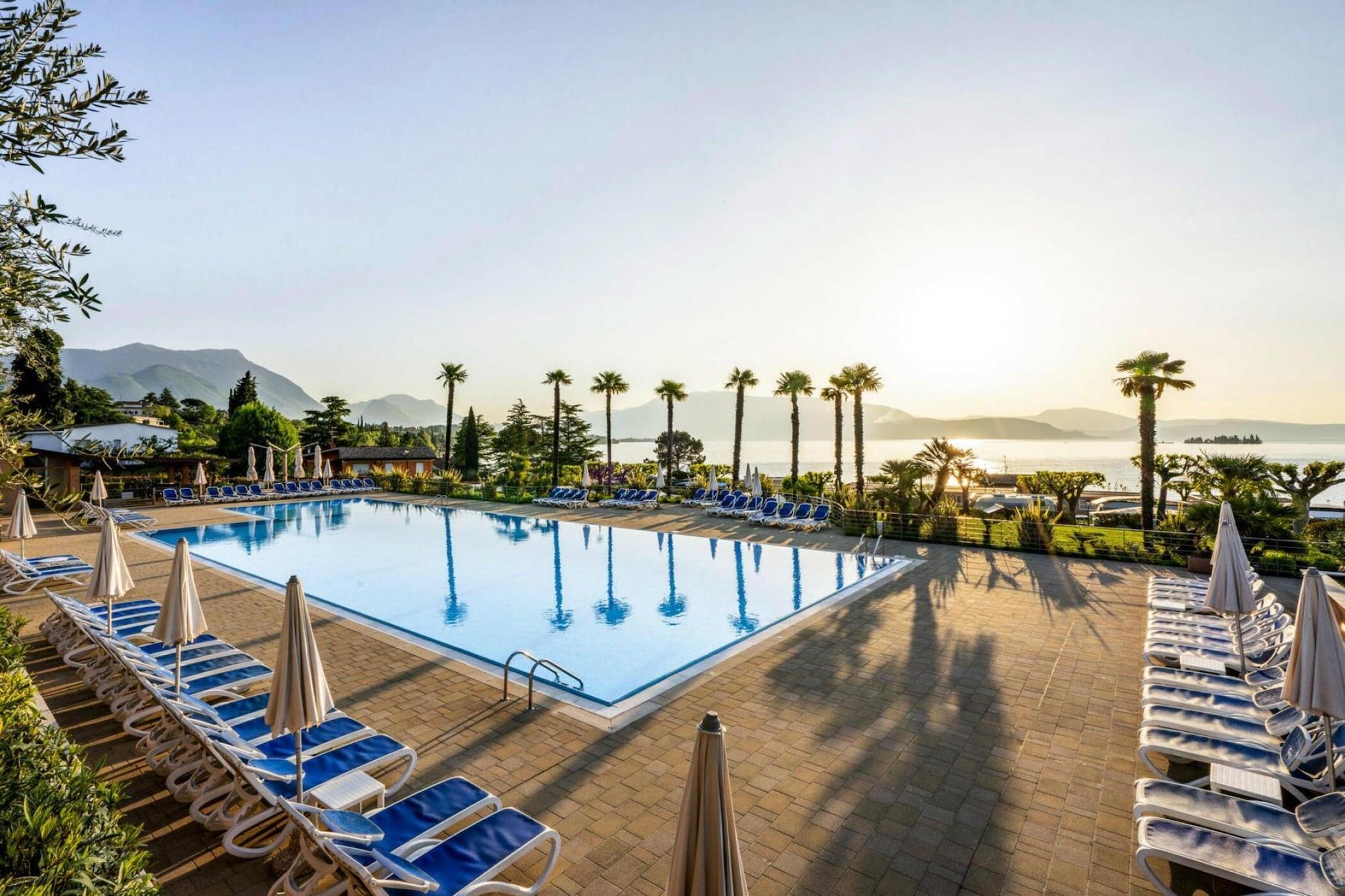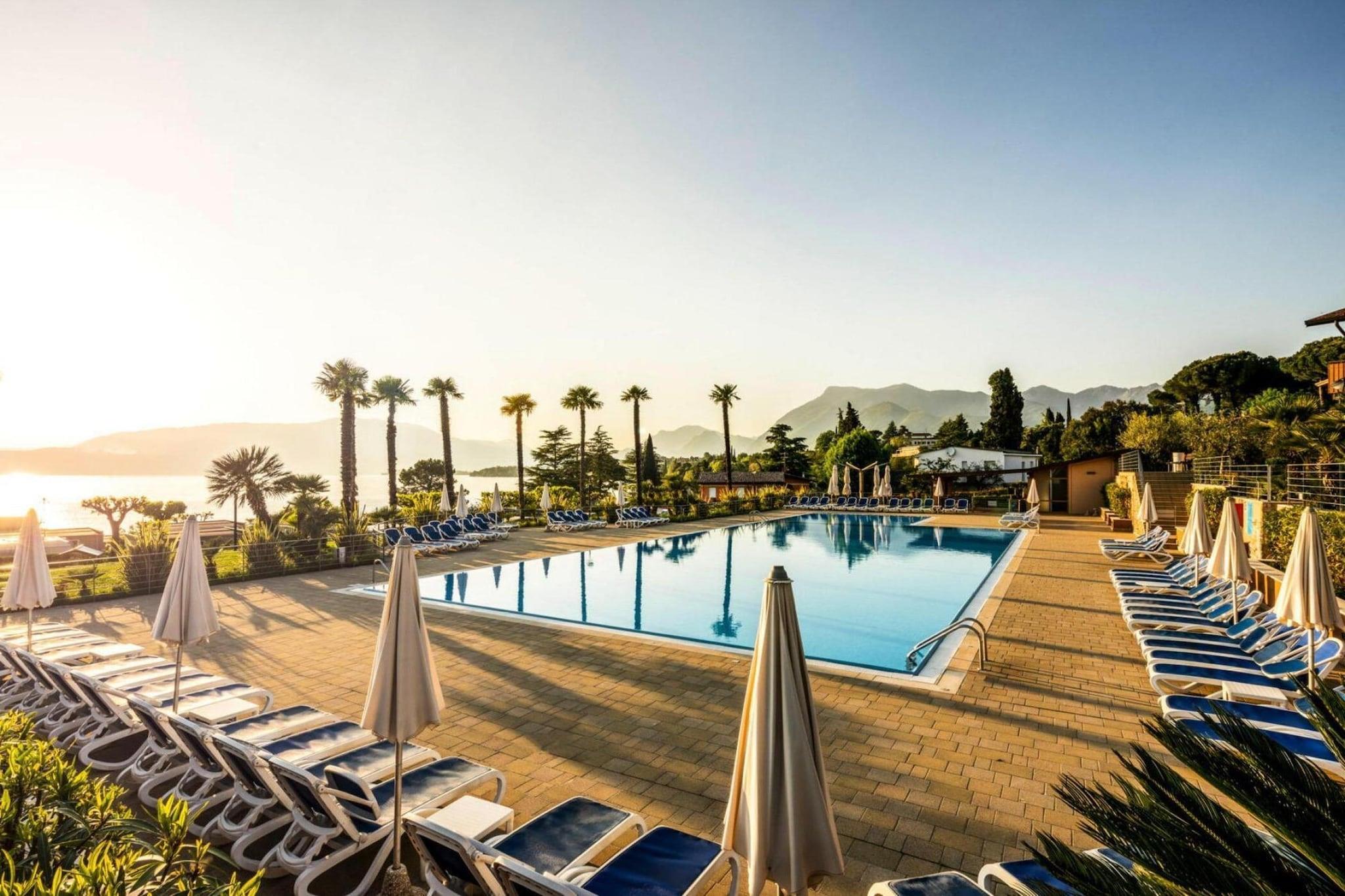 Direkt am Gardasee, am Rande der Bucht von Manerba: Die Appartements liegen in einer etwa 30.000 qm großen Grünanlage mit direktem Zugang zum See. Zur Anlage gehört ein räumlich geschickt abgetrennter Campingplatz mit Mobilhomes. Die Gemeinde Manerba besteht aus acht Dörfern, die inmitten von Olivenhainen und Weingärten liegen. Eine malerische Uferzone, der kleinen Hafen Porto Torchio und die schönen langen Strände machen den Charme des Ortes aus. Nicht weit, auf einem markanten 216 Meter hohen Felsblock bei Montinelle befindet sich die Burgruine Rocca die Manerba. Von hier haben Sie einen wunderschönen Blick über den Süden des Gardasees und bei guter Sicht sogar bis nach Torbole im Norden. Aktivitäten in der Nähe : Die Brescianer Region steht für hohe Berge und sanfte Hügel, mittelalterliche Dörfer und kleine lebendige Städte, lange Strände und hübsche Häfen. Erkunden Sie die Region, indem Sie der Strada dei Vini e dei Sapori del Garda folgen. Die ca. 70 Weingüter bieten allerlei kulinarische Köstlichkeiten an. Das bietet Ihre Ferienanlage: - 126 Wohneinheiten, - Rezeption, - Restaurant, Pizzeria, - Beachbar, - 1 Parkplatz je Einheit - Bar, Lounge Bar "Nasimi Beach" (geöffnet ca. Mai bis September) - Liegen, Sonnenschirm Gegen Gebühr: - Waschmaschine -Buoy 25EURO (05.07..-05.09. 30EURO) pro Tag -Boat trailer 7EURO pro Tag -zweiter Parkplatz 7EURO pro Tag -Elektoauto recharge 20EURO/recharge - SUP, Stand up paddle Aktivitäten: Gemeinschaftlicher Außenpool 300 qm (Geöffnet von Mitte April bis Ende September, je nach Wetterlage), Poolbar. Kinderbecken 49 qm. Gegen Gebühr: - Fahrradverleih (5EURO/2h), - Tischtennis. Hinweise: -Kreditkartenzahlung ab 100EURO möglich -Öffnungszeiten Rezeption: 8:30-12:00 und 14:30-18:30 -auf Anfrage ist ein glutenfreies und vegetarisches Menü buchbar -am Anreisetag bekommen Sie eine Einweisung für die Heizung/Klimaanlage und das Wlan Passwort -auf Anfrage für Personen mit eingeschränkter Mobilität geeignet Im Apartment finden Sie Handtücher, 1 Set pro Person Bei der Ankunft erhalten sie eine Fernbedienung zur Regulierung der Heizung oder Klimaanlage sowie den Code für WLAN. Die auf dem Campingplatz ankommenden Personen müssen mit den in der Buchung genannten Personen identisch sein. Personen, die bei der Reservierung nicht angegeben sind, müssen vor Ort 40,- EURO pro Tag bezahlen, auch wenn es sich nur um einen Personenersatz handelt. Es werden keine zusätzlichen Personen außer den in der Reservierung angegebenen Personen akzeptiert, außer gegen Zahlung von 40,- EURO pro Person/Tag (vor Ort).
