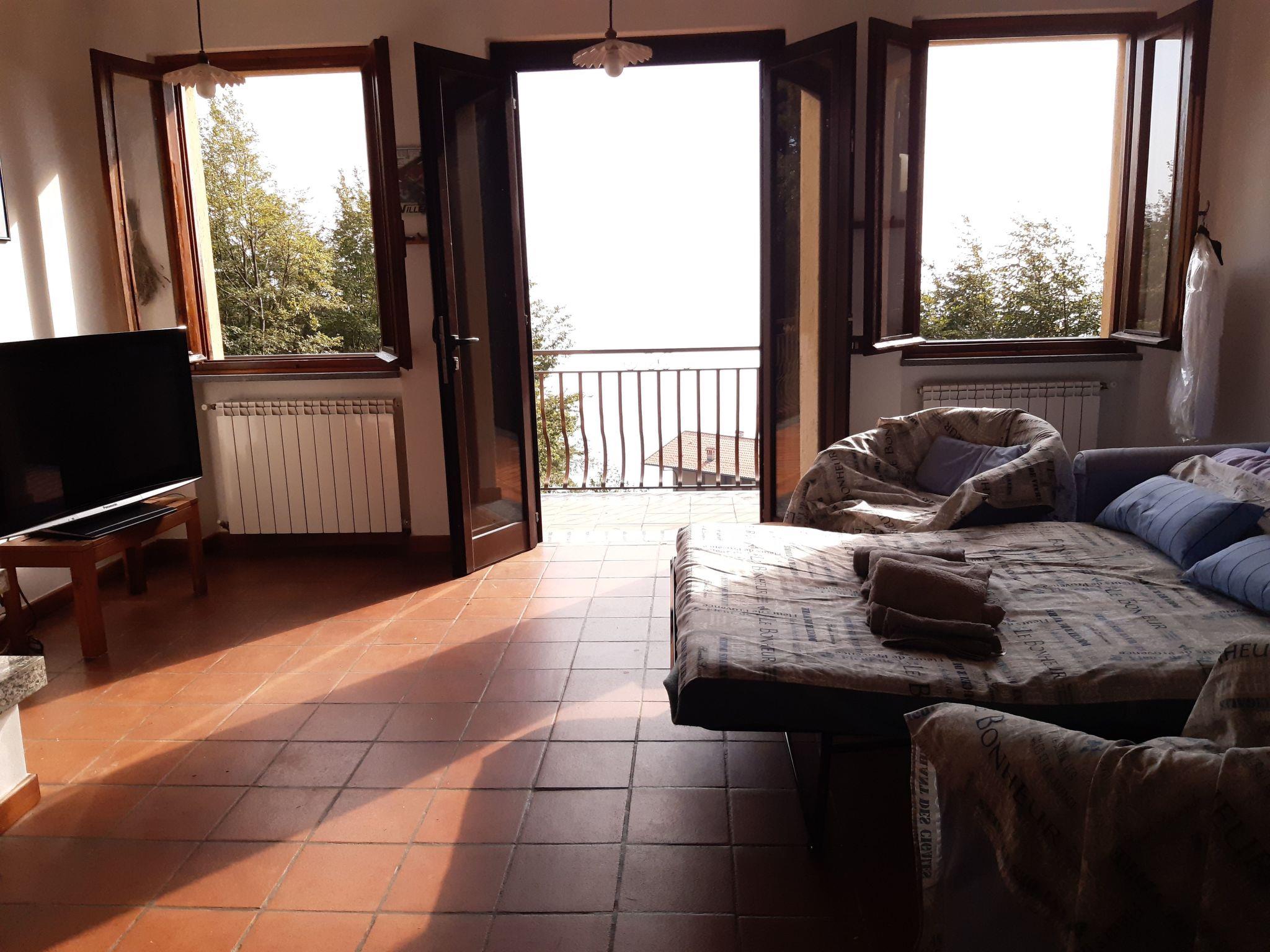 Wohnung im Erdgeschoss: großes Wohnzimmer mit Kamin, voll ausgestattete Küche, Essecke, zwei Schlafzimmer und ein Bad, ideal für Familien oder Gruppen. Klimaanlage auf Anfrage und gegen Gebühr vor Ort. Terrasse und Veranda.