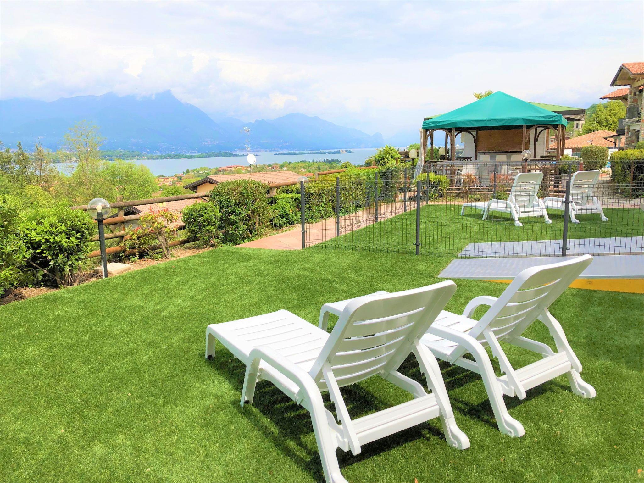 Das Highlight ist zweifellos der große Garten mit Blick auf den See, der mit Gartenmöbeln und Sonnenliegen ausgestattet ist, wo Sie sich inmitten der Natur entspannen können. Die Wohnung, die sich im Erdgeschoss befindet, ist leicht zugänglich und bietet einen privaten Swimmingpool mit Aussicht, der Momente der Entspannung unter dem blauen Himmel garantiert.