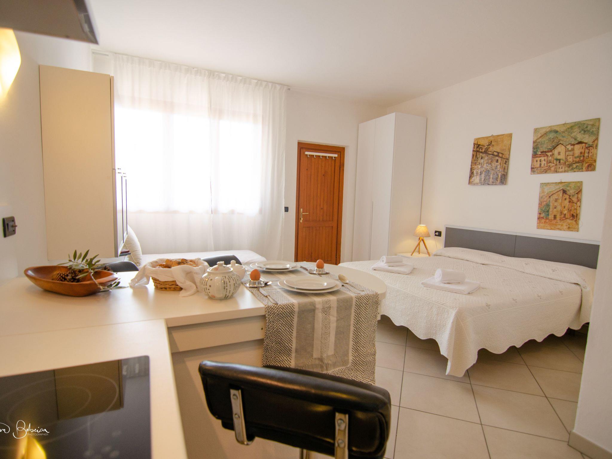 Studios Doppelbett und ein mögliches Einzelbett, Bad, ausgestattete Kochnische, Terrasse mit Tisch und Stühlen, überdachter Parkplatz, Heizung oder Klimaanlage, Safe. Sie bieten Platz für bis zu 3 Personen.