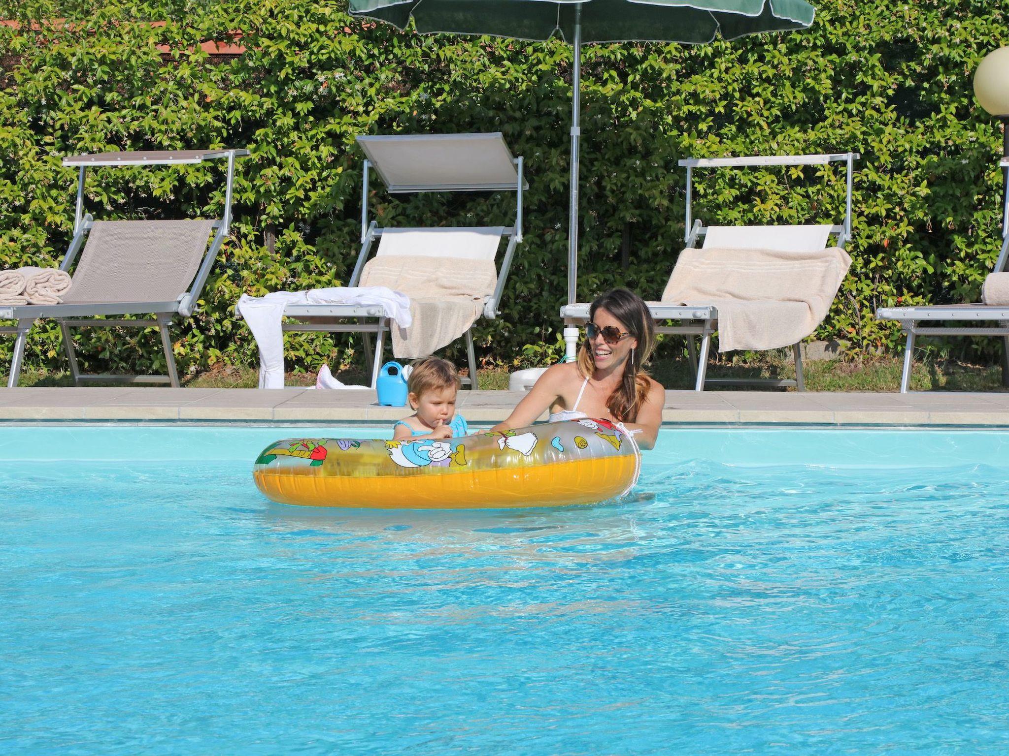Der Garten zum Entspannen ist sehr groß, komplett eingezäunt und mit vielen Arten von aromatischen Pflanzen, das Schwimmbad ist durch ein Tor geschützt, hat eine beheizte Dusche und ist mit einer Sonnenterrasse mit zwei Liegestühlen pro Wohnung ausgestattet. Es gibt einen neuen, videoüberwachten Fahrradabstellraum, der den Gästen zur Verfügung steht.