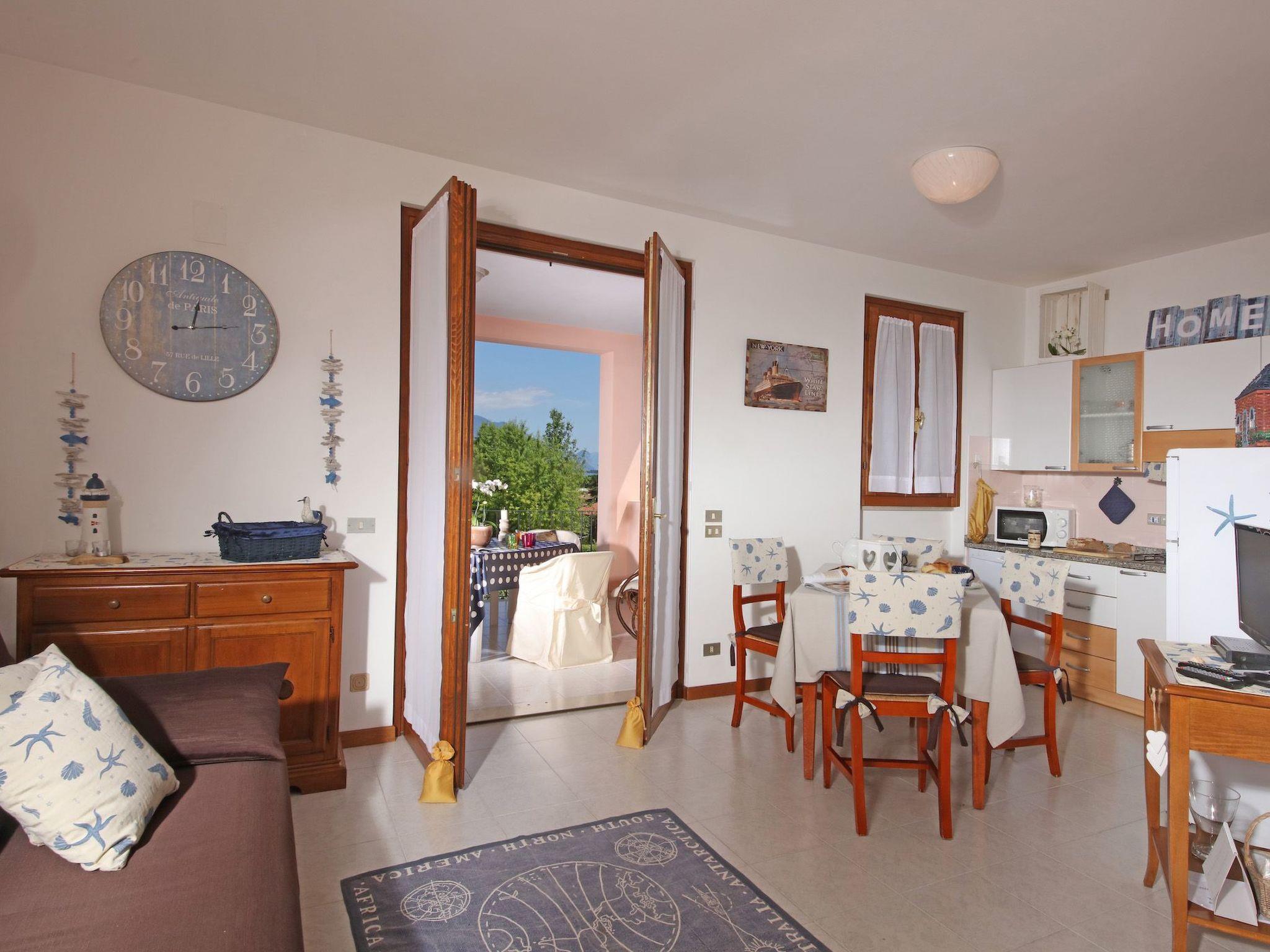 In einer kleinen Residenz, umgeben von Olivenbäumen, mit Schwimmbad und Garten, bietet die kleine Residenz "Corte degli Olivi Residence" 4-Bett-Wohnungen im Landhaus- und Shabby-Stil. Vollständig möbliert, hell und autonom mit gemütlichem Eingang, Wohnzimmer und geräumigen Zimmern, Safe, Bad mit Dusche, schattigen Loggien mit Kamin zum Kochen. Interner und reservierter Parkplatz, ausgestattetes Solarium. Die besondere familiäre Führung der Residenz hat schon immer für einen angenehmen Urlaub wie in einem Privathaushalt gesorgt. Die Rezeption ist mit allen lokalen Informationen und touristischen Auskünften ausgestattet. Das Haus wurde vor kurzem Fahrradfreundlich gestaltet und liegt in der Nähe des Sees, des historischen Ortskerns, inmitten von Wegen für entspannende Spaziergänge in den Hügeln mit Möglichkeiten für Golf, Tennis, Reiten, Bootsfahrten, Bootsverleih oder Jetskis in der Umgebung. Das Gebiet liegt im Herzen der Valtenesi, die in Bezug auf die Wein- und Olivenölrouten und die Aromen der lokalen Küche der Toskana ähneln, und bietet den Gästen aufgrund der Nähe zu bekannten Orten wie Salò, Desenzano und Sirmione ausgezeichnete Restaurants und viele kulturelle oder sportliche Attraktionen.