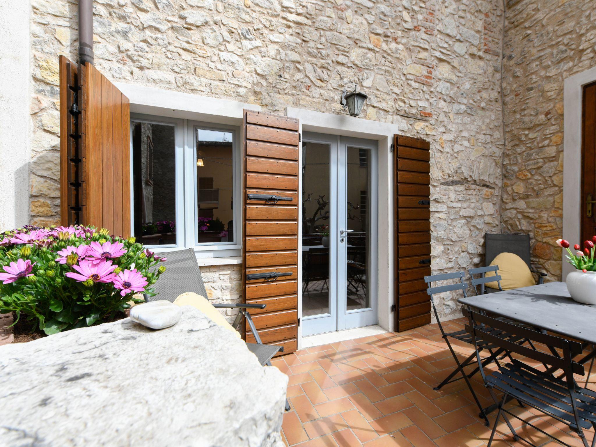 Der sonnige Balkon mit seinem üppigen Feigenbaum ist der ideale Ort, um Momente der Ruhe zu genießen und die bezaubernden Mauern des Hofes zu bewundern. Das Haus fügt sich harmonisch in die ländliche Umgebung ein und verspricht erholsame Tage in der Natur und Ruhe.