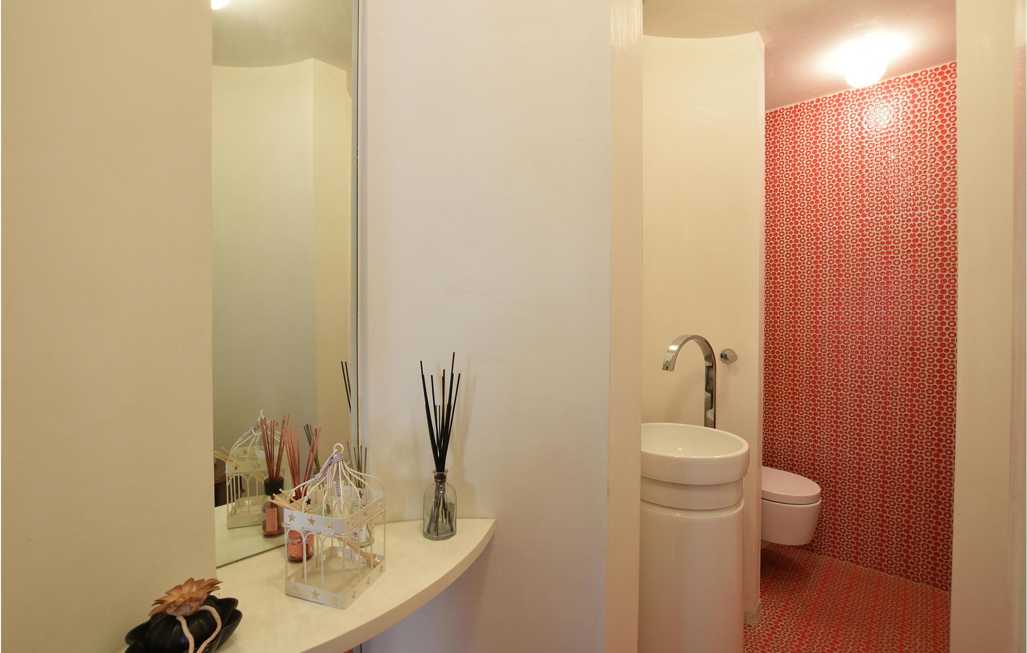 Zur Wohnung gehört ein kleiner Innenhof, wo Sie morgens einen frisch gebrühten Espresso trinken und nachmittags eine eisgekühlte Erfrischung unter dem Parasol genießen können.