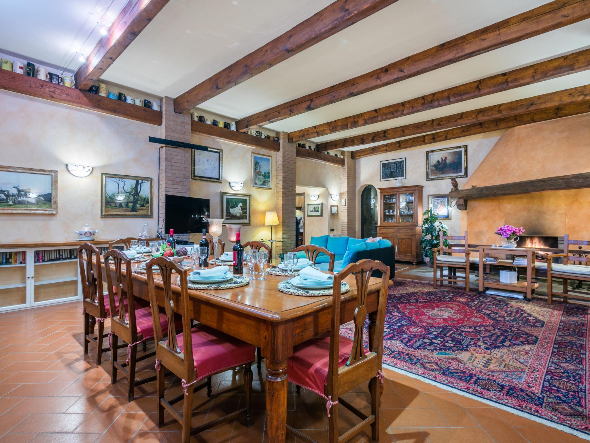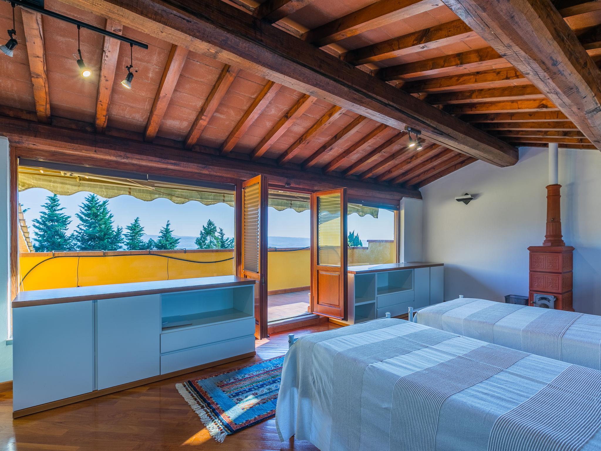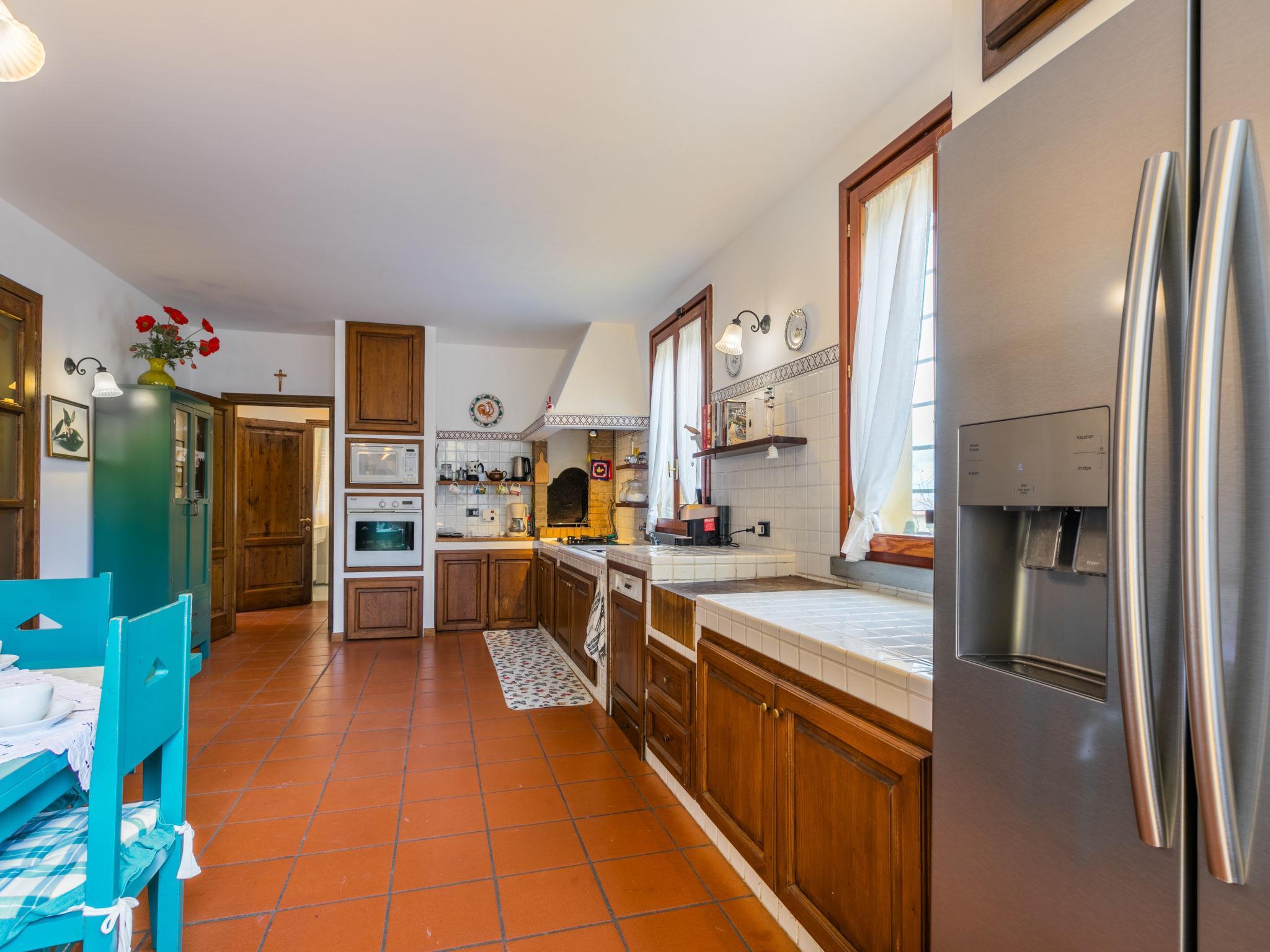 "Villa Silvana", 9-Zimmer-Villa 350 m2 auf 4 Stockwerken. Geräumig, geschmackvoll und stilvoll eingerichtet: offener Eingang. Offenes Esszimmer. Offenes grosses Wohnzimmer mit offenem Kamin und TV (Flachbildschirm). Ausgang zur Terrasse, zum Schwimmbad. Grosse Küche (Backofen, Geschirrspüler, 4 Induktionskochplatten, Gasherd, 2 Flammen, Toaster, Wasserkocher, Mikrowelle, Grill, elektrische Kaffeemaschine) mit Esstisch. Ausgang zur Terrasse. Dusche/Bidet/WC. Unteres Geschoss: offenes grosses Esszimmer. Offenes grosses Wohn-/Esszimmer mit offenem Kamin. Spielzimmer. Grosse Küche (Backofen, Geschirrspüler, Gasherd, 6 Flammen, Toaster, Wasserkocher, Mikrowelle, Tiefkühler, elektrische Kaffeemaschine). Dusche/Bidet/WC. Obergeschoss: 2 Doppelzimmer. 1 grosses Zimmer mit begehbarem Kleiderschrank mit 2 Betten (120 cm), Bad/Dusche/Bidet/WC und TV (Flachbildschirm), Klimaanlage. Ausgang zum Balkon. 2 Duschen/Bidet/WC. 2. Obergeschoss: 1 abgeschrägtes Doppelzimmer mit Panoramafenster. Ausgang zum Balkon. G-Heizung, Klimaanlage. Parkettboden, Natursteinboden. 2 Terrassen überdacht, Gartensitzplatz, Rasen. Terrassenmöbel, Gartengrill, Liegestühle, Loggia, Sitzplatz, Abstellkammer. Herrliche Panoramasicht auf die Landschaft. Zur Verfügung: Waschmaschine, Wäschetrockner, Bügeleisen, Fliegengitter, Kinderhochstuhl, Babybett bis 2 Jahre, Haartrockner. Internet (Wireless LAN, gratis). Parkplatz (eingezäunt, 4 Autos). Bitte beachten: geeignet für Familien. Nichtraucher-Unterkunft. Eigener Eingang, Rauchmelder, Feuerlöscher. Der ausgeschriebene Pool ist zur alleinigen Nutzung. IT048054C26OX2COPC