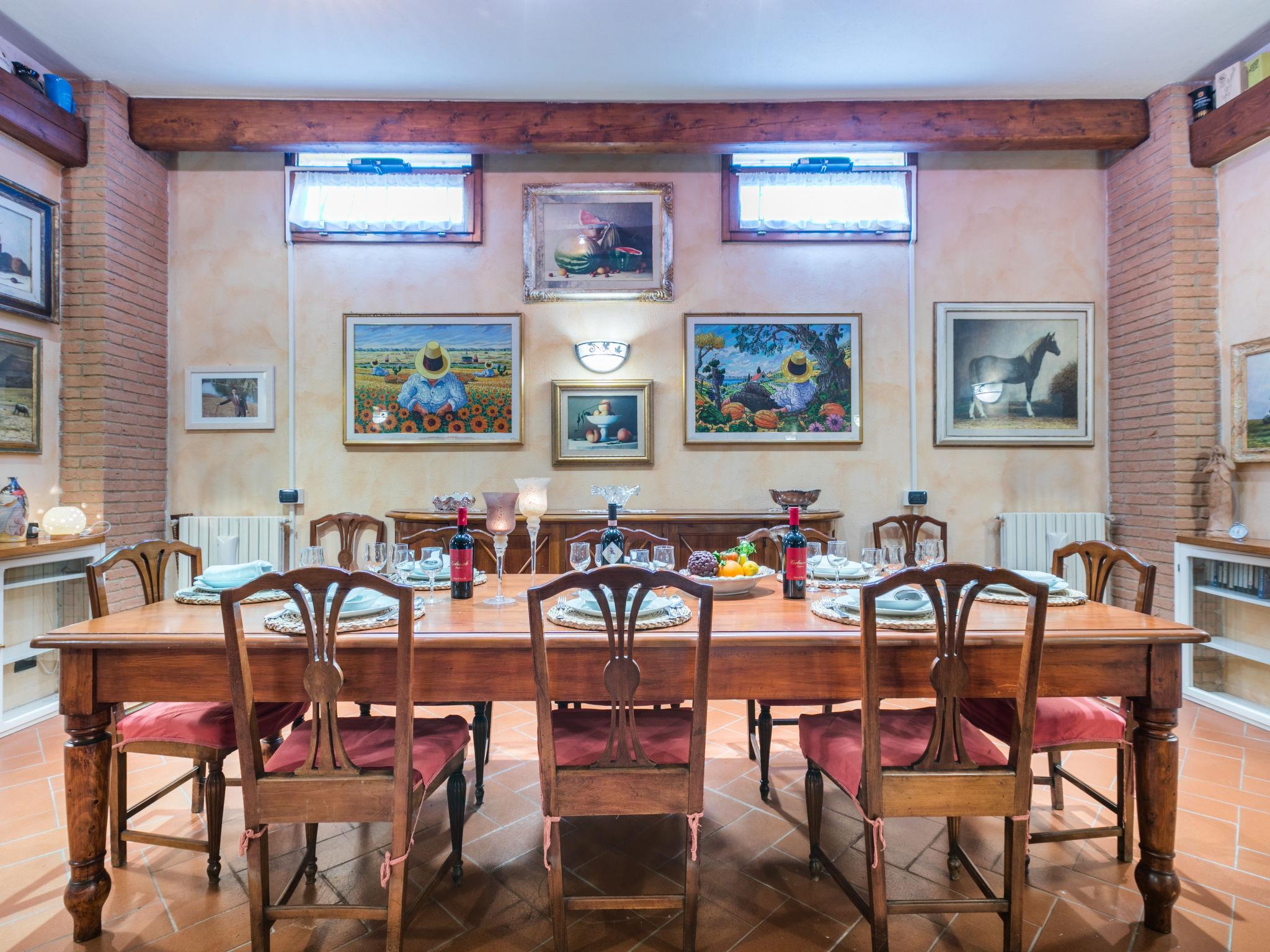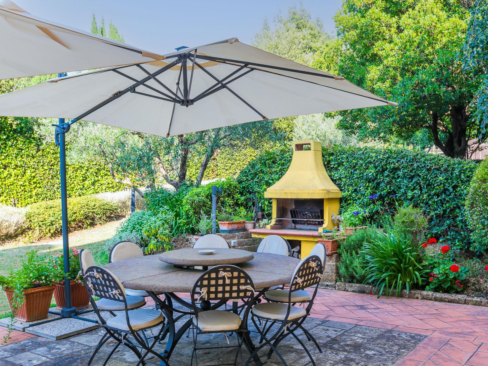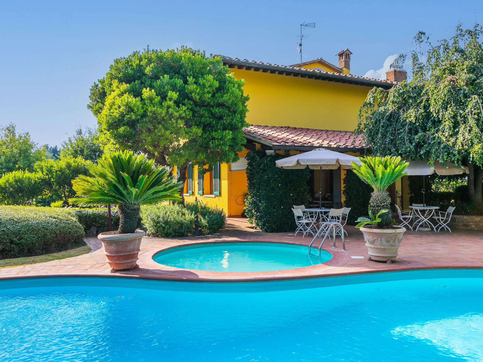 Marcialla 3 km von Tavarnelle Val di Pesa: Sehr schönes, komfortables Einfamilienhaus "Villa Silvana", auf 3 Stockwerken. 800 m vom Zentrum von Marcialla, alleinstehende Lage in einem Wohnquartier. Zur Alleinbenutzung: grosser, gepflegter Garten (eingezäunt) mit Pflanzen und Bäumen, Schwimmbad (5 x 10 m, 100 - 250 cm tief, saisonale Verfügbarkeit: 20.Apr. - 15.Okt.). Aussendusche, Sprudelbad, Laube, Pergola, Terrasse, Gartenmöbel, Grill, Poolpflege durch den Besitzer/Gärtner. Im Hause: Fitnessraum, Sprudelbad (alles inkl.). Wäschewechsel (zusätzlich extra). Handtuchwechsel (zusätzlich extra). Wohnungsreinigung möglich (extra). Haushaltshilfe möglich (extra). Koch möglich (extra). Frühstück und Halbpension möglich (extra). Parkplatz beim Haus, Einzelgarage beim Haus. Einkaufsgeschäft, Lebensmittelgeschäft 800 m, Supermarkt 3 km, Restaurant, Bäckerei 800 m, Bushaltestelle 100 m, Bahnstation "Zambra" 13 km, Sandstrand "Cecina Mare" 90 km. Golfplatz (14 Loch) 30 km. Nahe gelegene Sehenswürdigkeiten: Certaldo 11 km, San Gimignano 22 km, Firenze 36 km, Siena 46 km, Volterra 47 km, Pisa 86 km. Bitte beachten: Babyausstattung (inkl.). Geeignet für Events. Es ist möglich einen Kochkurs zu buchen. Der Besitzer akzeptiert keine Jugendgruppen.