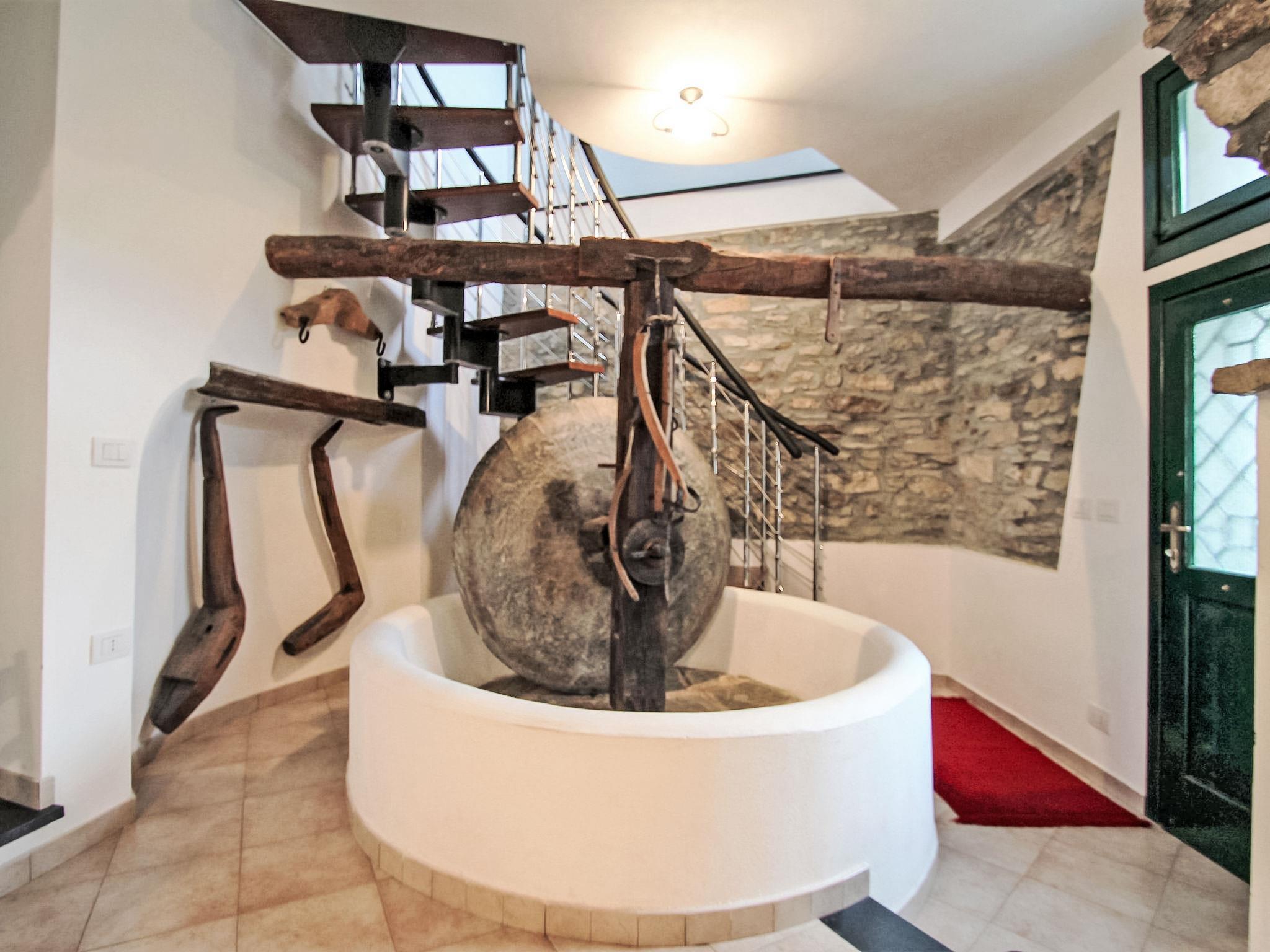 "Frantoio", 5-Zimmer-Wohnung 100 m2 auf 2 Stockwerken. Schön eingerichtet: Eingang. Wohnzimmer mit 1 Diwanbett. Ausgang zum Gartensitzplatz. Bad/Dusche/Bidet/WC. Boiler (80 Liter). Keine Heizmöglichkeit. Obergeschoss: (Wendeltreppe) Esszimmer. Kleiner Salon mit Sat-TV. 1 Zimmer mit 1 Bett und 1 Ausziehbett. 1 Doppelzimmer. Kochnische (4 Kochplatten, Backofen, Tiefkühler). Keine Heizmöglichkeit. Gartensitzplatz 30 m2. Terrassenmöbel, Gartengrill. Panoramasicht auf das Tal. Zur Verfügung: Waschmaschine. Parkplatz in 50 m. Im Wohnzimmer befindet sich eine antike Ölmühle aus Stein (16.Jh.). IT009059C2ZC3R6ULD