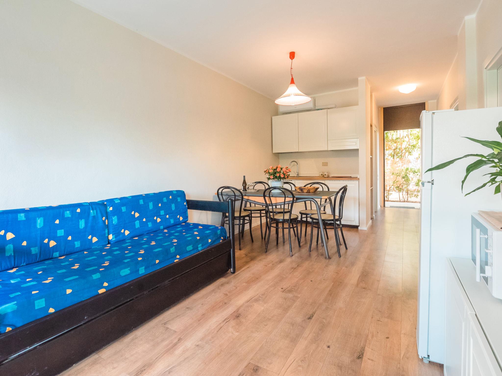 "Bilo Standard Garden", 2-Zimmer-Wohnung 38 m2, im Erdgeschoss. Schön und modern eingerichtet: Wohn-/Schlafzimmer mit 1 Doppeldiwanbett, Esstisch, Digital-TV, Flachbildschirm, E-Heizung und Klimaanlage. Ausgang zum Garten, zur Veranda. 1 Doppelzimmer. Offene Küche (4 Induktionskochplatten, Mikrowelle, elektrische Kaffeemaschine, Kapseln für die Kaffeemaschine (Nescafe Dolce Gusto) extra). Dusche/Bidet/WC. Balkon 7 m2, kleiner Gartensitzplatz. Balkonmöbel. Sicht auf das Schwimmbad. Zur Verfügung: Kinderhochstuhl, Babybett bis 2 Jahre (extra), Haartrockner. Internet (Wireless LAN, gratis). Bitte beachten: Feuerlöscher. IT049001B4AEH7IC3H