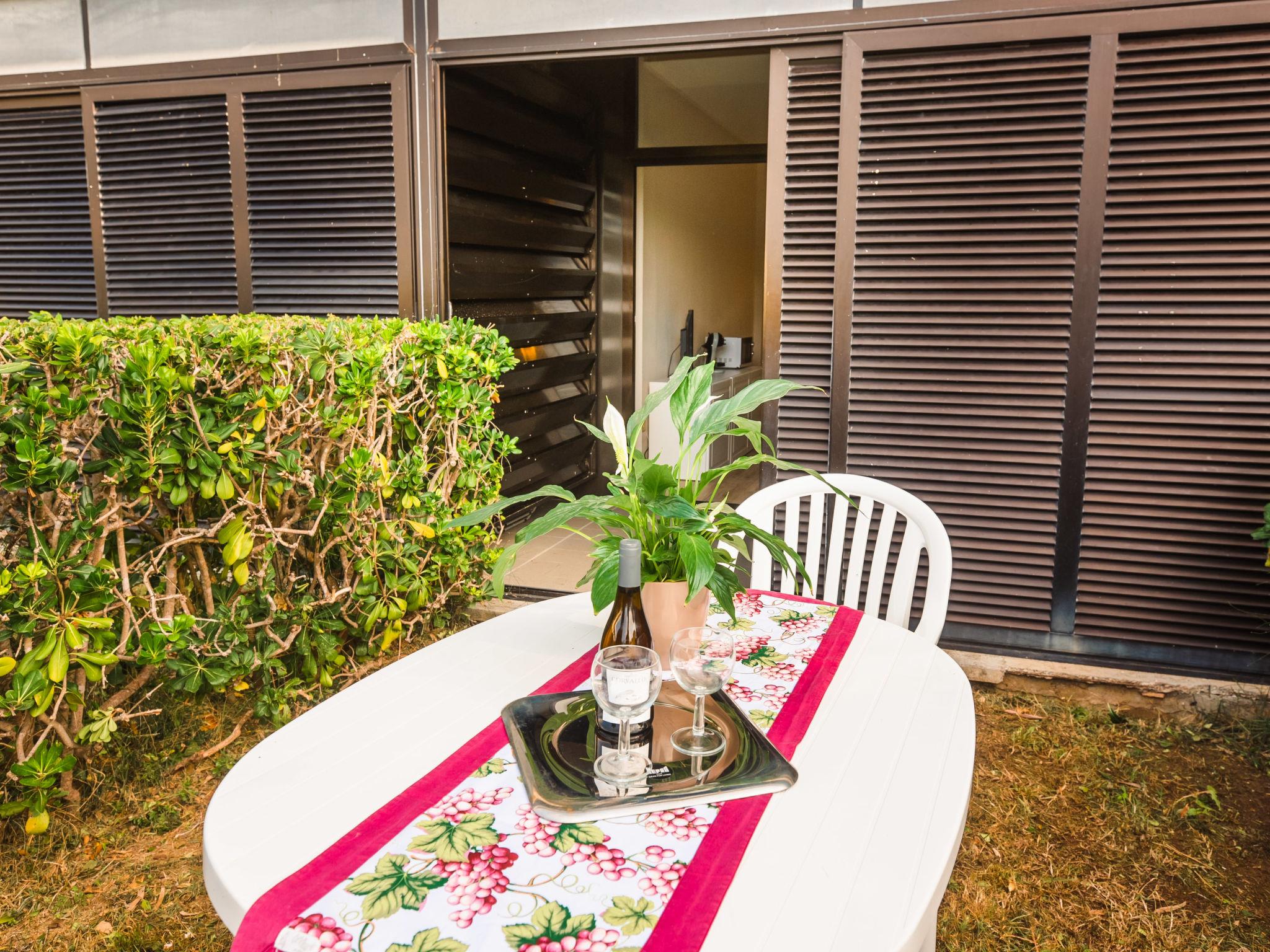 "Mono Garden", 1-Zimmer-Wohnung 25 m2, im Erdgeschoss. Renoviert im Jahre 2021, schön und modern eingerichtet: Wohn-/Schlafzimmer mit 1 Doppelbett, Esstisch, Digital-TV, Flachbildschirm, E-Heizung und Klimaanlage. Ausgang zum Garten, zur Veranda. Kochnische (4 Induktionskochplatten, Mikrowelle, elektrische Kaffeemaschine, Kapseln für die Kaffeemaschine (Nescafe Dolce Gusto) extra). Dusche/Bidet/WC. Terrasse 7 m2, überdacht, kleiner Gartensitzplatz. Terrassenmöbel. Sicht auf das Schwimmbad. Zur Verfügung: Kinderhochstuhl, Babybett bis 2 Jahre (extra), Haartrockner. Internet (Wireless LAN, gratis). IT049001B4AEH7IC3H