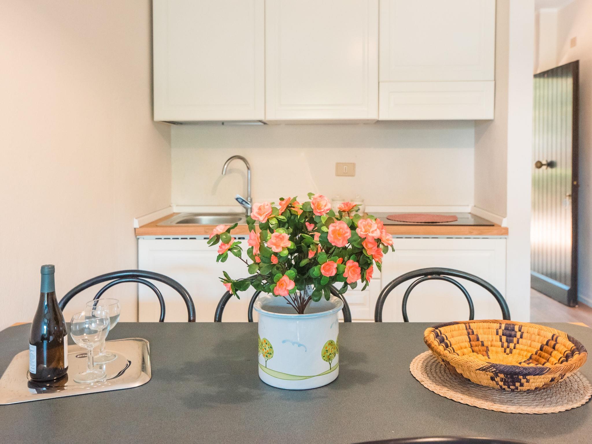 "Bilo Standard Garden", 2-Zimmer-Wohnung 38 m2, im Erdgeschoss. Schön und modern eingerichtet: Wohn-/Schlafzimmer mit 1 Doppeldiwanbett, Esstisch, Digital-TV, Flachbildschirm, E-Heizung und Klimaanlage. Ausgang zum Garten, zur Veranda. 1 Doppelzimmer. Offene Küche (4 Induktionskochplatten, Mikrowelle, elektrische Kaffeemaschine, Kapseln für die Kaffeemaschine (Nescafe Dolce Gusto) extra). Dusche/Bidet/WC. Balkon 7 m2, kleiner Gartensitzplatz. Balkonmöbel. Sicht auf das Schwimmbad. Zur Verfügung: Kinderhochstuhl, Babybett bis 2 Jahre (extra), Haartrockner. Internet (Wireless LAN, gratis). Bitte beachten: Feuerlöscher. IT049001B4AEH7IC3H
