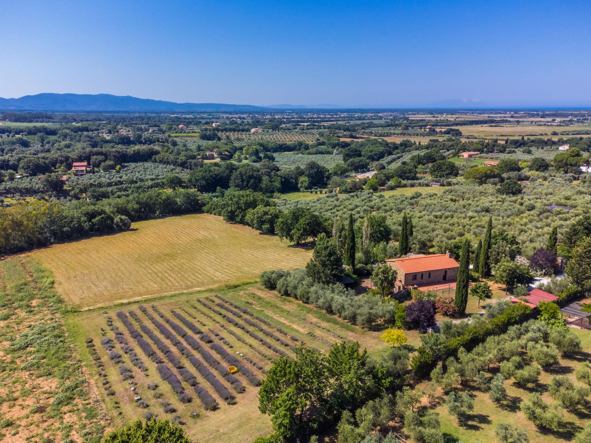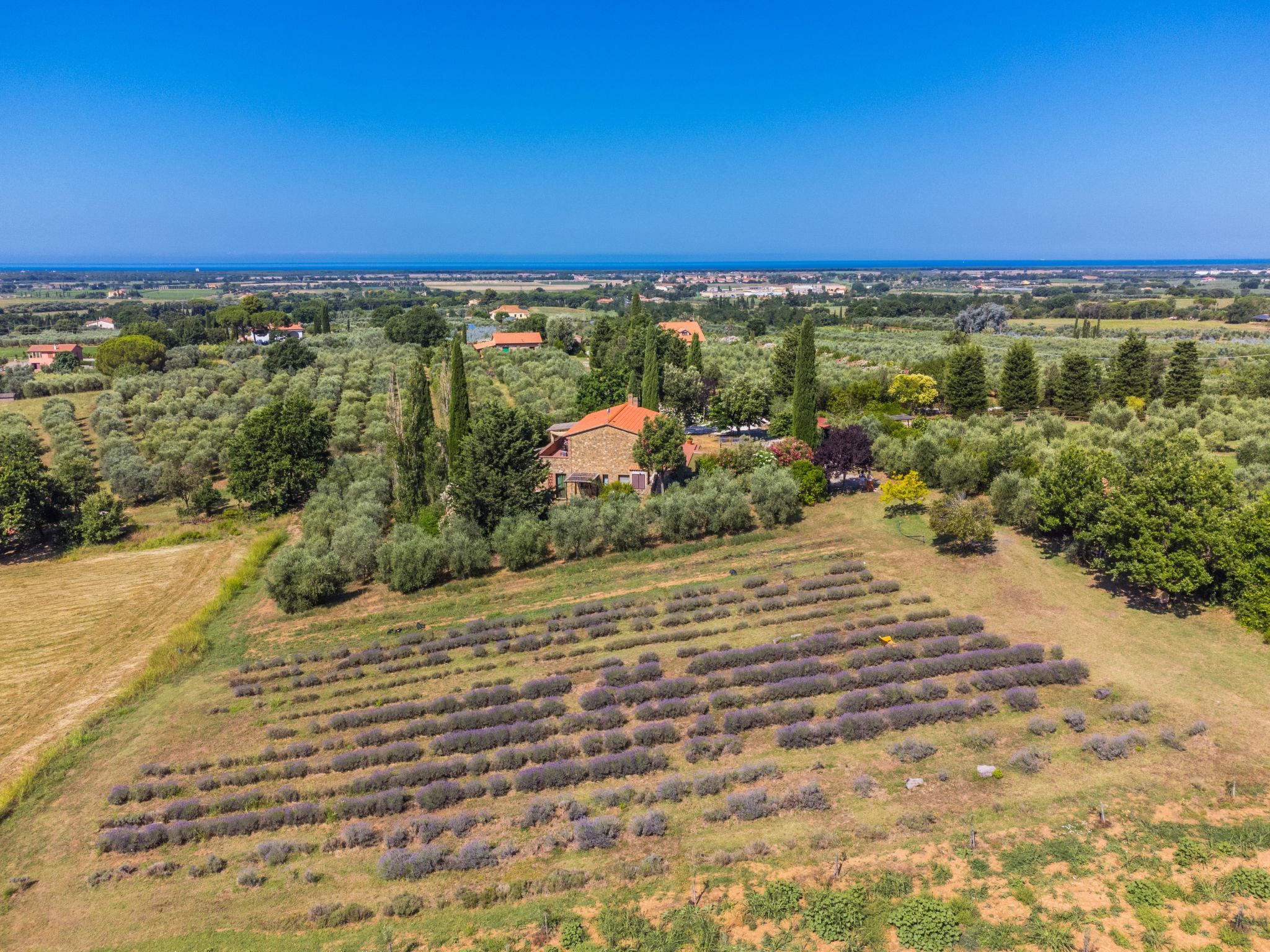 Eingebettet in Olivenhaine und Lavendelfelder steht das schöne rustikale Landhaus mit 3 völlig separaten Wohnungen nicht weit von der Küste (7,5km) . Ein idealer Ort zum relaxen und geniessen. Dreifamilienhaus auf 2 Stockwerken, umgeben von Bäumen und Feldern. 3.5 km vom Zentrum von Bibbona, 9 km vom Zentrum von Cecina, alleinstehende, ruhige Lage, 7.5 km vom Meer. Zur Mitbenutzung: naturbelassenes Grundstück, Garten (nicht eingezäunt). In der Anlage: Empfang, Restaurant. Frühstück auf Anfrage (extra). Zufahrt (1.2 km Naturweg). Parkplatz (überdacht) beim Haus. Lebensmittelgeschäft 3.5 km, Supermarkt 8 km, Bäckerei 3.5 km, Bushaltestelle 2 km, Sandstrand "Marina di Cecina" 7.5 km, Thermalbad "Calidario" 36 km. Jacht-Hafen 25 km. Nahe gelegene Sehenswürdigkeiten: Bolgheri 8 km, Pisa 65 km, Livorno 45 km, Firenze 120 km. Auf dem Grundstück Tierhaltung. Ab Hof Verkauf von bäuerlichen Produkten.