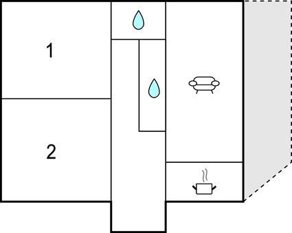 Badezimmer 9m2 (nr. 1) - WC. Warmes und kaltes Wasser. Dusche