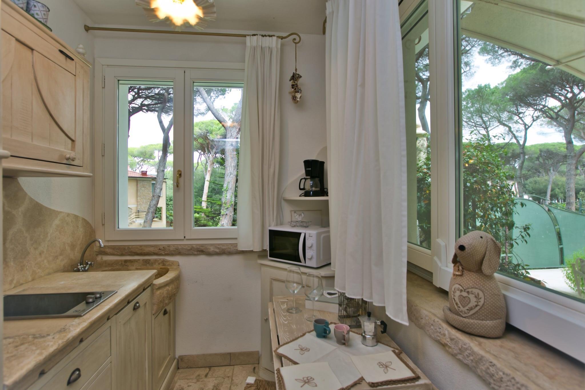 Dieses Ferienhaus für vier Gäste bietet einen erholsamen Rückzugsort in Marina di Castagneto Carducci, nur wenige Schritte vom Strand entfernt. Mit kostenlosem WLAN, einer privaten Terrasse und modernen Annehmlichkeiten ist diese gemütliche Unterkunft ideal für Reisende, die Komfort und Bequemlichkeit suchen. Ob Sie die frische Meeresbrise genießen oder die lebendige Umgebung erkunden, dieses Haus garantiert einen unvergesslichen Aufenthalt. Im zweiten Stock befindet sich ein einladendes Wohnzimmer mit einem Doppelschlafsofa und Sat-TV sowie eine voll ausgestattete Küche mit Kaffeemaschine, Mikrowelle, Geschirrspüler und Kühl-Gefrierkombination. Das Schlafzimmer bietet flexible Schlafmöglichkeiten mit einem Doppelbett oder zwei Einzelbetten, während das Badezimmer mit Dusche und Waschmaschine ausgestattet ist. Die Klimaanlage sorgt das ganze Jahr über für einen komfortablen Aufenthalt. In der Nähe befindet sich CavallinoMatto, der größte Vergnügungspark der Toskana, mit aufregenden Fahrgeschäften und familienfreundlicher Unterhaltung. Der Parco Archeominerario Di San Silvestro bietet einen faszinierenden Einblick in die Bergbaugeschichte der Region. Zum Essen serviert das Ristorante Da Reno köstliche Meeresfrüchte, während das Restaurant AcaciAmare italienische Spezialitäten anbietet. Egal, ob Sie kulturelle Sehenswürdigkeiten erkunden oder lokale Spezialitäten genießen möchten, dieses Ferienhaus ist der perfekte Zufluchtsort.